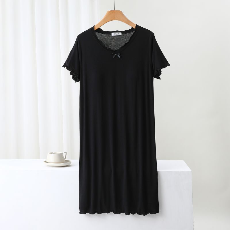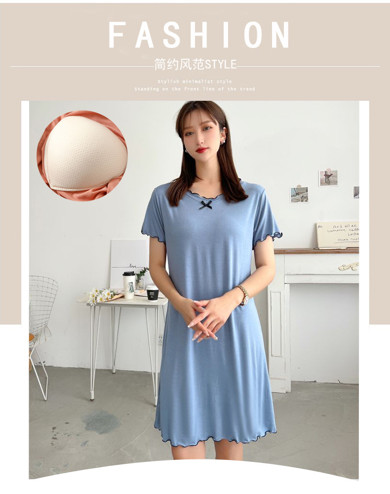 여성용 가슴 패드가있는 모달 파자마 봄과 여름 궁전 스타일 섹시한 홈 나이트 드레스 얇은 원피스 밖에서 착용 할 수 있습니다.