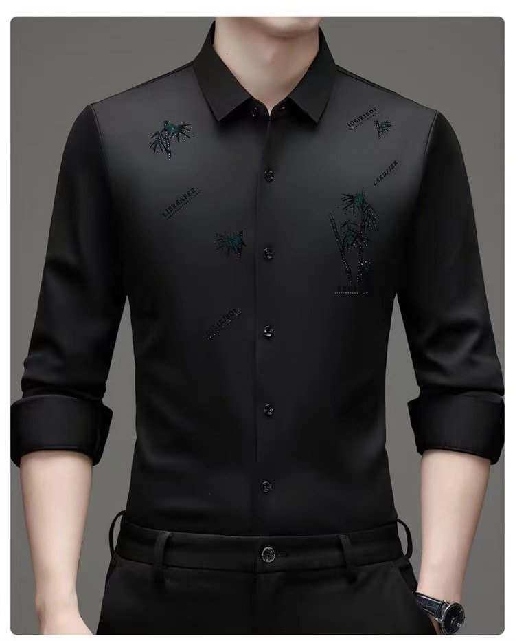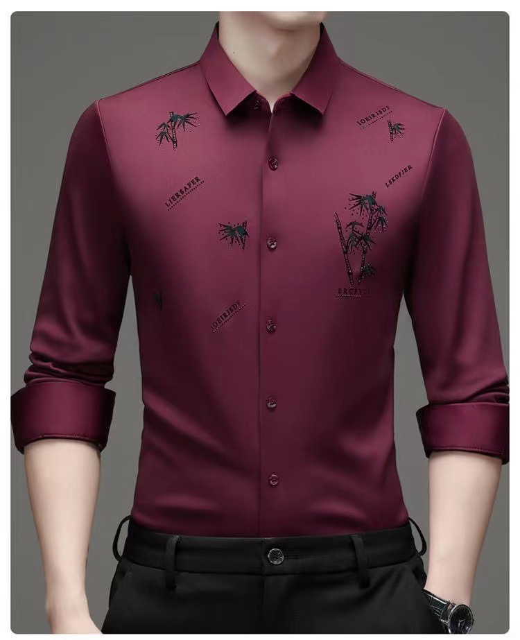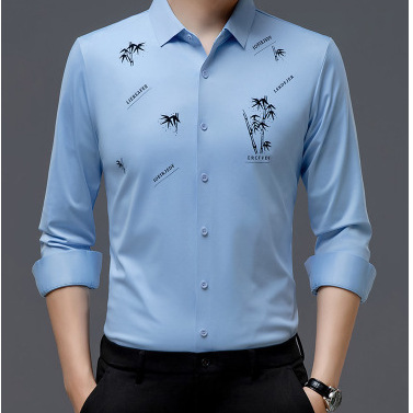 중년 남성을위한 2024 Linghao 의류 대나무 잎 봄 바닥 긴팔 셔츠 따뜻한 스트레치 캐주얼 셔츠