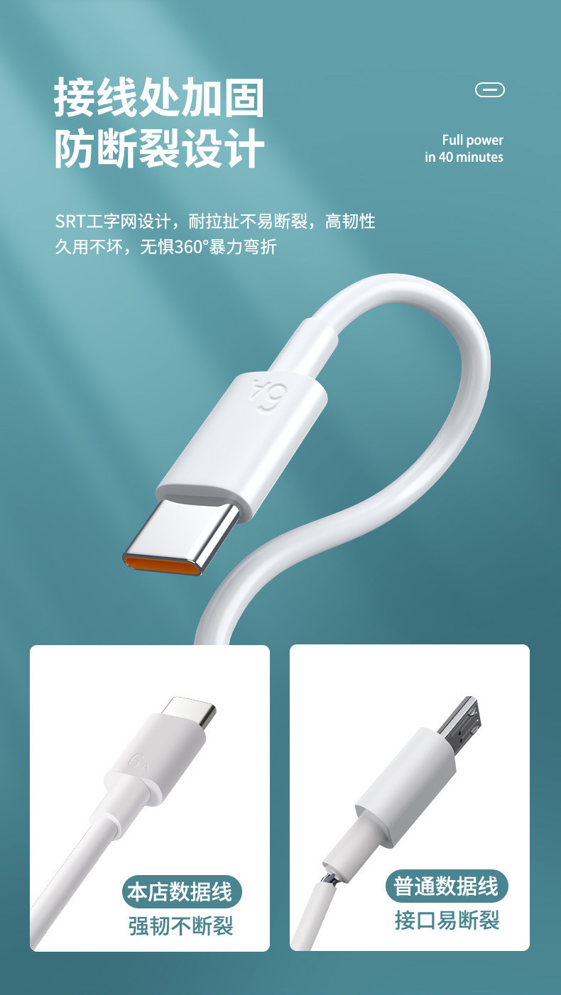 화웨이 6A 영광 빠른 충전 케이블 데이터 케이블 유형에 적용-c 초고속 충전 66W Xiaomi 휴대 전화 플래시 충전스토어 가기