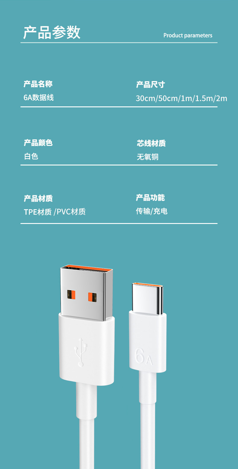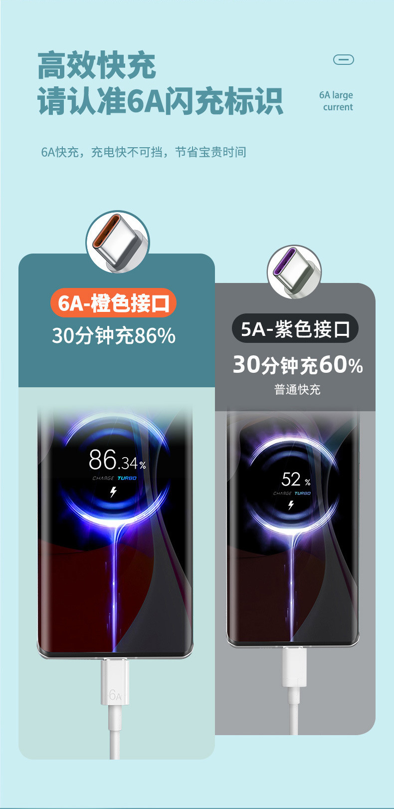 화웨이 6A 영광 빠른 충전 케이블 데이터 케이블 유형에 적용-c 초고속 충전 66W Xiaomi 휴대 전화 플래시 충전