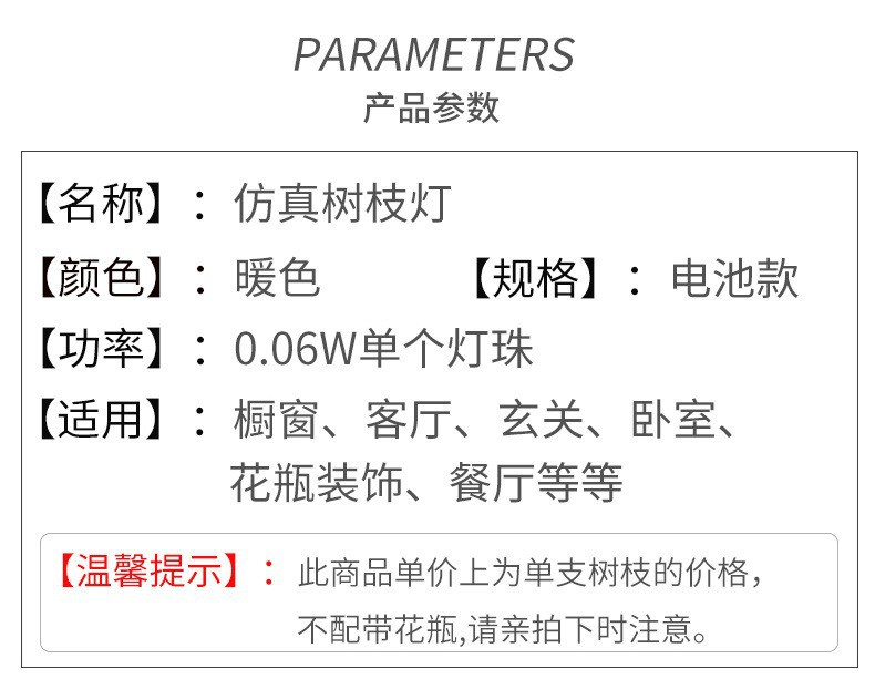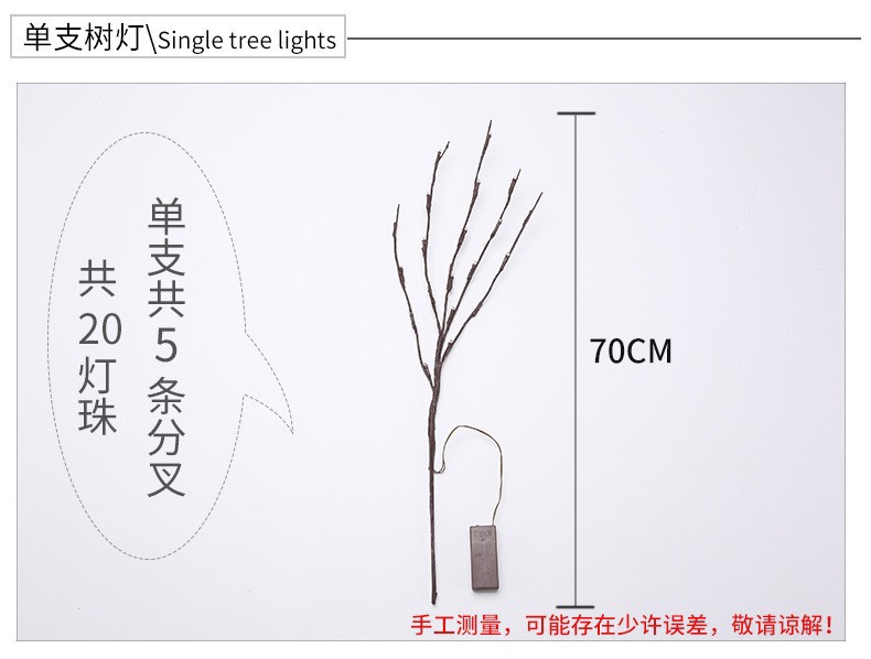 单只20灯、长度70cm、重量100克、opp袋包装