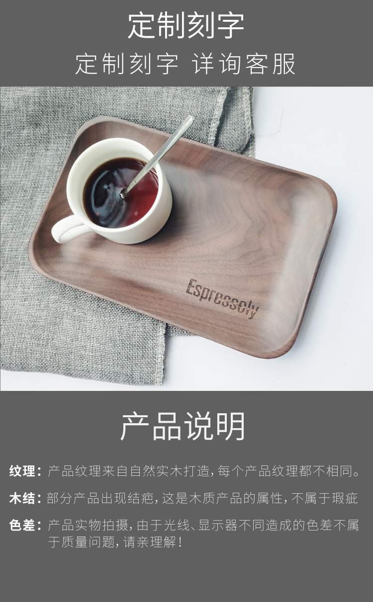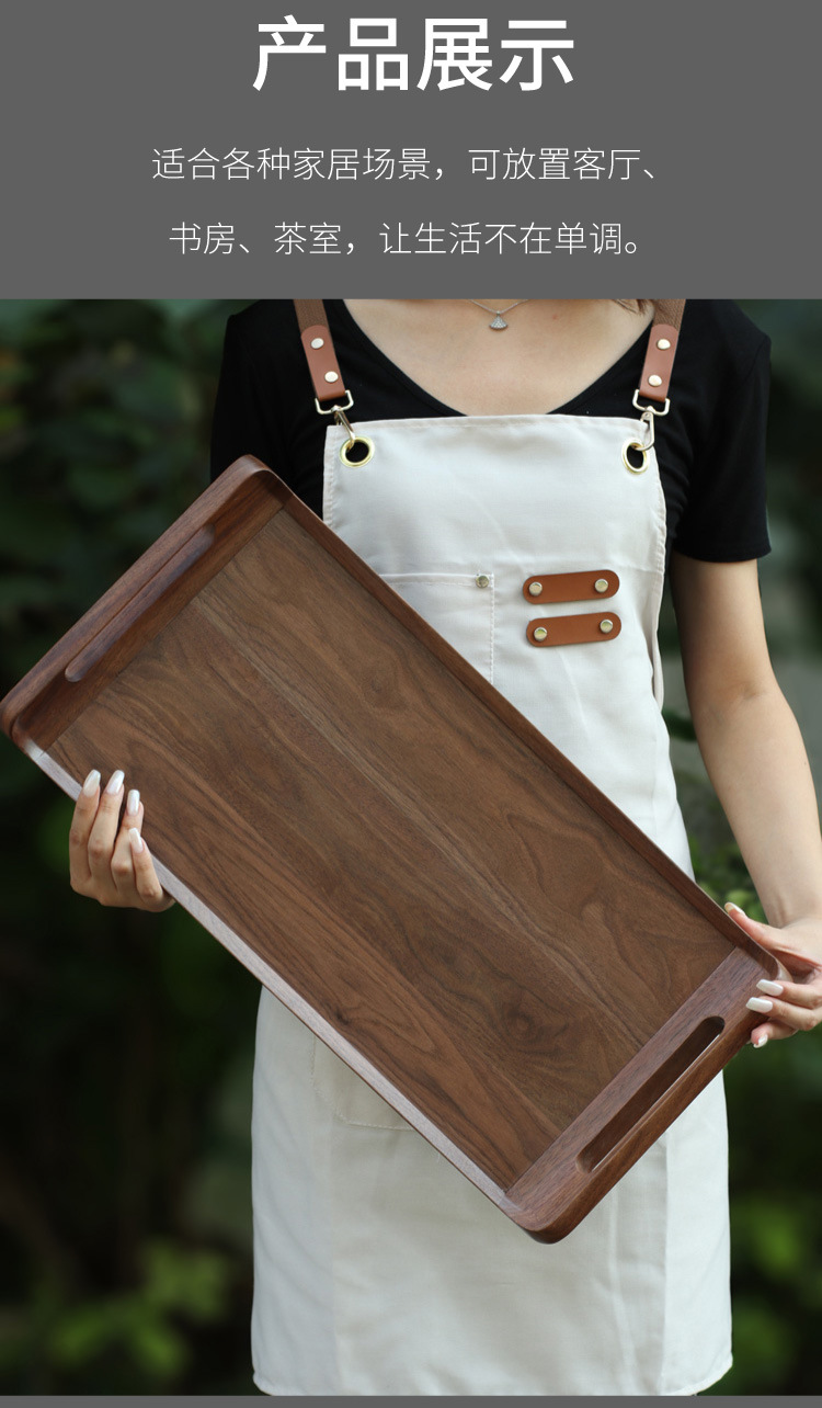 검은 호두 쟁반 일본식 단단한 나무 직사각형 차 쟁반 가정용 나무 식기 쟁반 거실을 위한 고급 커피 쟁반스토어 가기