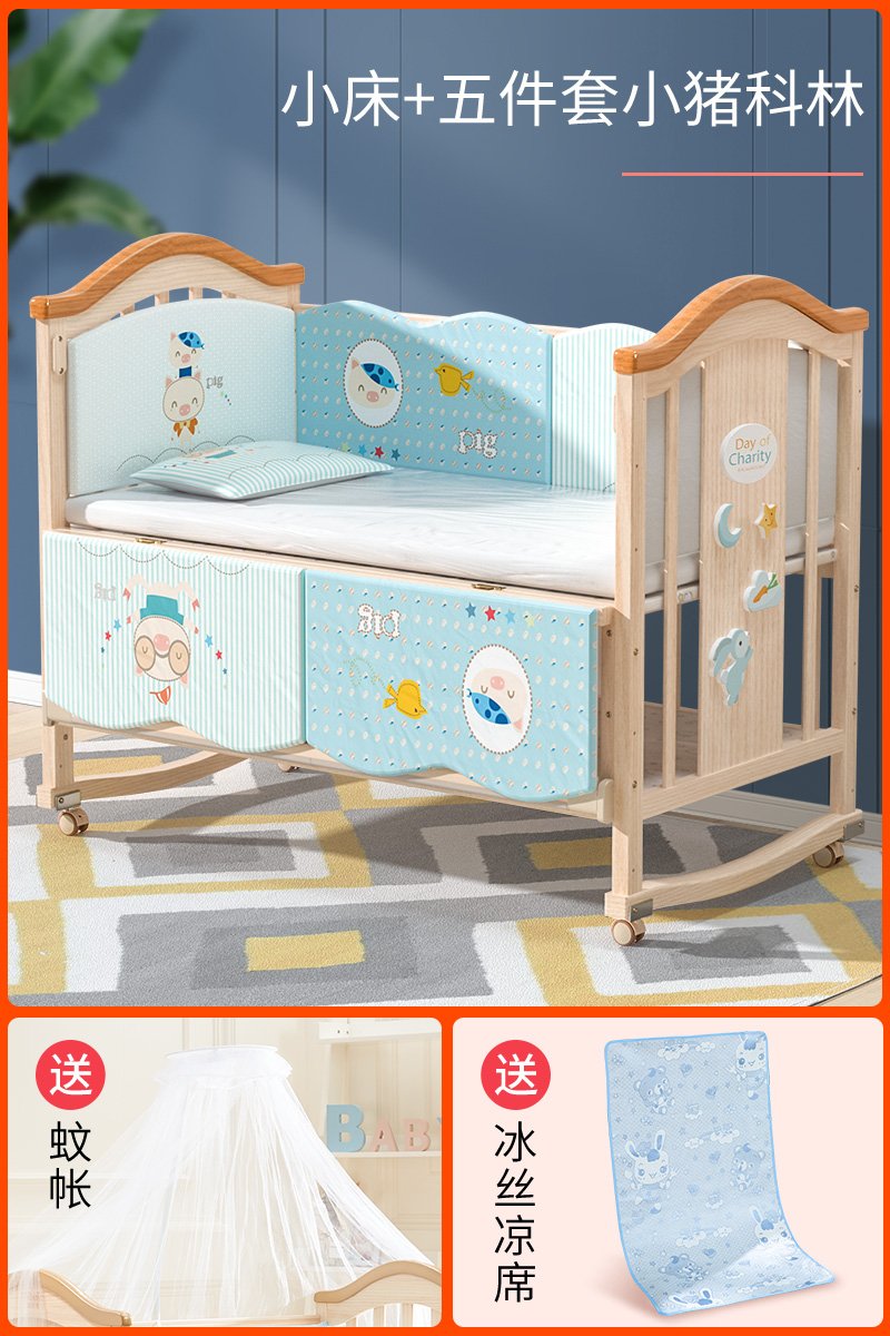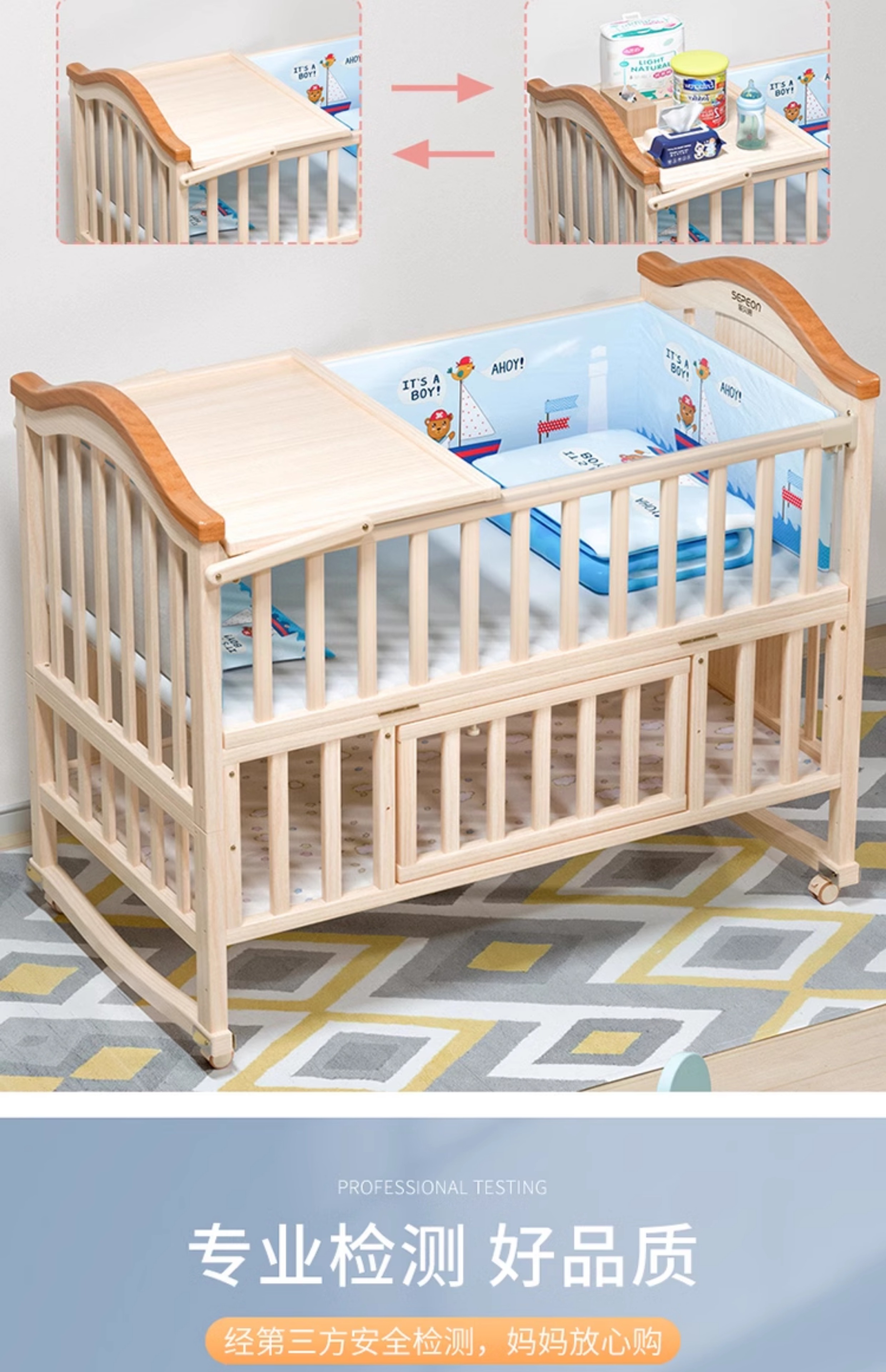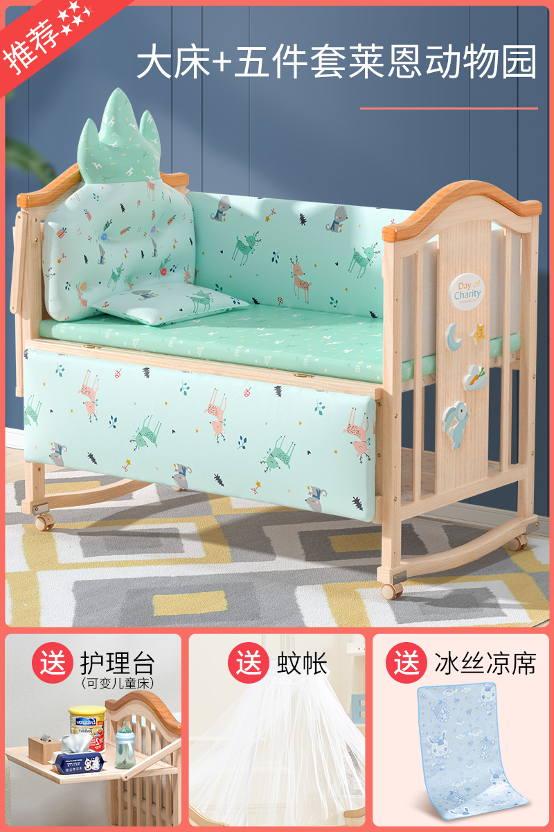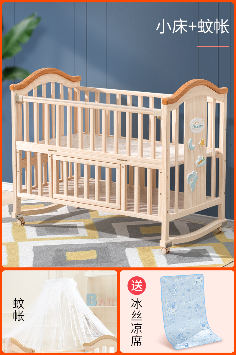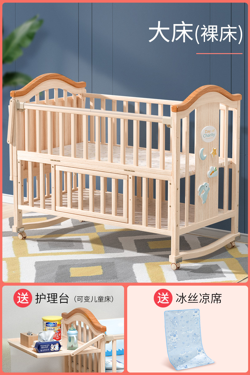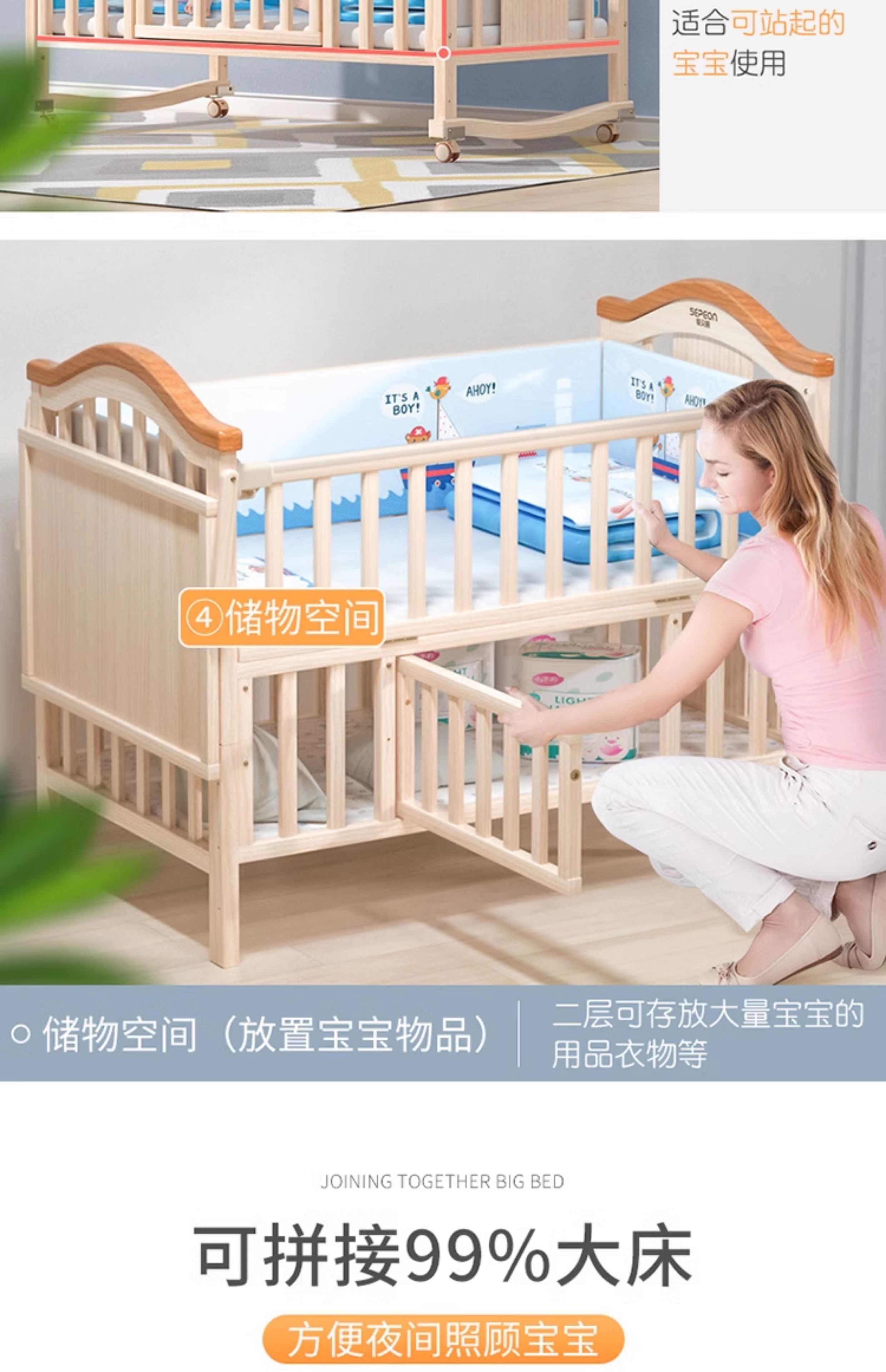 ft Saint Bain 유아용 침대 단단한 나무 다기능 유럽 스타일 bb 신생아 침대 이동식 접합 침대 아기 흔들 침대스토어 가기