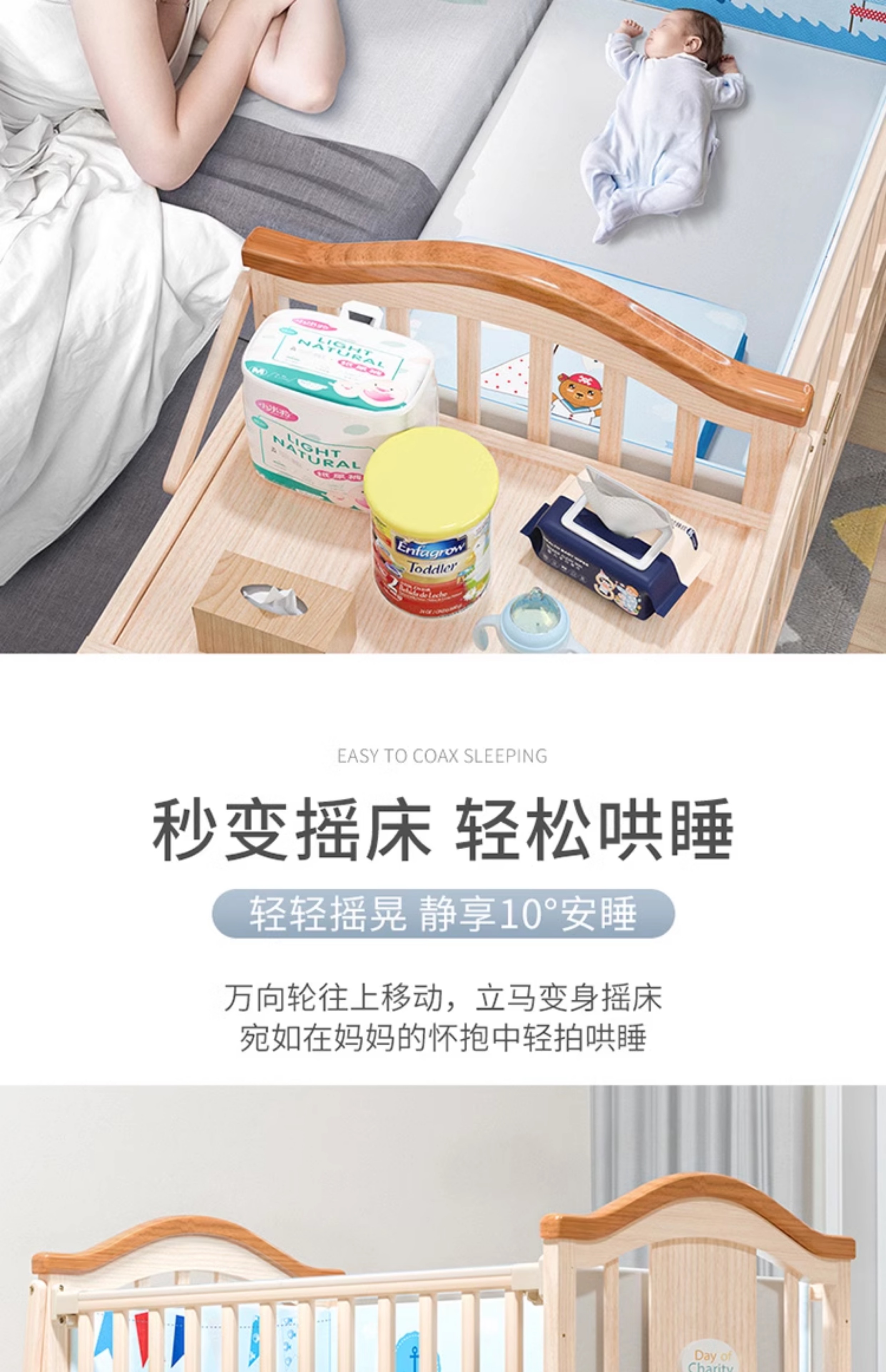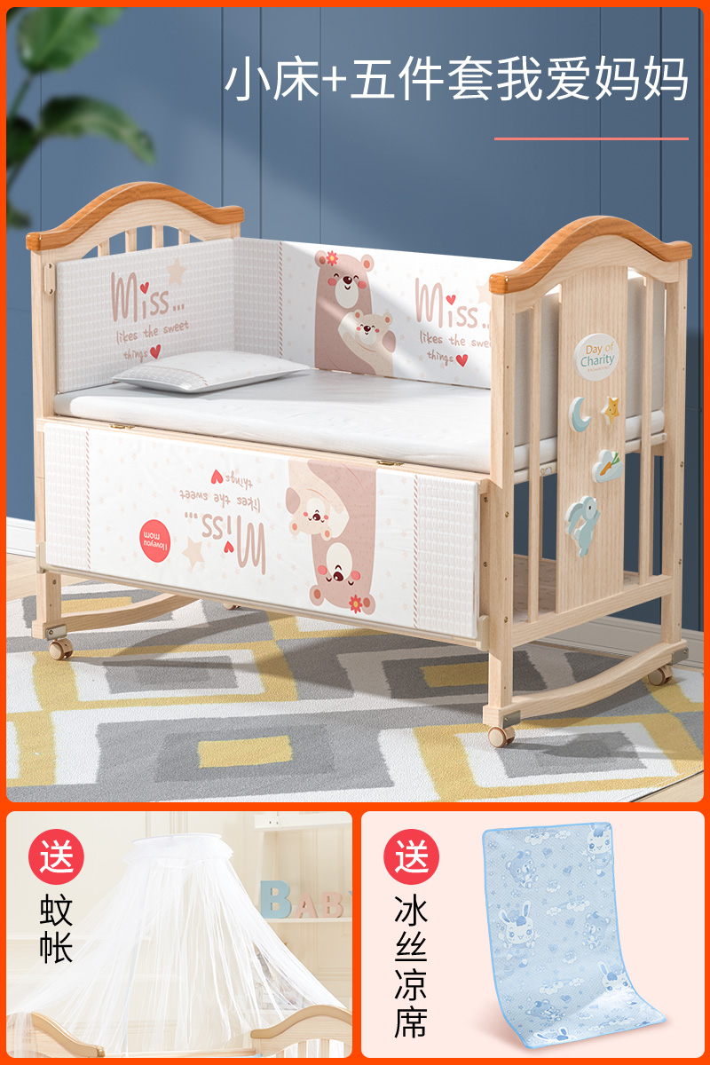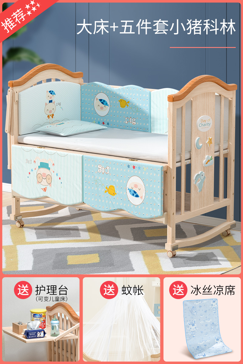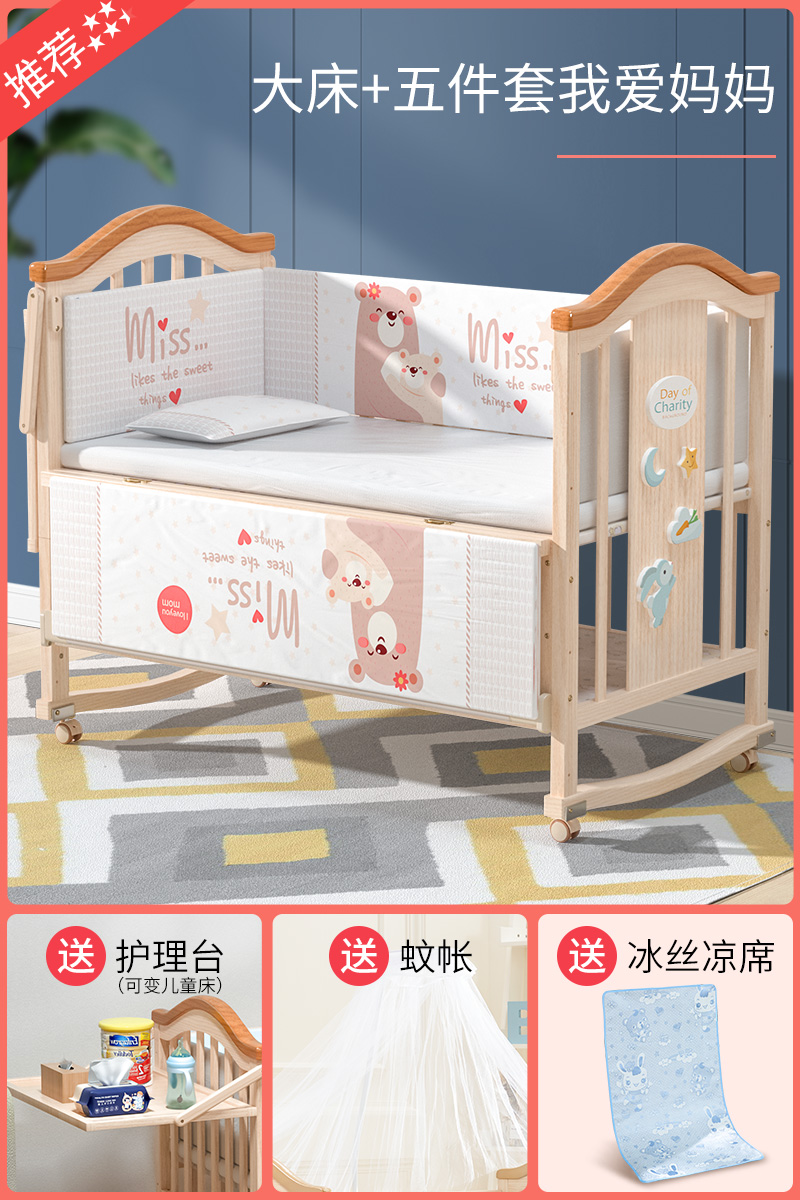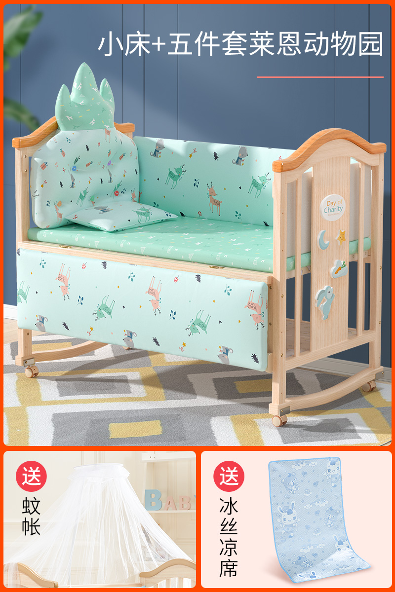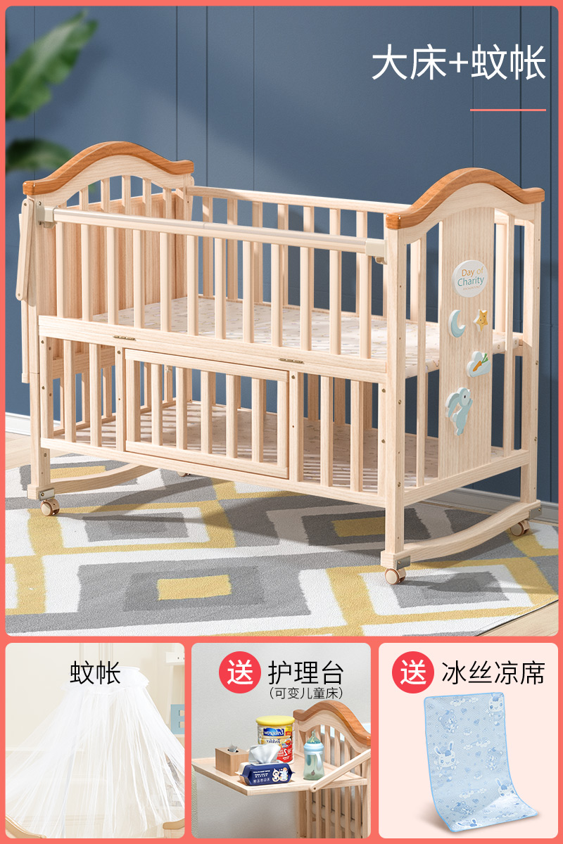ft Saint Bain 유아용 침대 단단한 나무 다기능 유럽 스타일 bb 신생아 침대 이동식 접합 침대 아기 흔들 침대스토어 가기