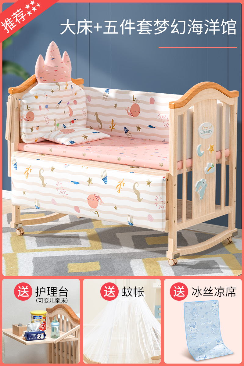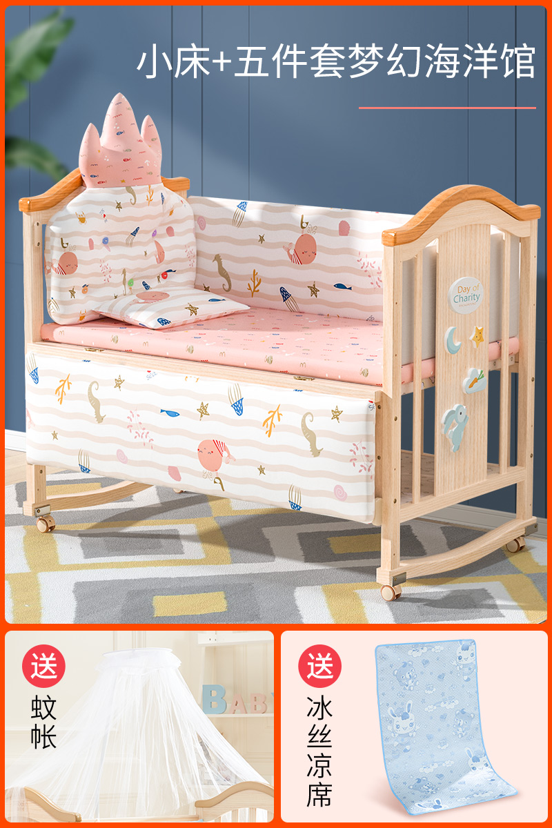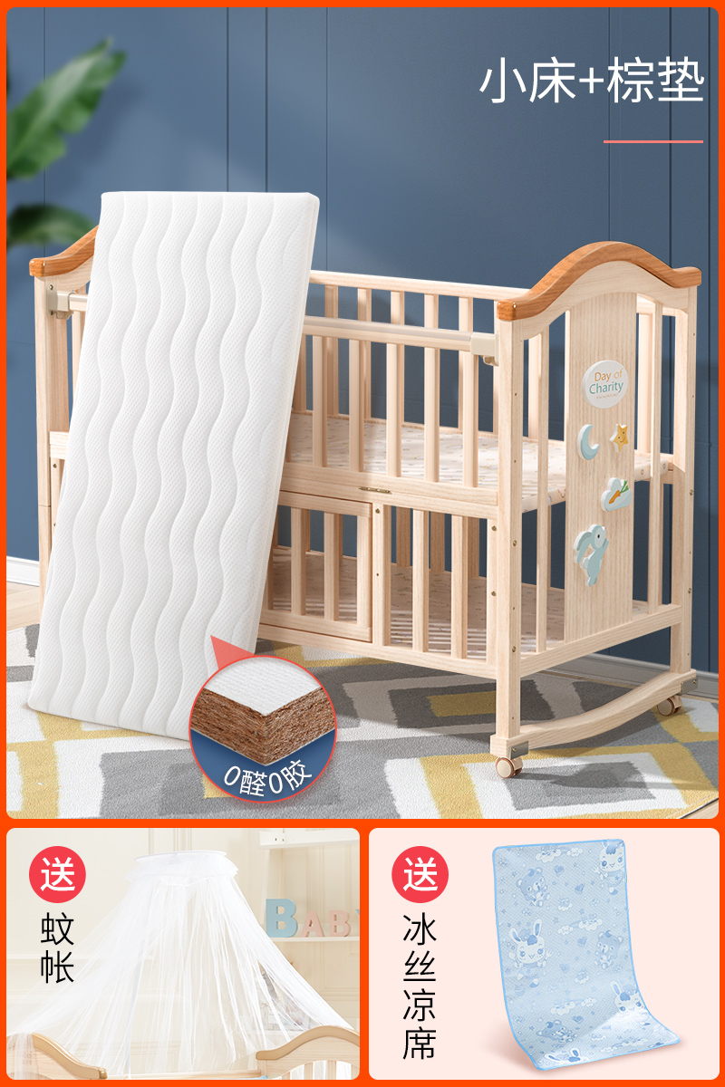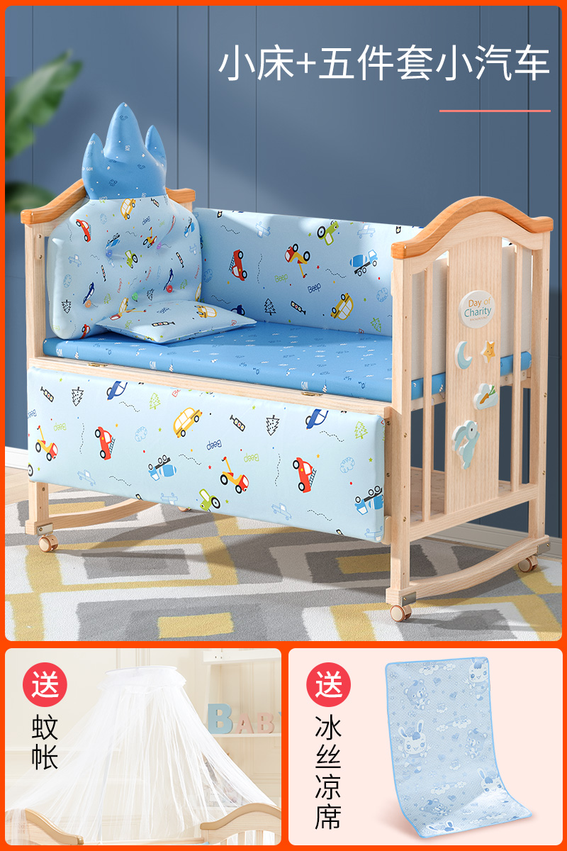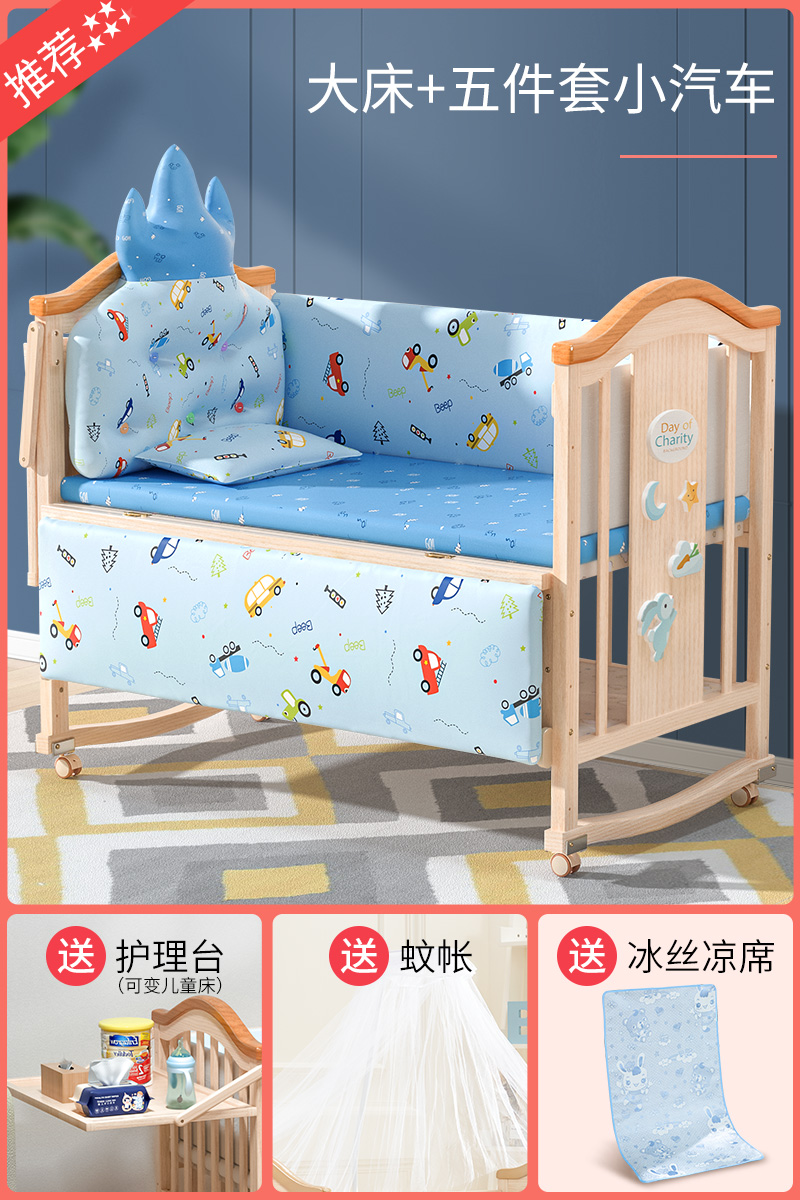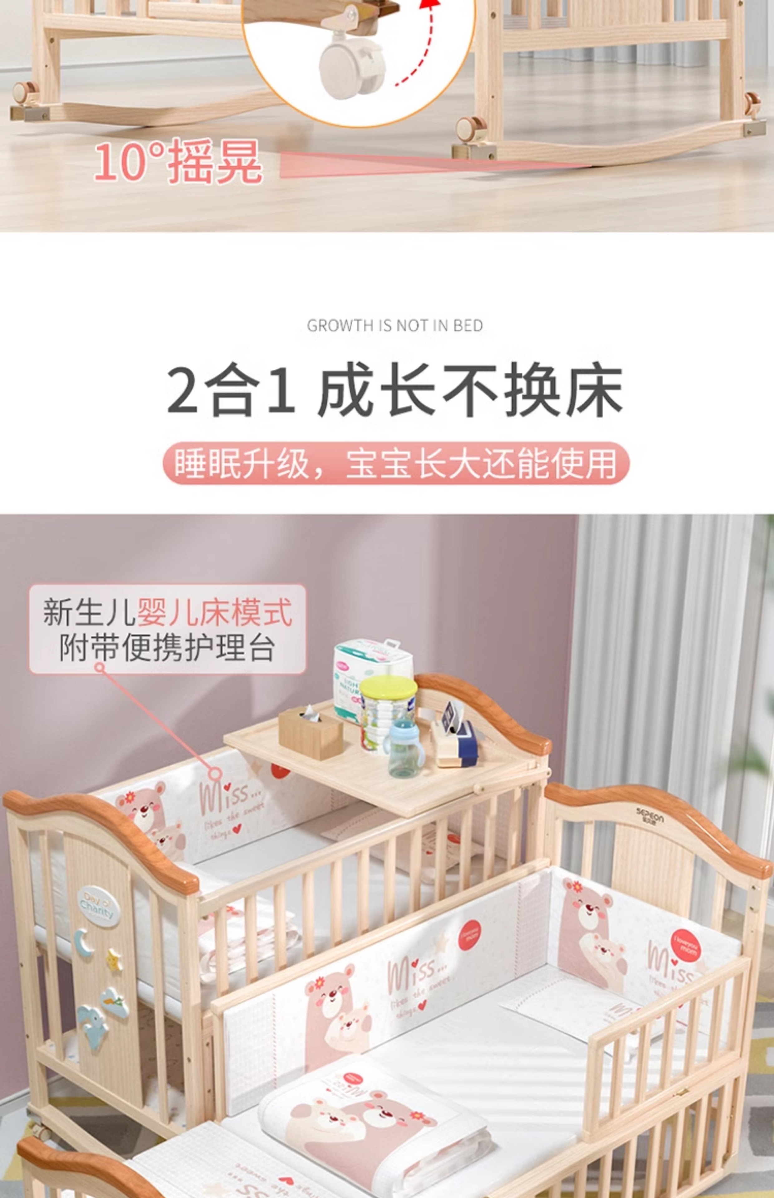 ft Saint Bain 유아용 침대 단단한 나무 다기능 유럽 스타일 bb 신생아 침대 이동식 접합 침대 아기 흔들 침대스토어 가기