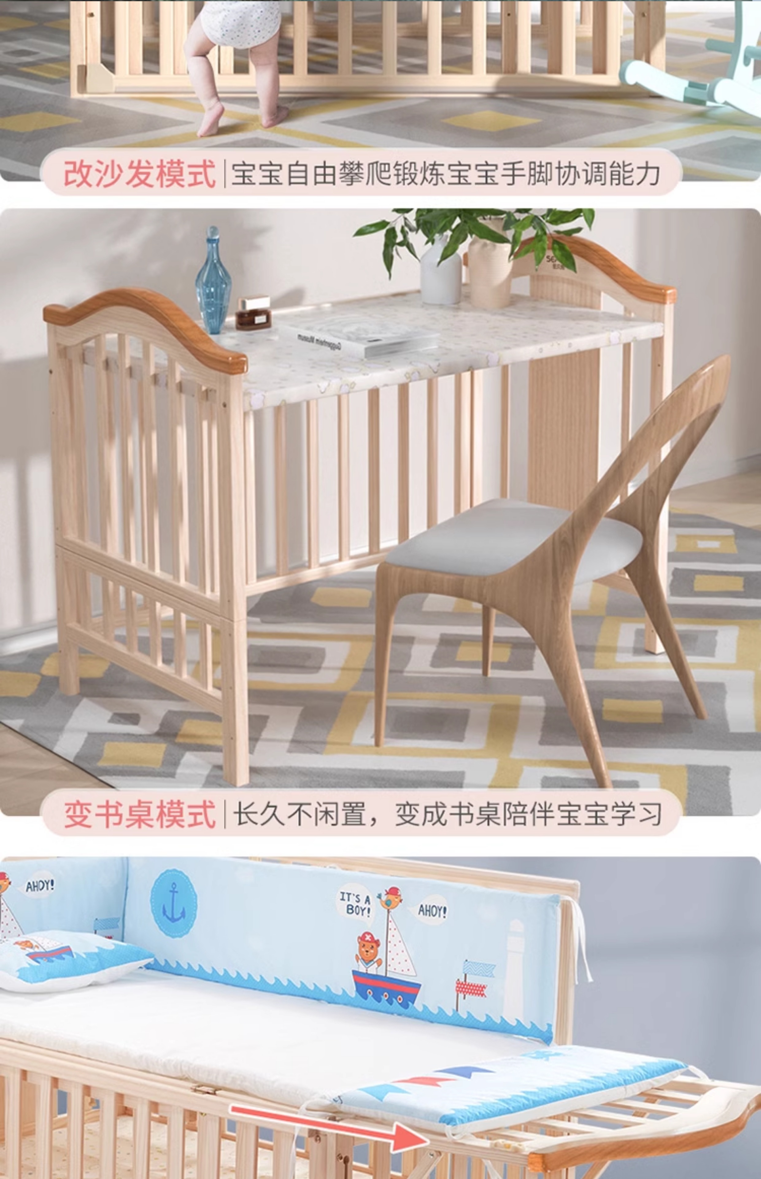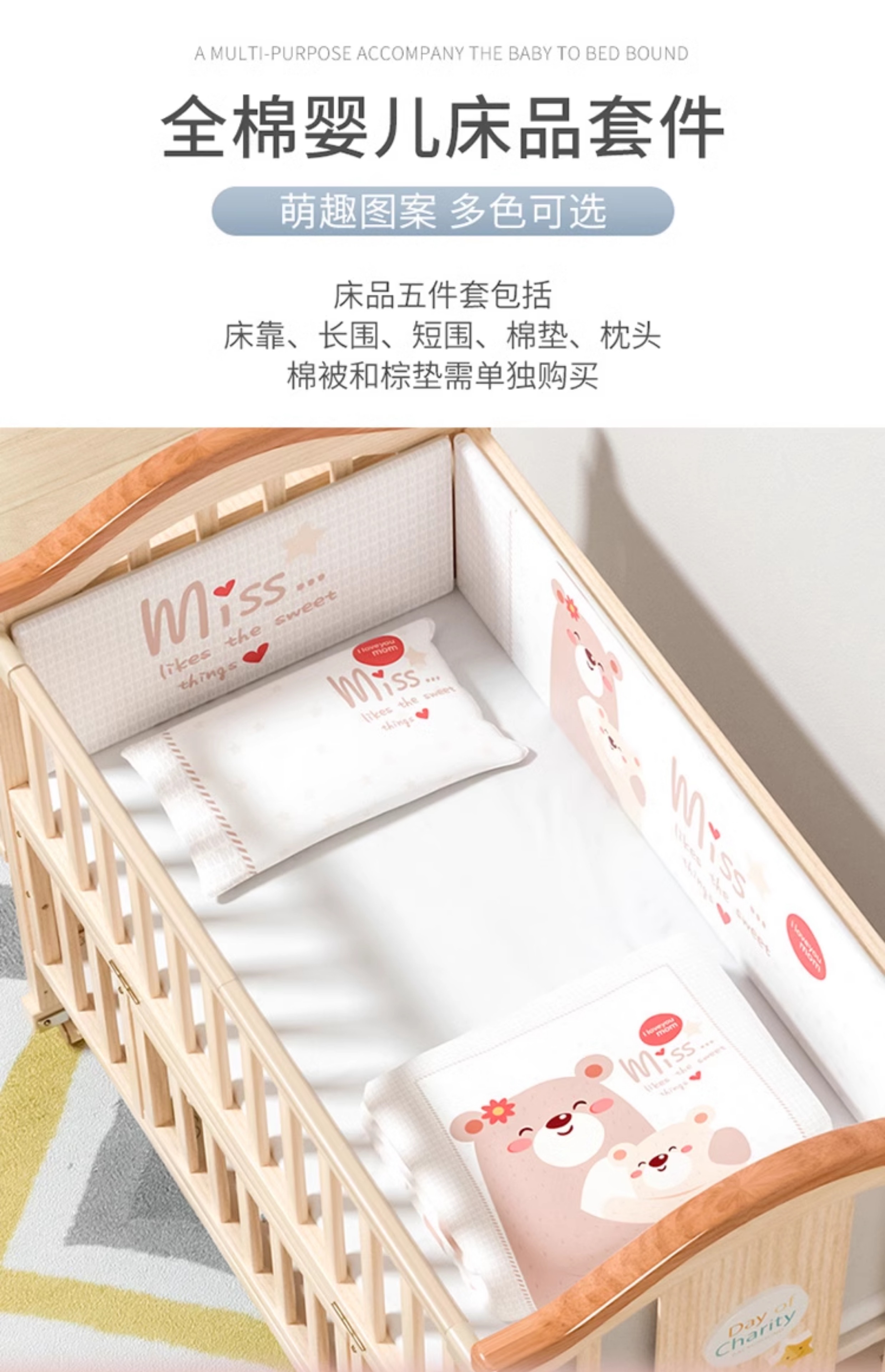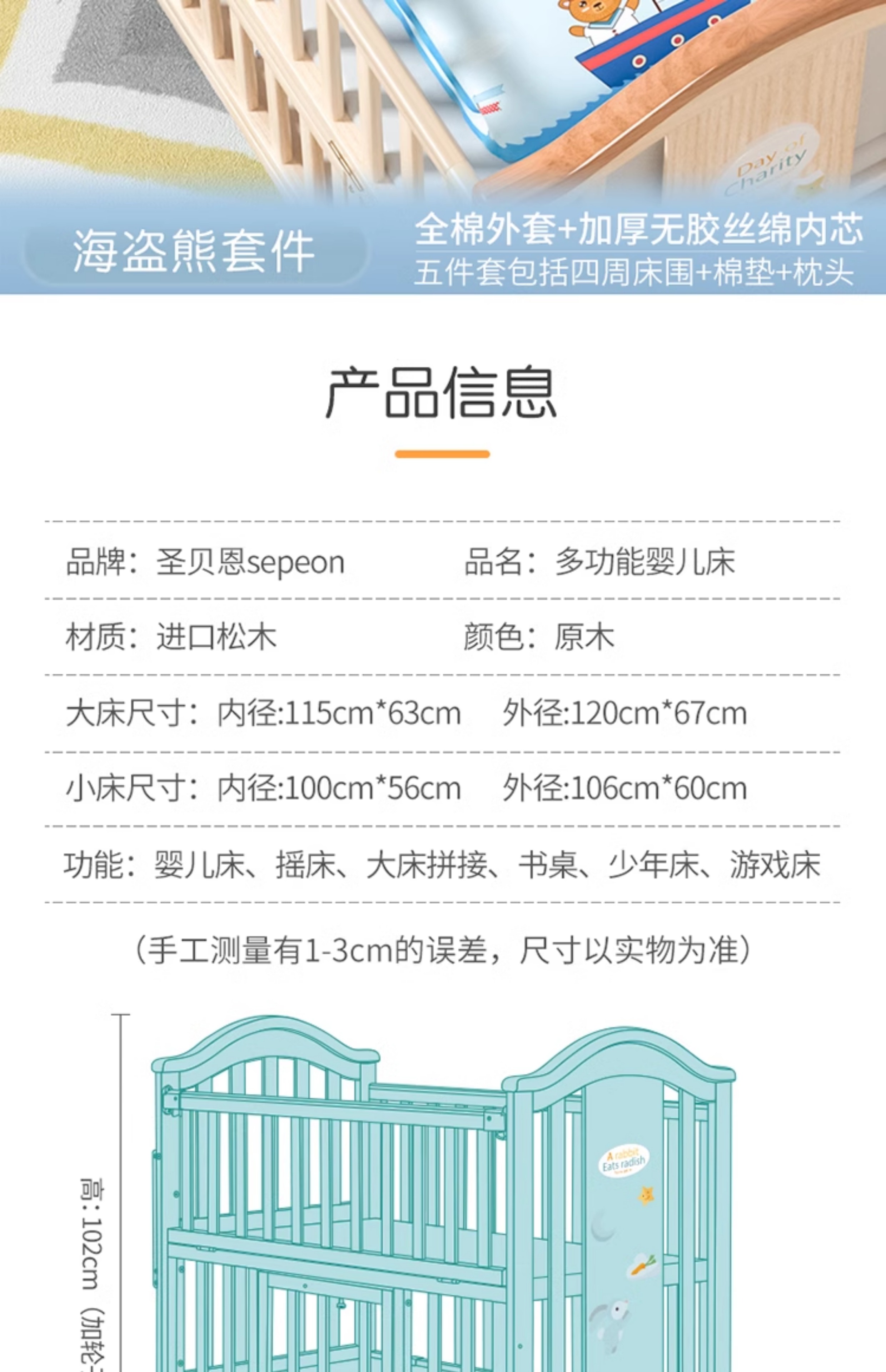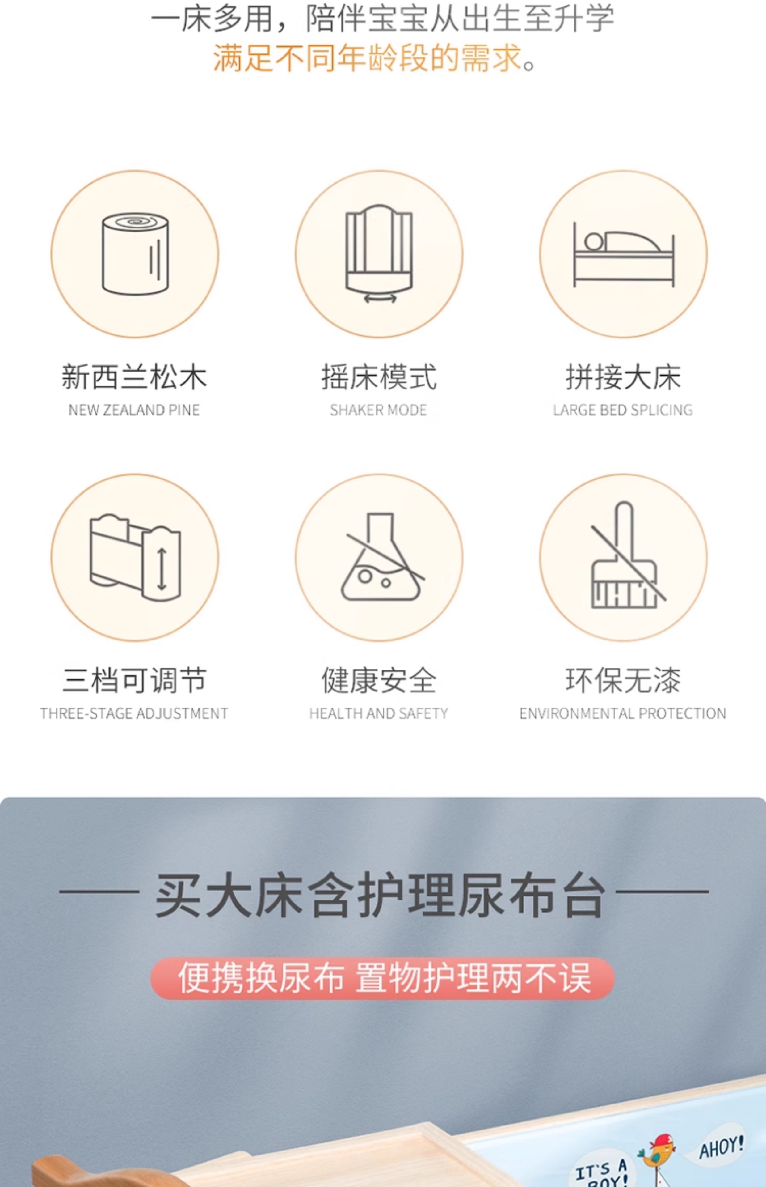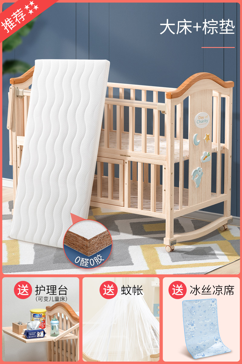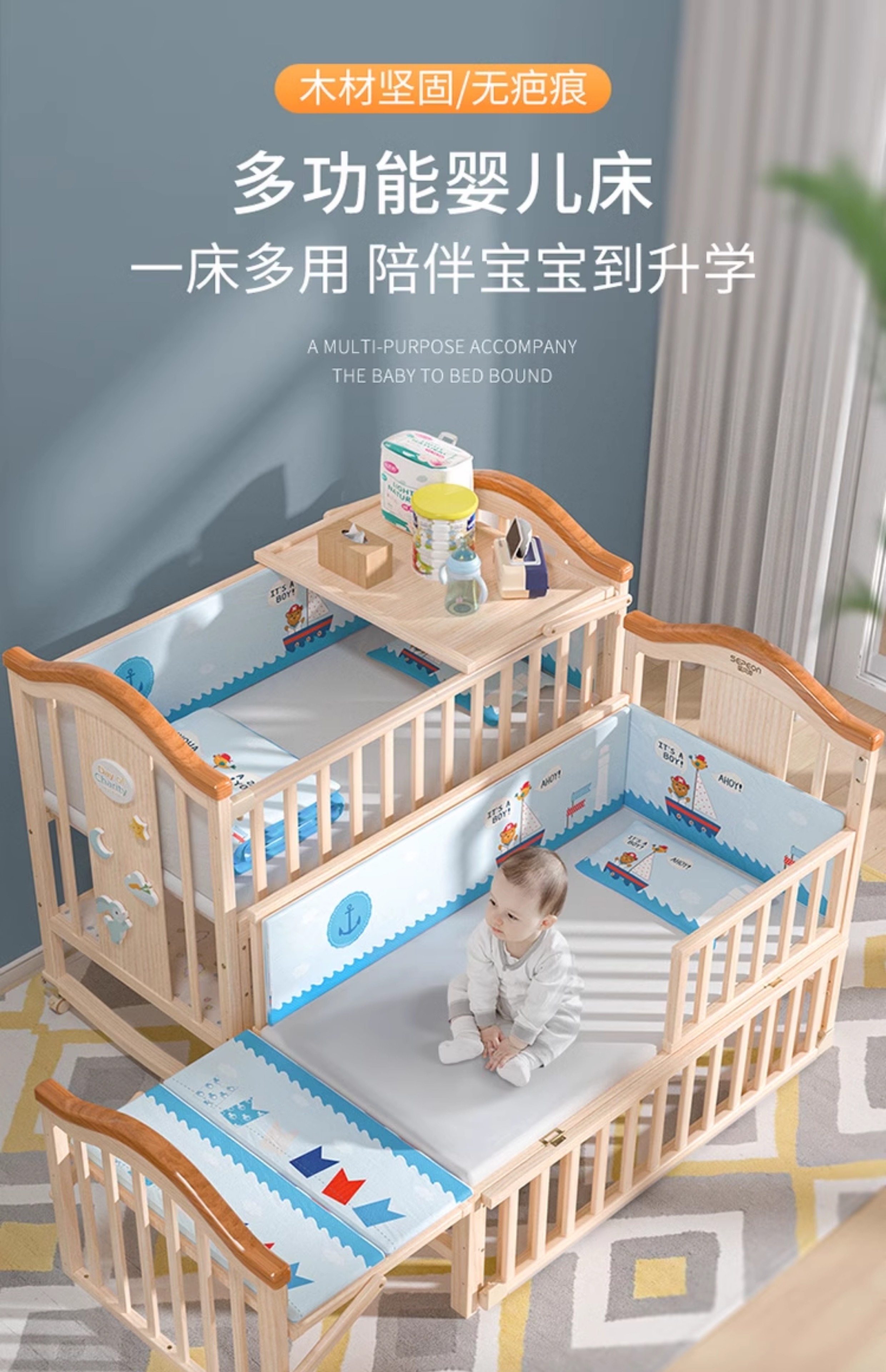 ft Saint Bain 유아용 침대 단단한 나무 다기능 유럽 스타일 bb 신생아 침대 이동식 접합 침대 아기 흔들 침대스토어 가기