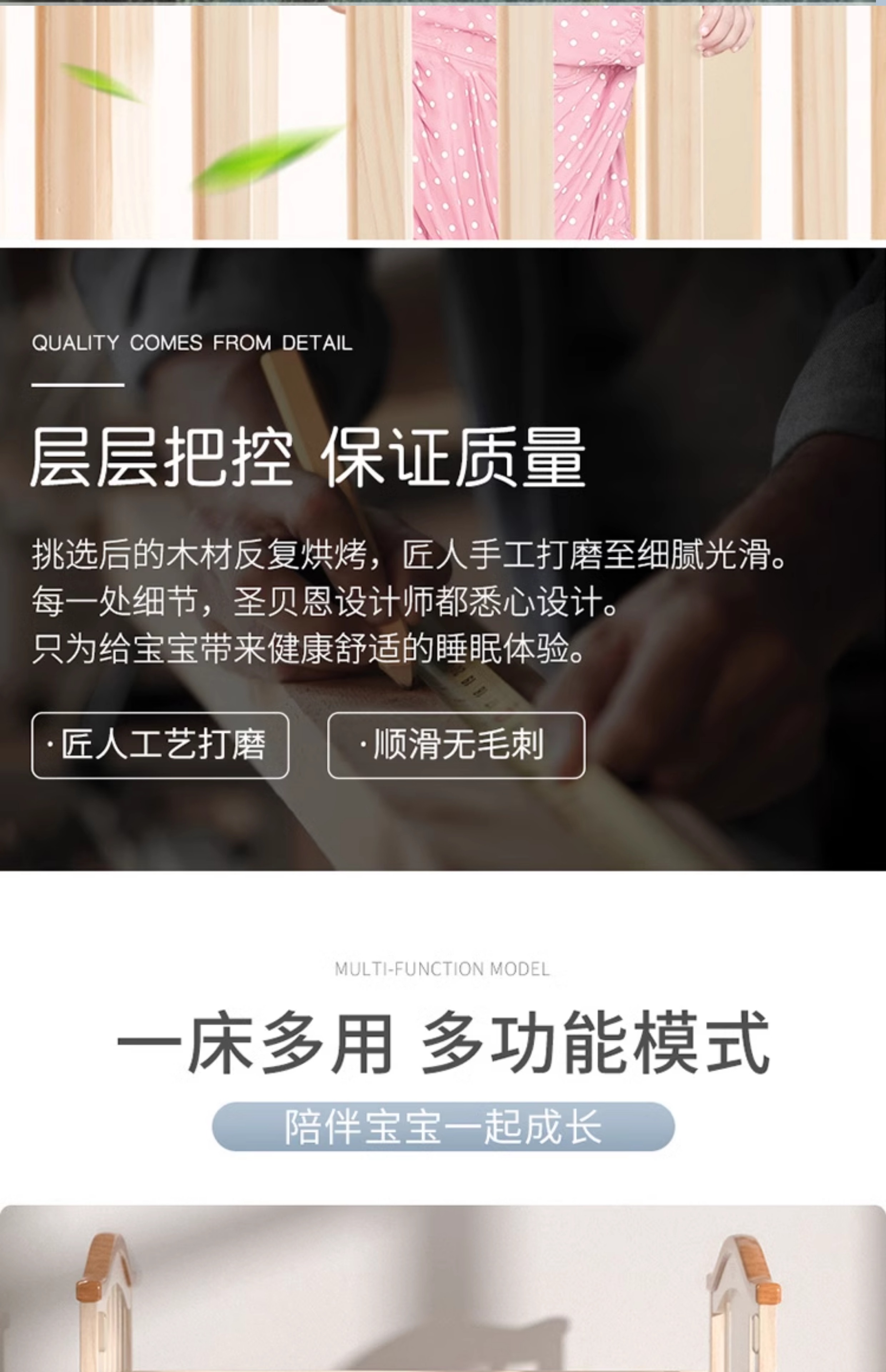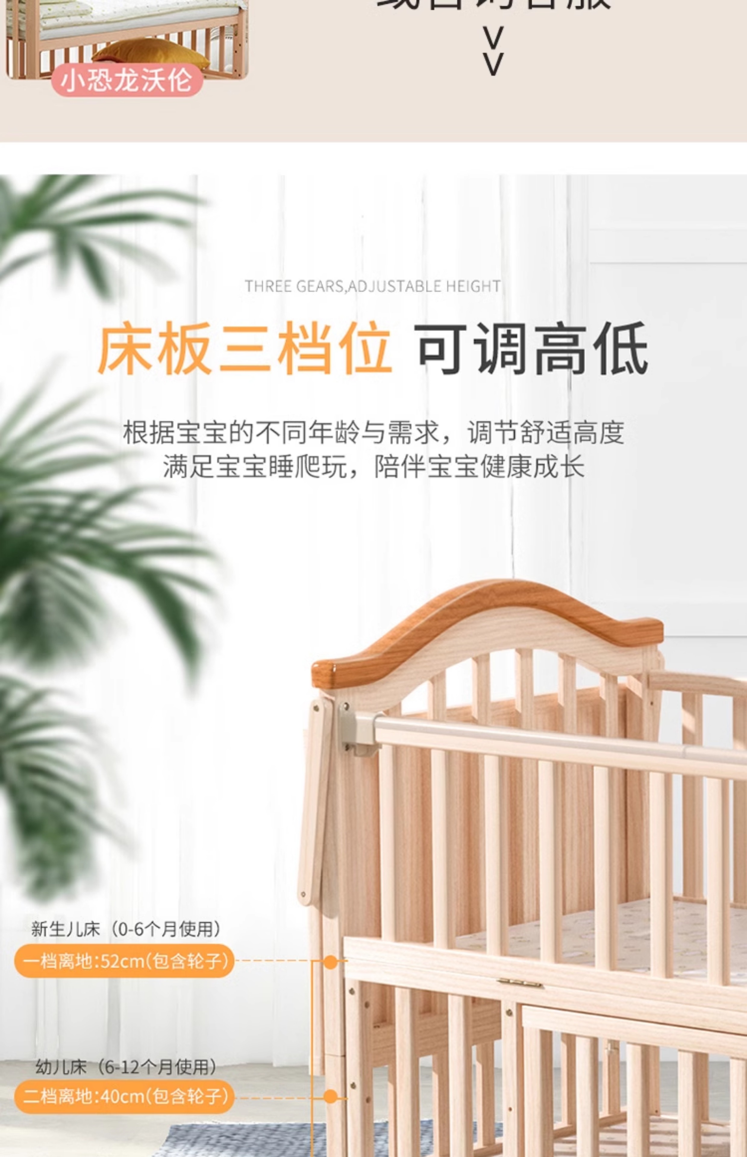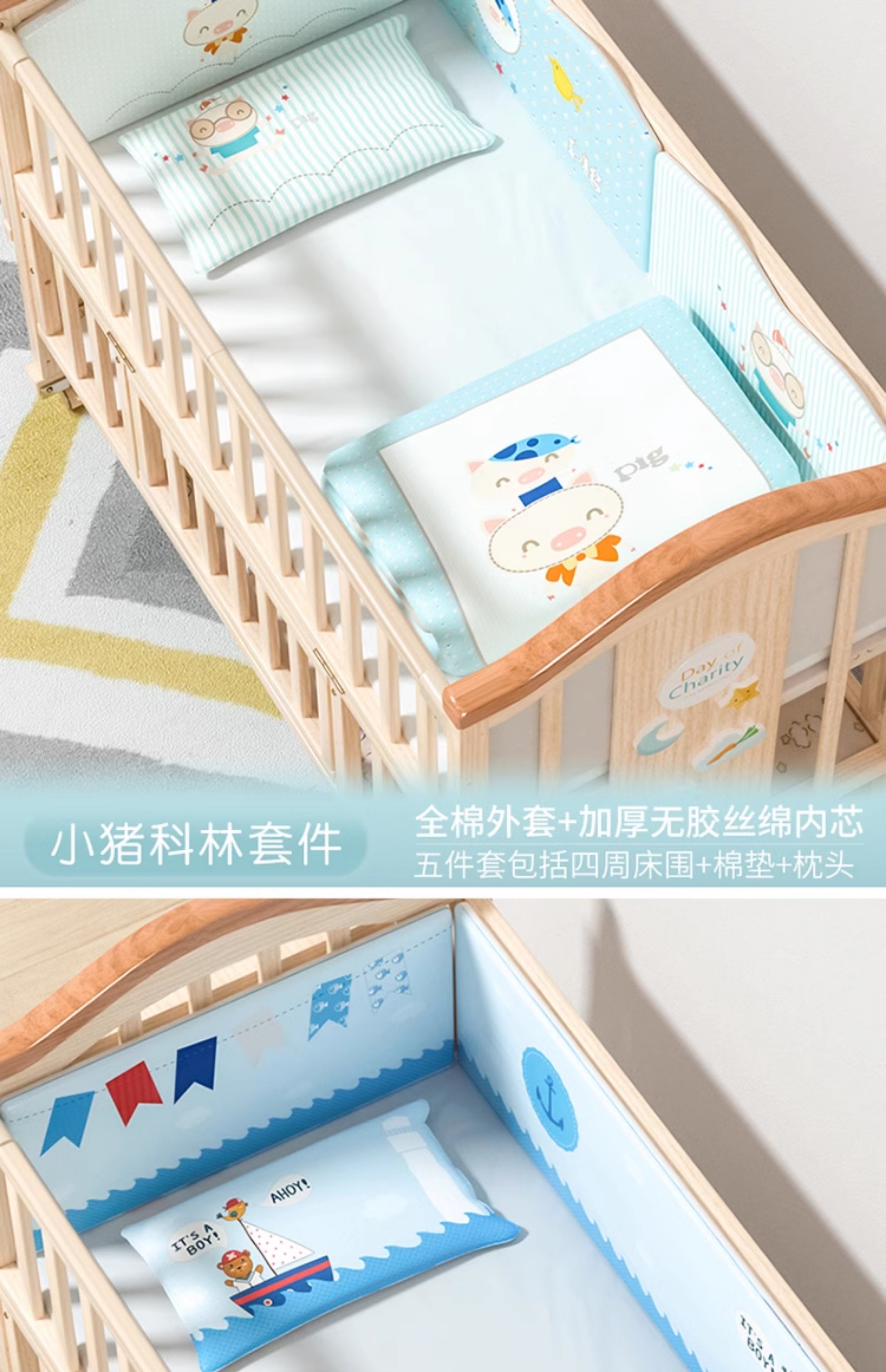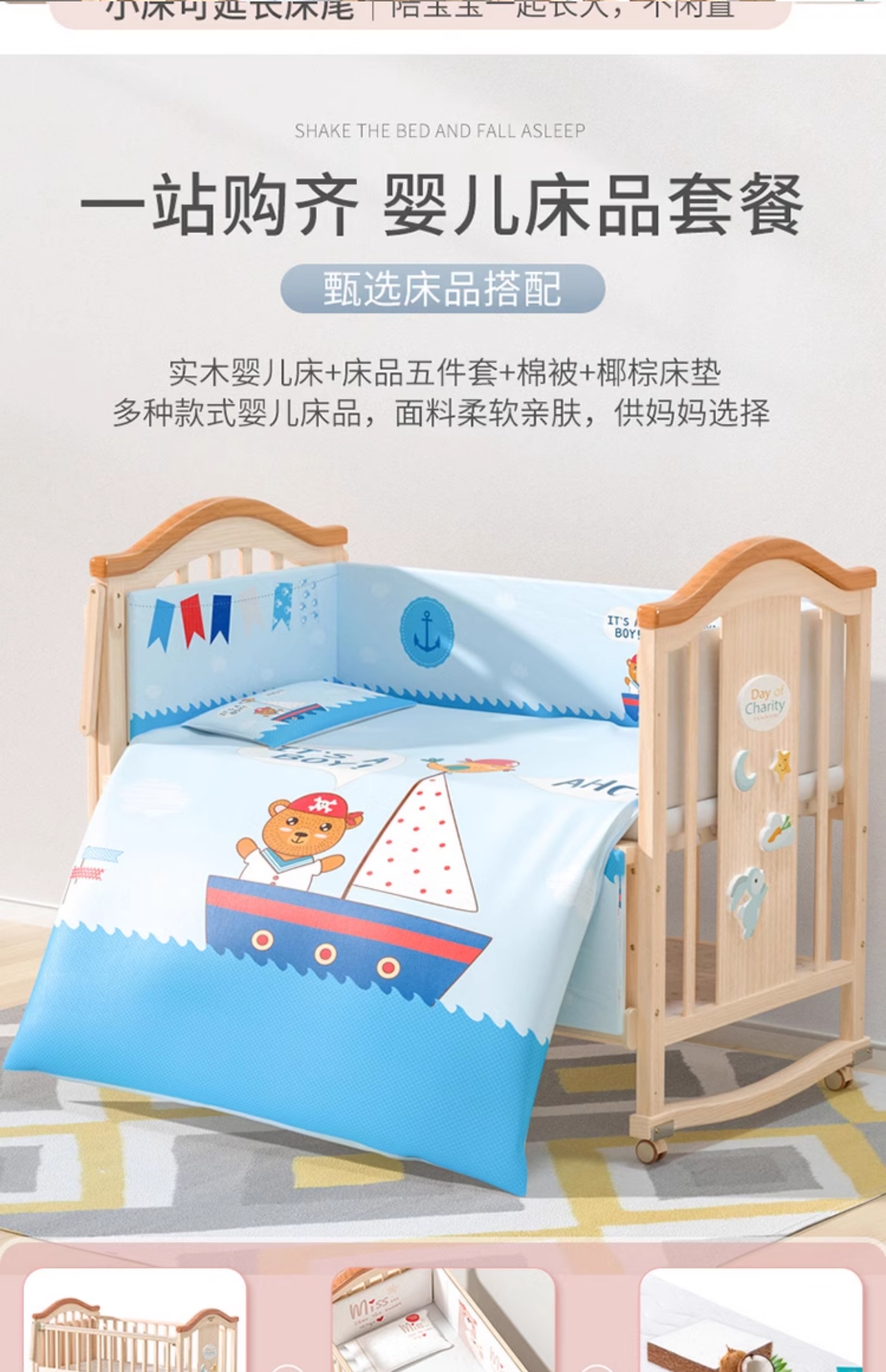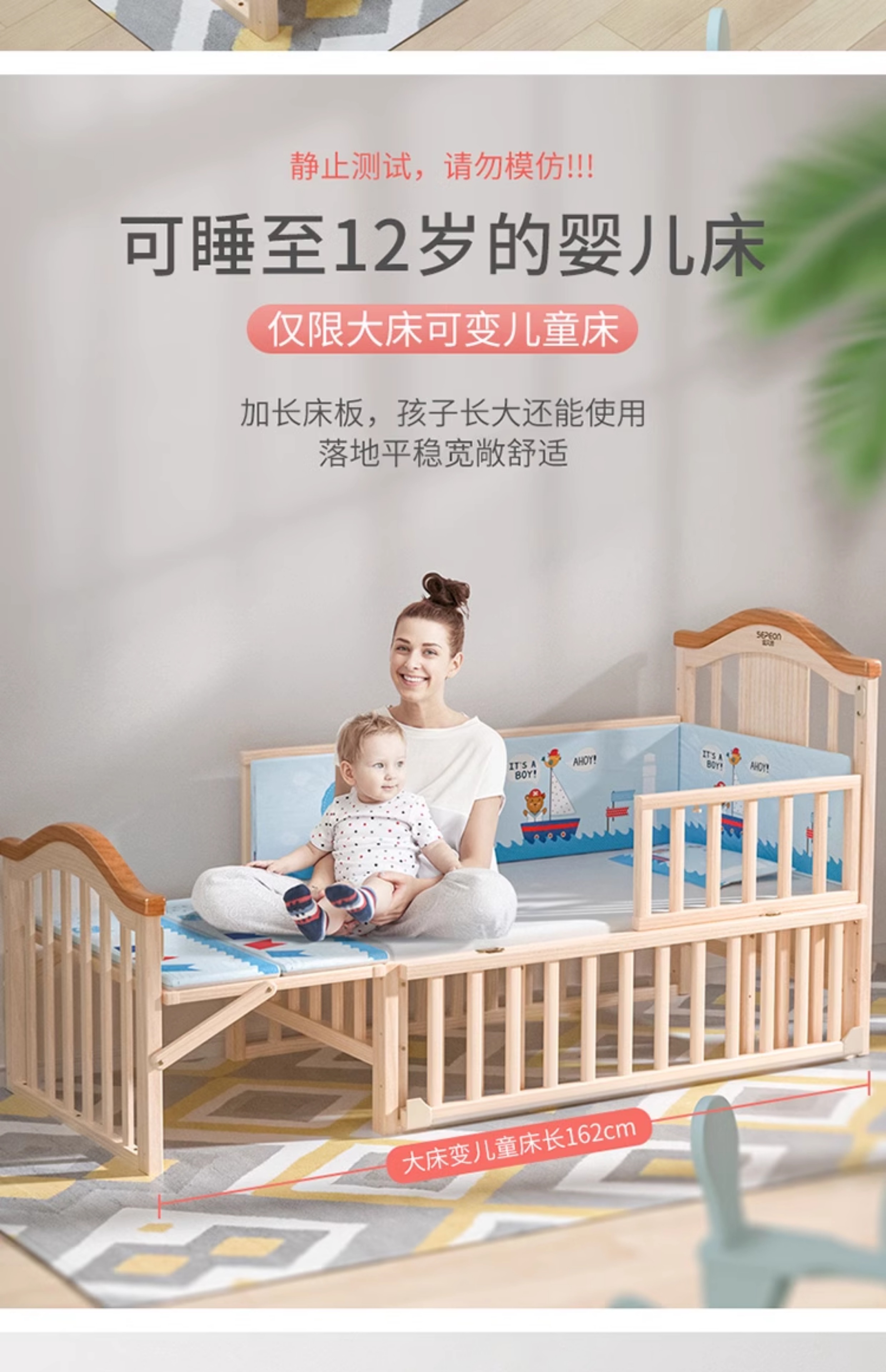 ft Saint Bain 유아용 침대 단단한 나무 다기능 유럽 스타일 bb 신생아 침대 이동식 접합 침대 아기 흔들 침대스토어 가기