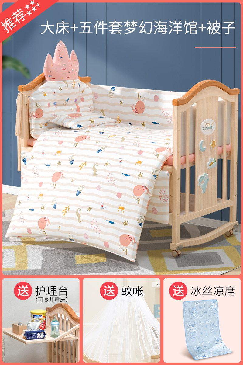 ft Saint Bain 유아용 침대 단단한 나무 다기능 유럽 스타일 bb 신생아 침대 이동식 접합 침대 아기 흔들 침대
