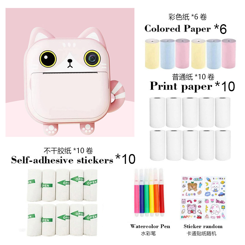 • 핑크 고양이 독립형 스티커 10 일반 종이 10 색 종이 6 색 펜 6 스티커