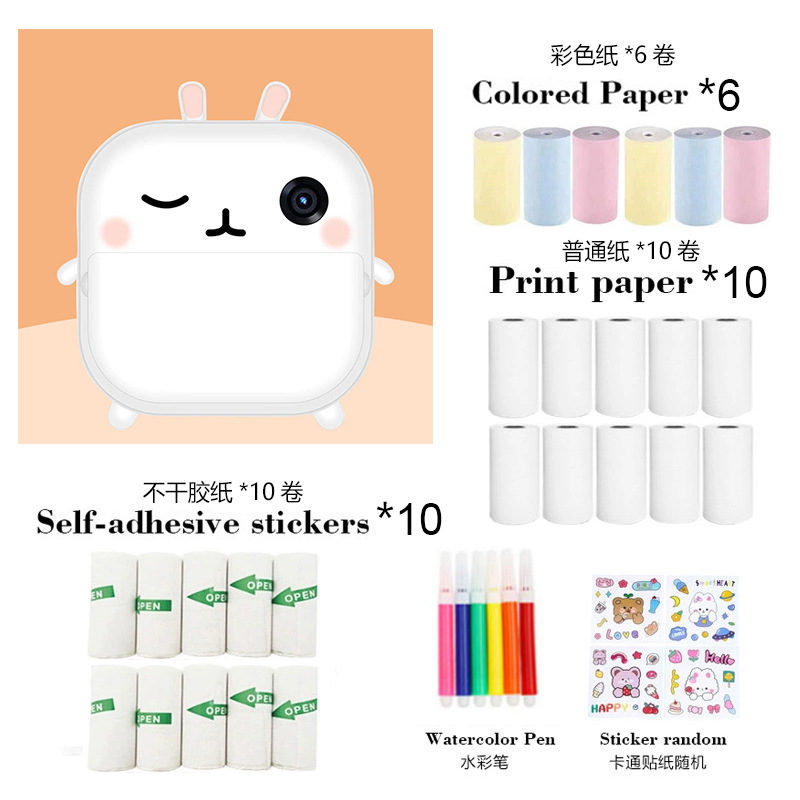 • 흰 토끼 단일 스티커 10 일반 종이 10 색 종이 6 색 펜 6 스티커