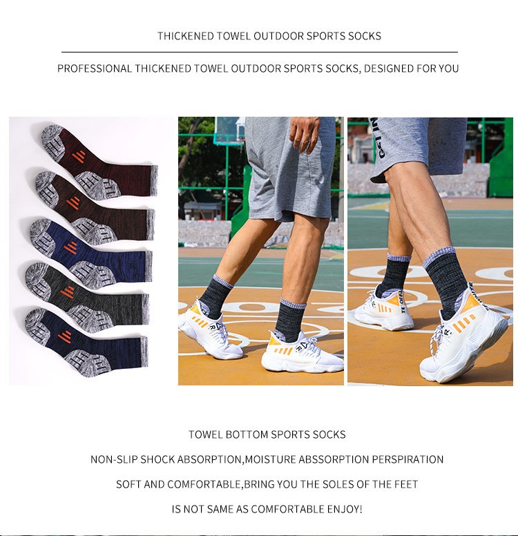새로운 두꺼운 수건 바닥 등산 야외 스포츠 양말 땀 흡수성 중간 종아리 마찰 달리기 양말 공장 직접 공급스토어 가기