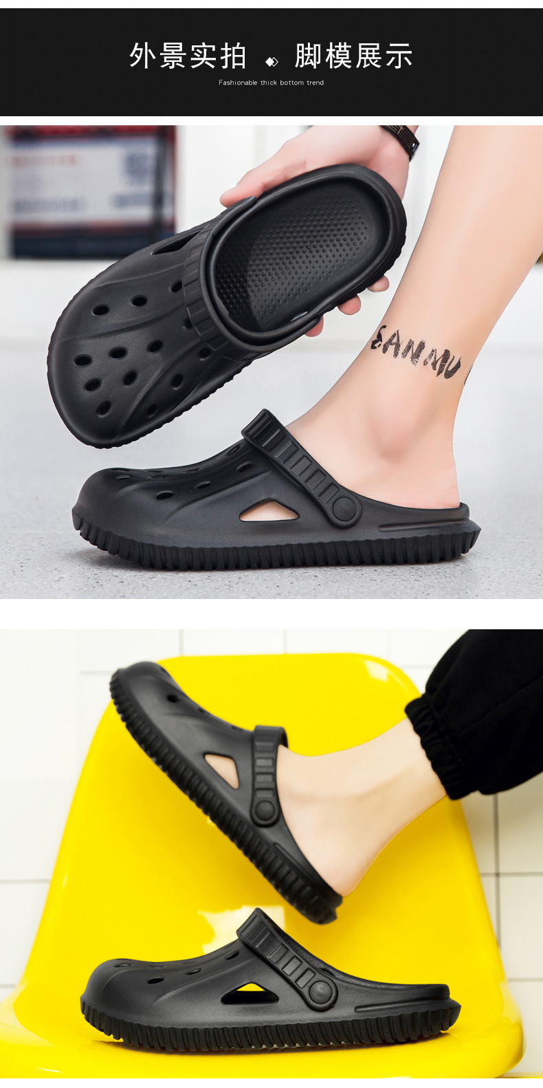 두꺼운 밑창 악어 신발, 커플을 위한 여름 아우터, 다용도 미끄럼 방지 해변 신발, 남성용 겸용 에바 단색 슬리퍼 제조업체스토어 가기