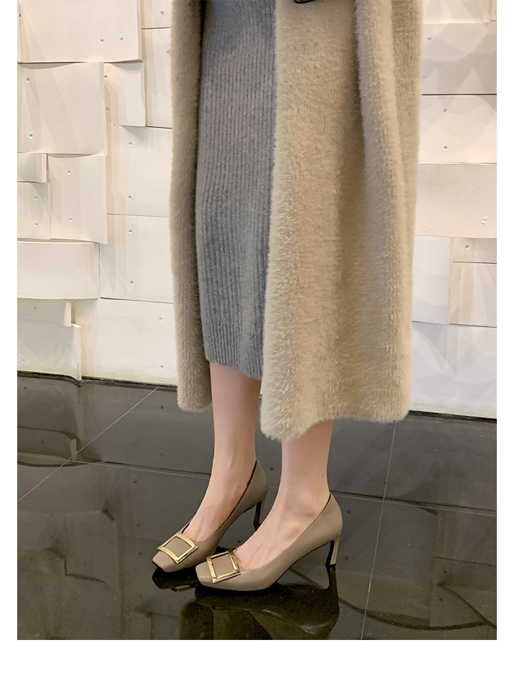 고급 소 가죽 버전 ~ 포도 엄마 같은 스타일 프랑스 우아한 스퀘어 버클 스틸레토 발 뒤꿈치 스퀘어 토 얕은 입 통근 신발스토어 가기