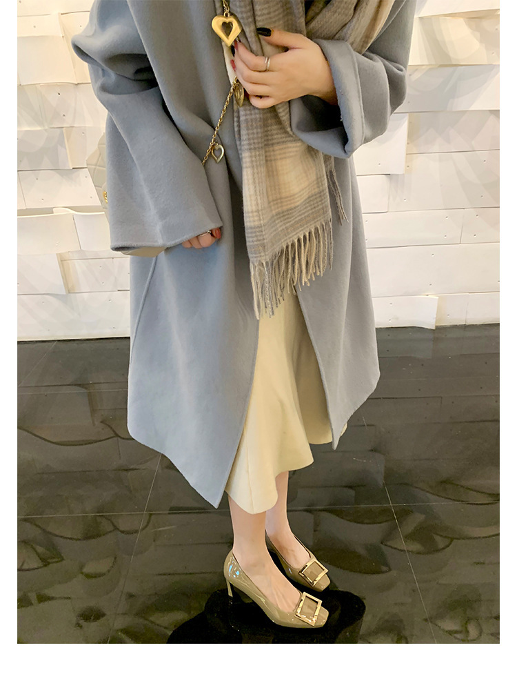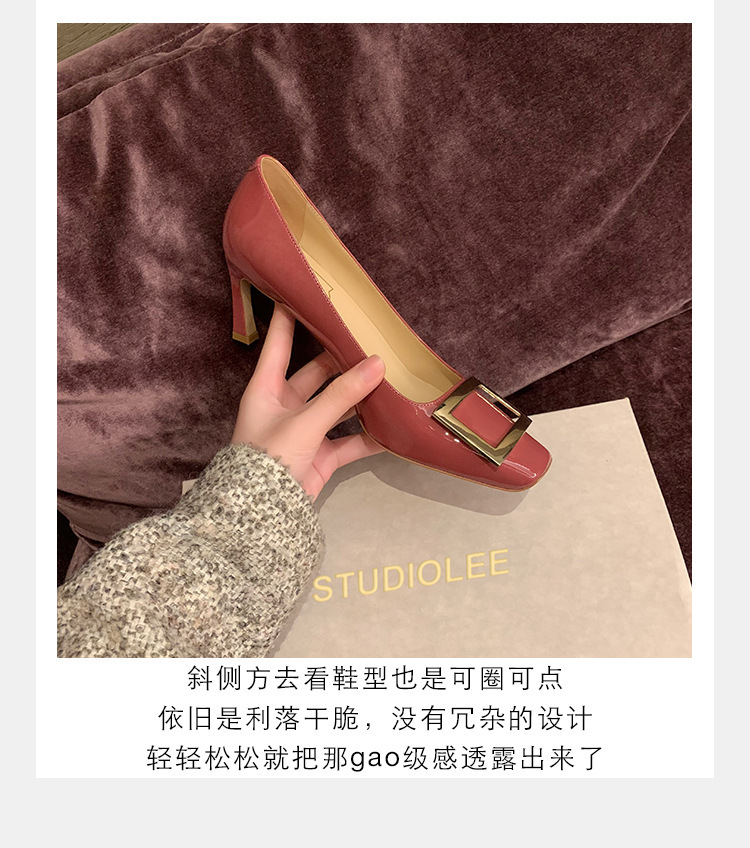 고급 소 가죽 버전 ~ 포도 엄마 같은 스타일 프랑스 우아한 스퀘어 버클 스틸레토 발 뒤꿈치 스퀘어 토 얕은 입 통근 신발