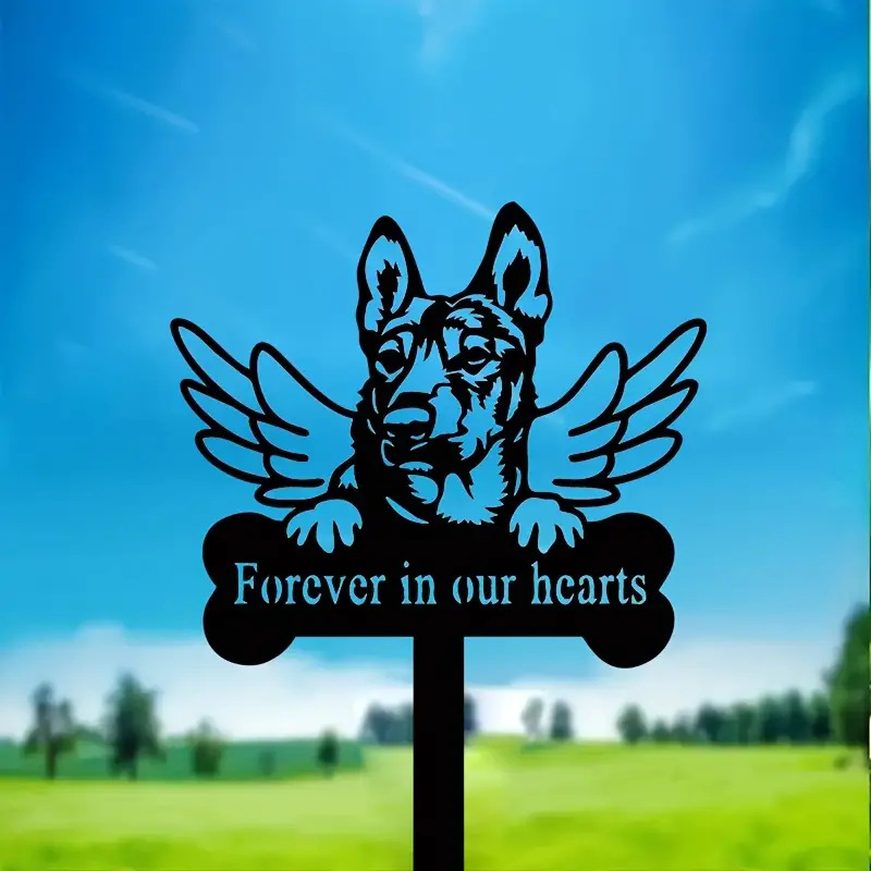 국경 간 금속 기념 플라크 스테이크 정원 스테이크 묘지 장식. 묘지 마크 묘지 삽입 기념 애완 동물 개