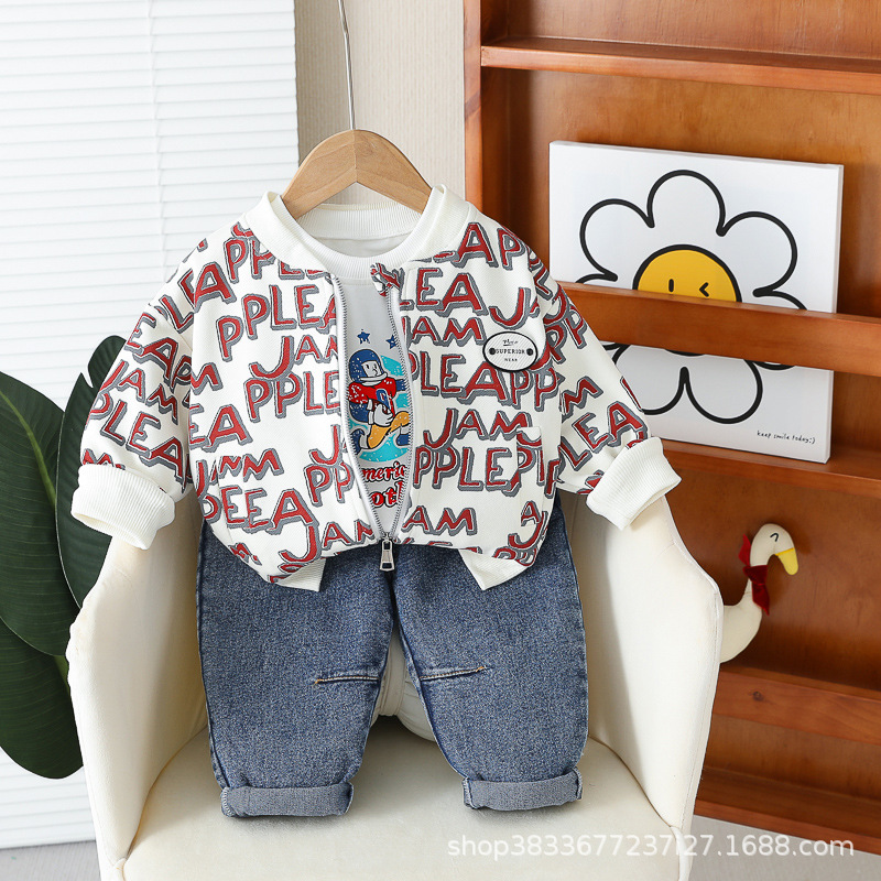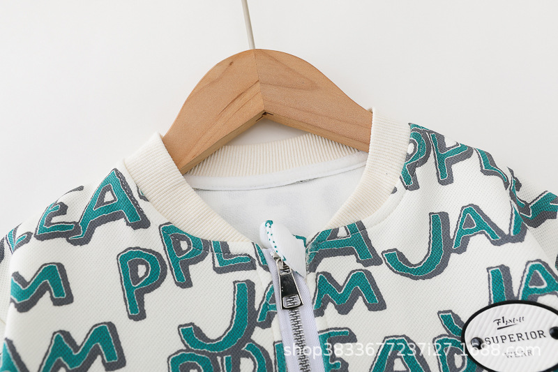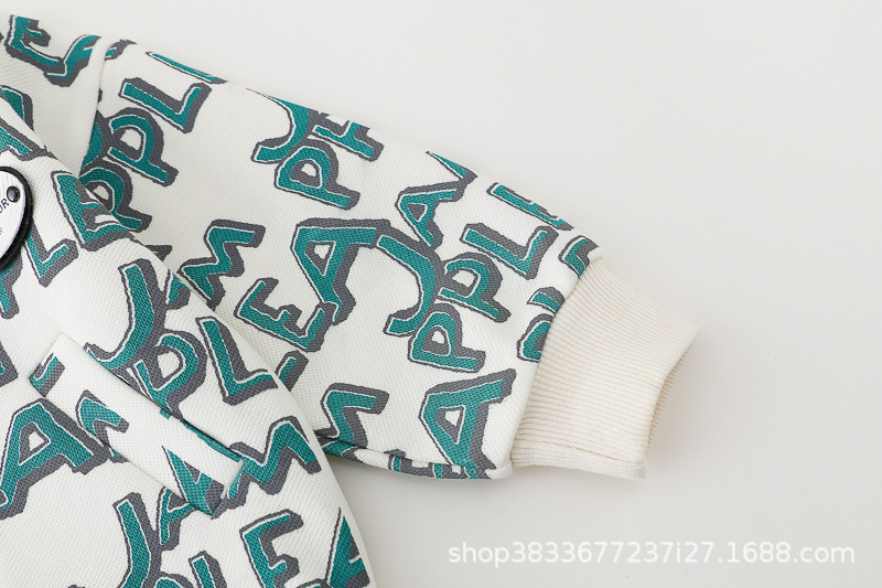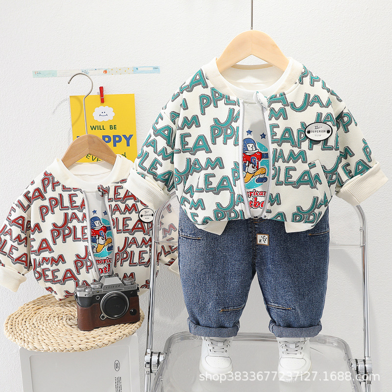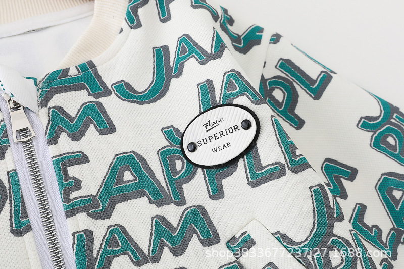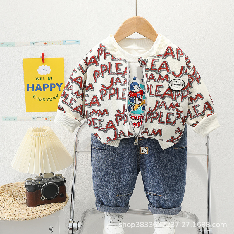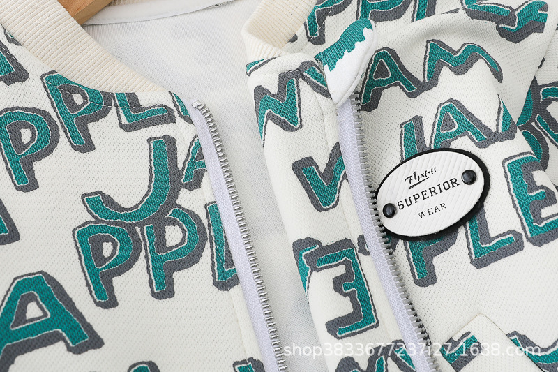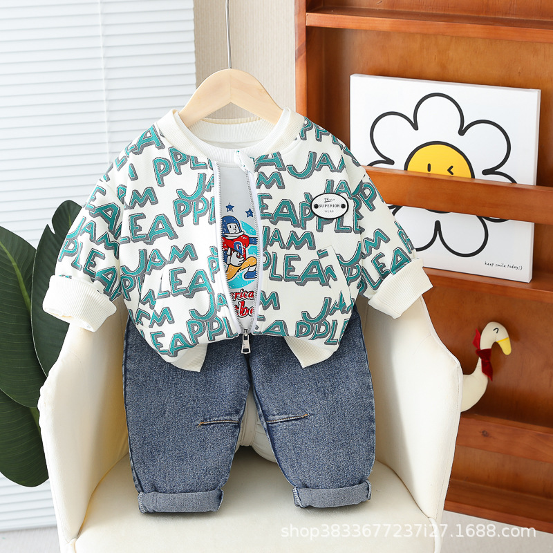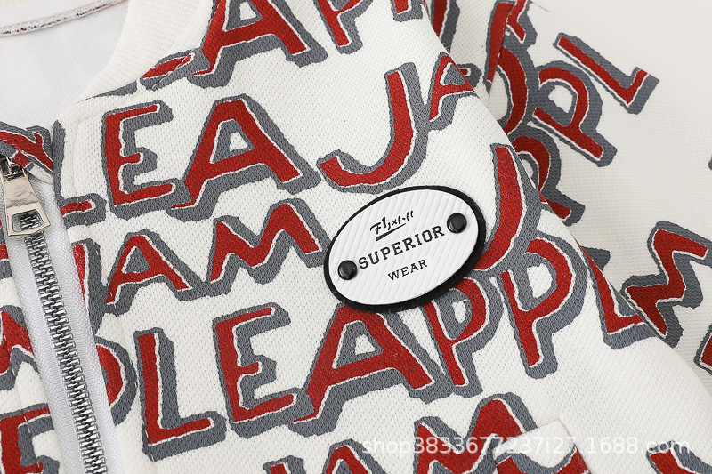 봄 새 유아 아동복 지퍼 아기 인쇄 된 글자로 가득 찬 야구 3 피스 세트 2024 신세대 머리카락스토어 가기