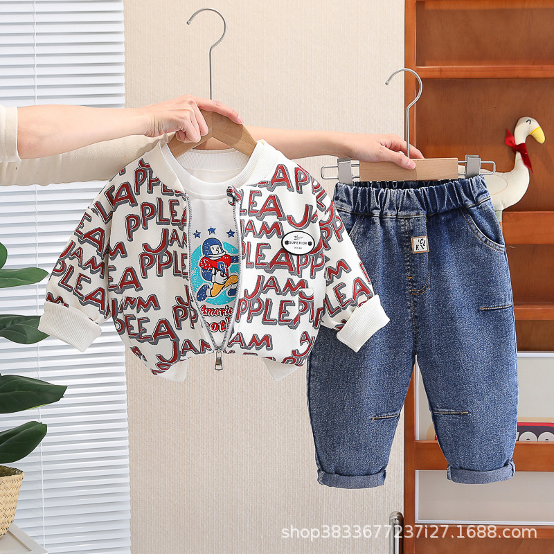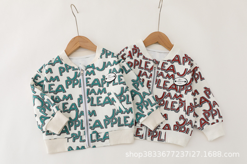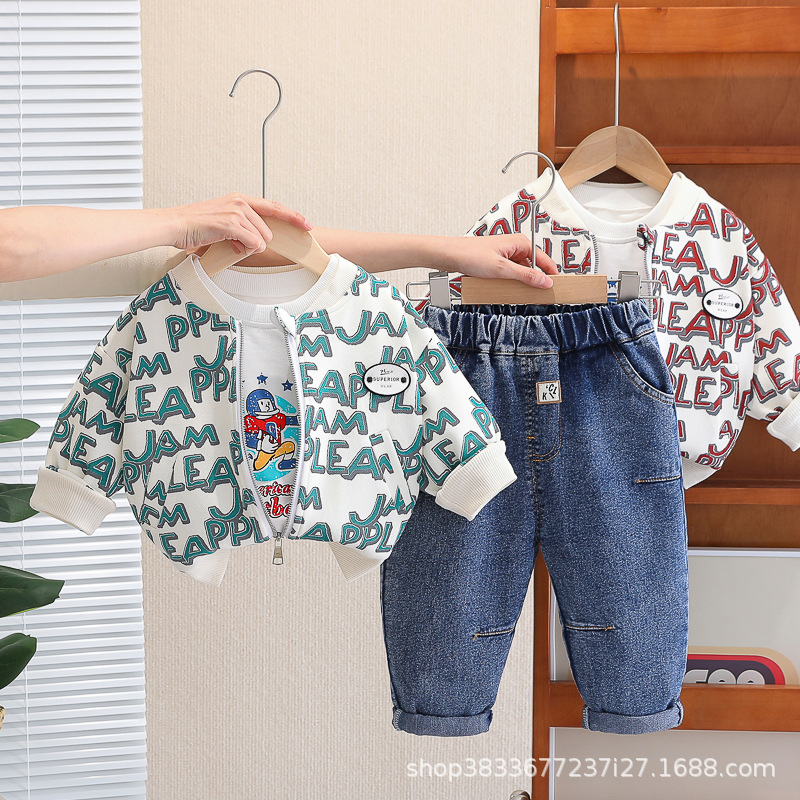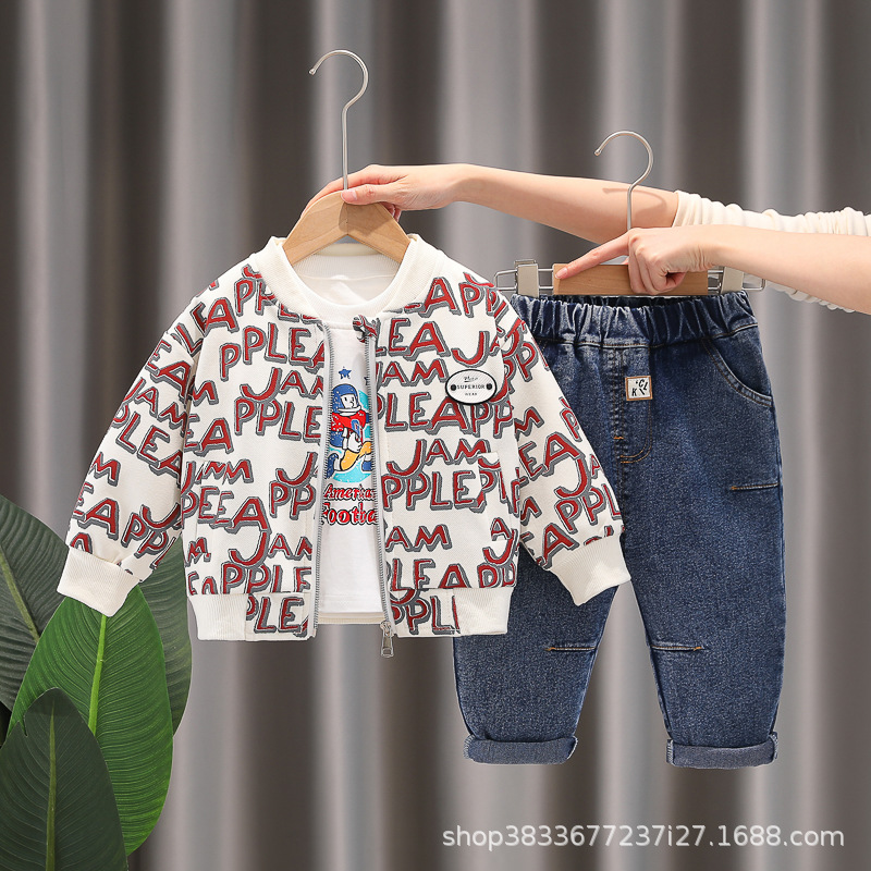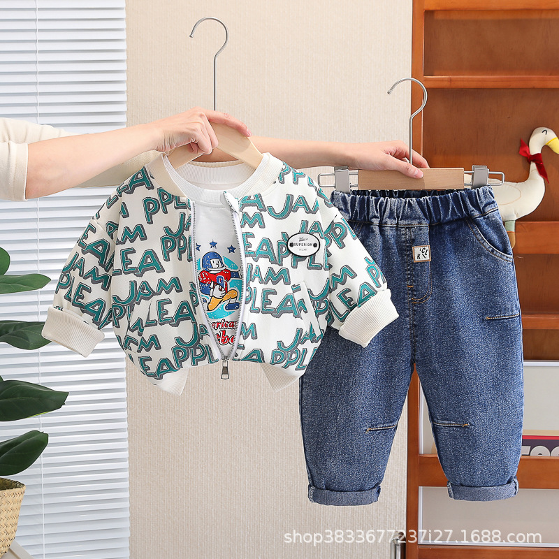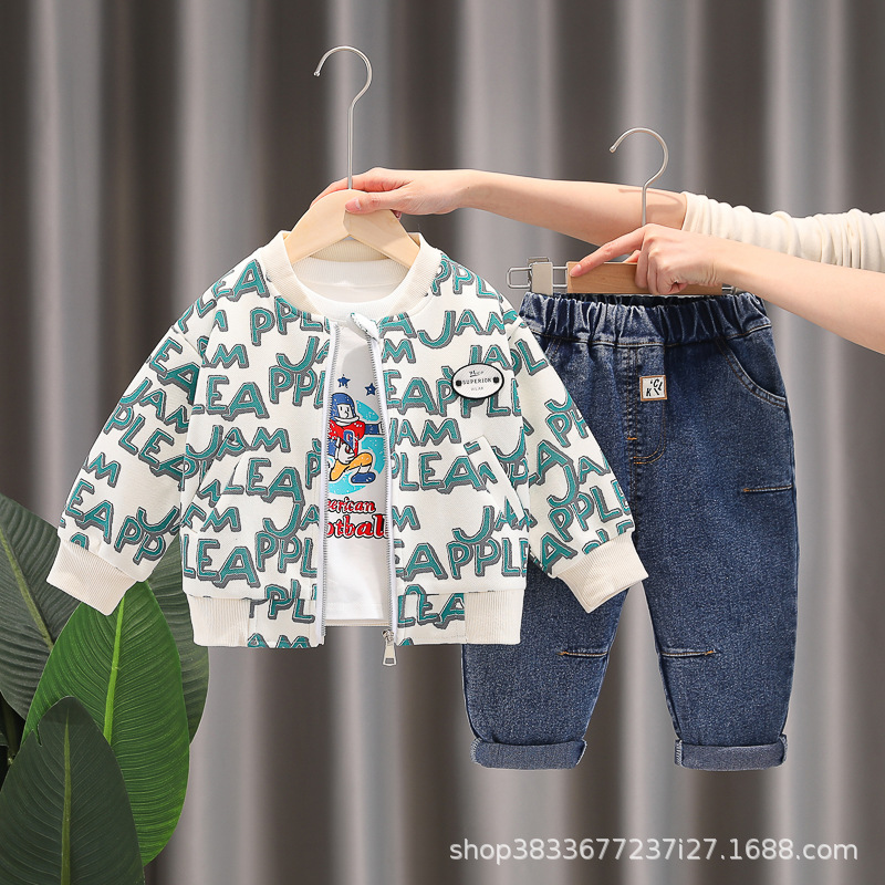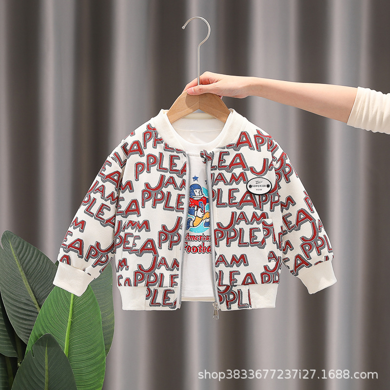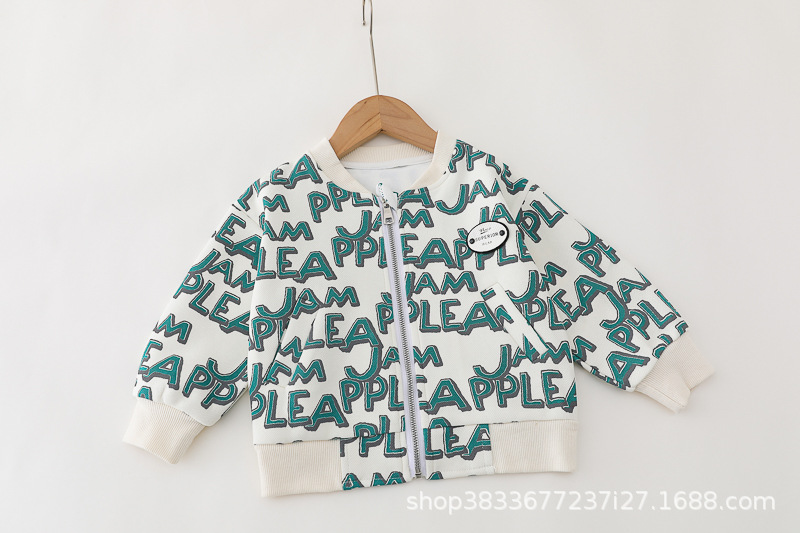 봄 새 유아 아동복 지퍼 아기 인쇄 된 글자로 가득 찬 야구 3 피스 세트 2024 신세대 머리카락스토어 가기