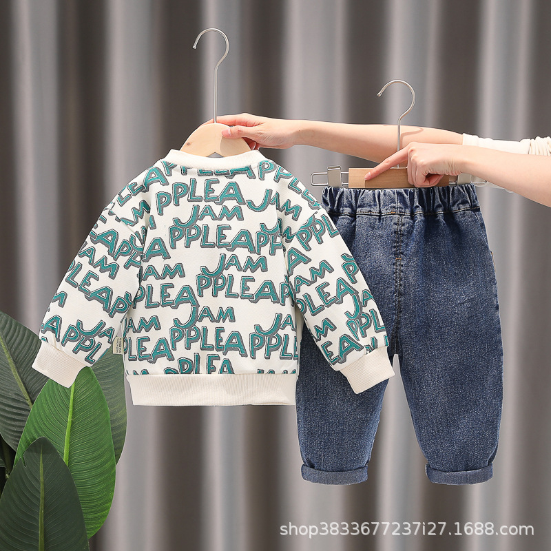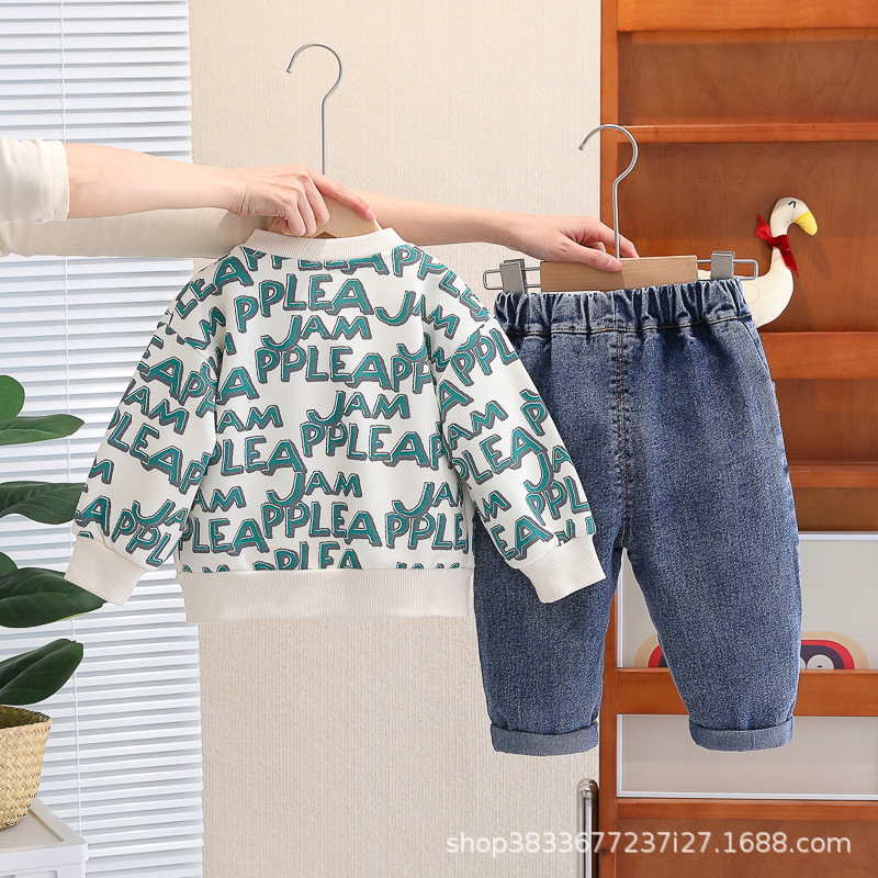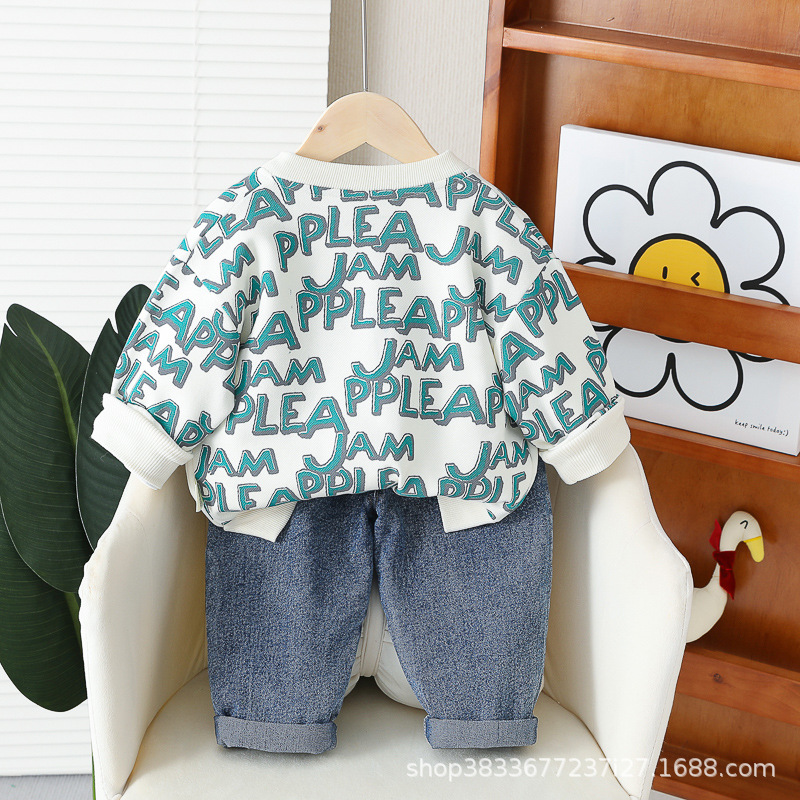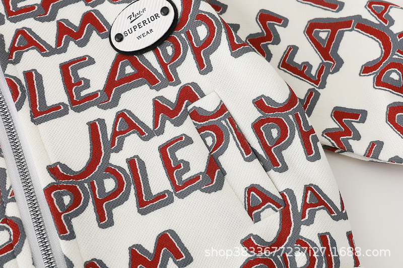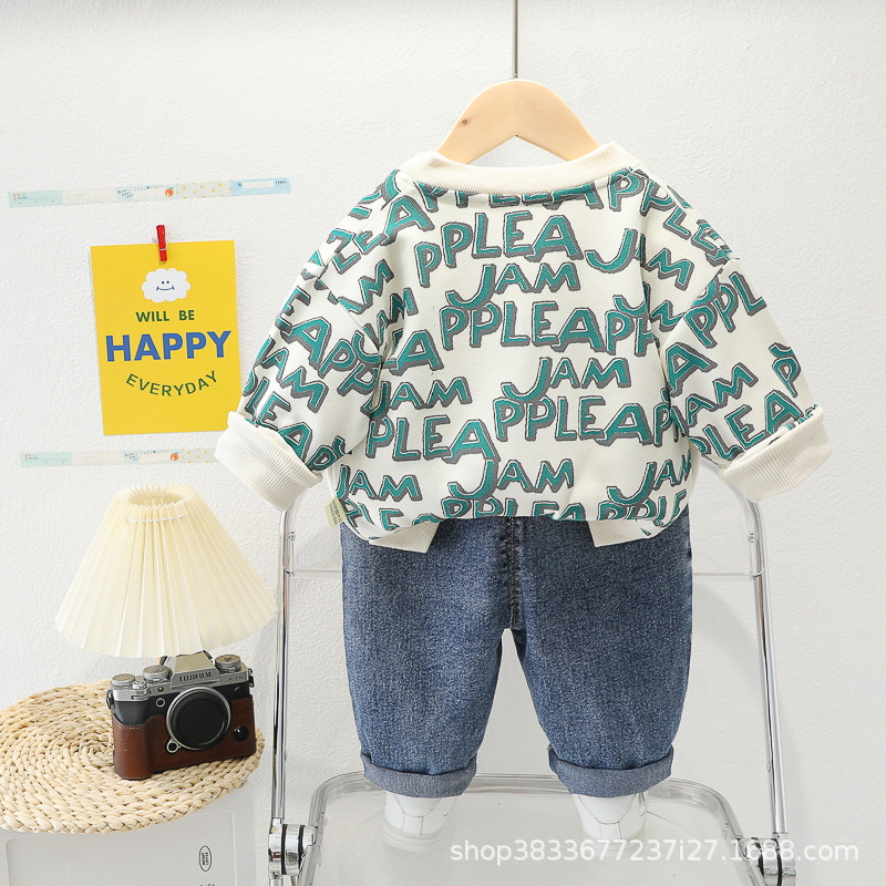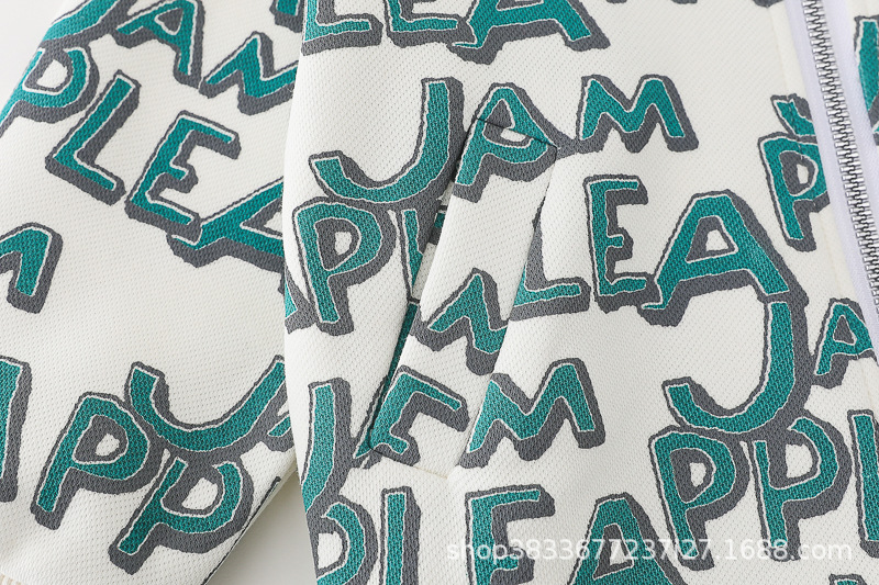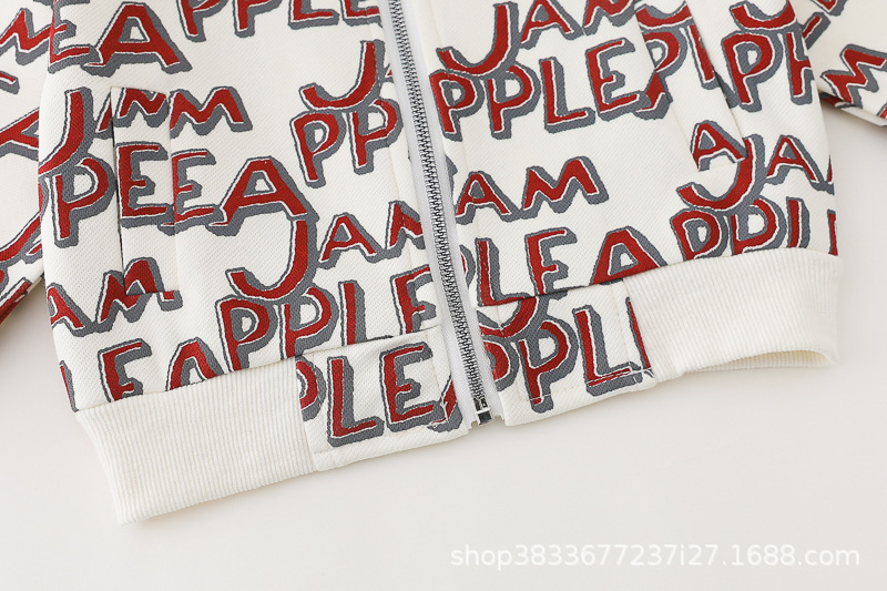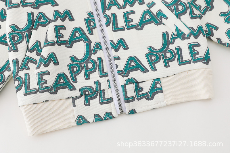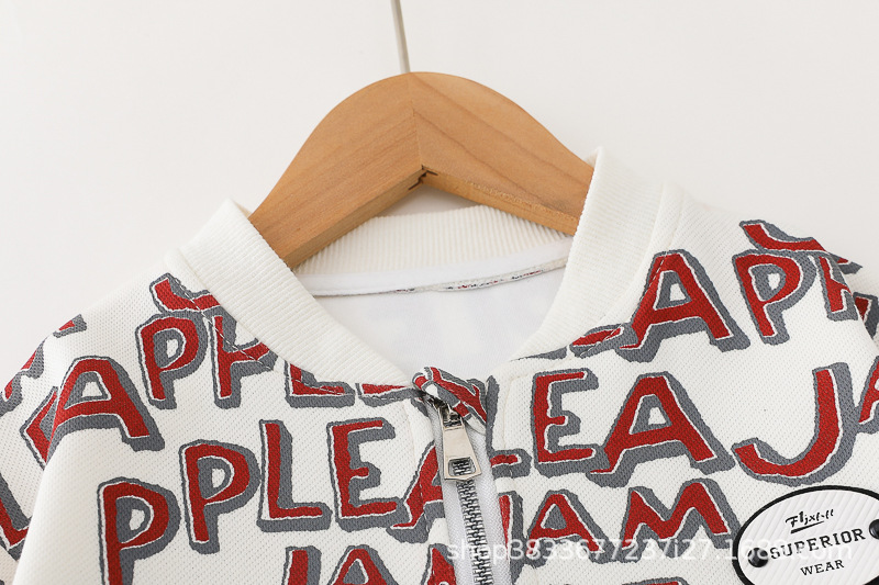 봄 새 유아 아동복 지퍼 아기 인쇄 된 글자로 가득 찬 야구 3 피스 세트 2024 신세대 머리카락스토어 가기