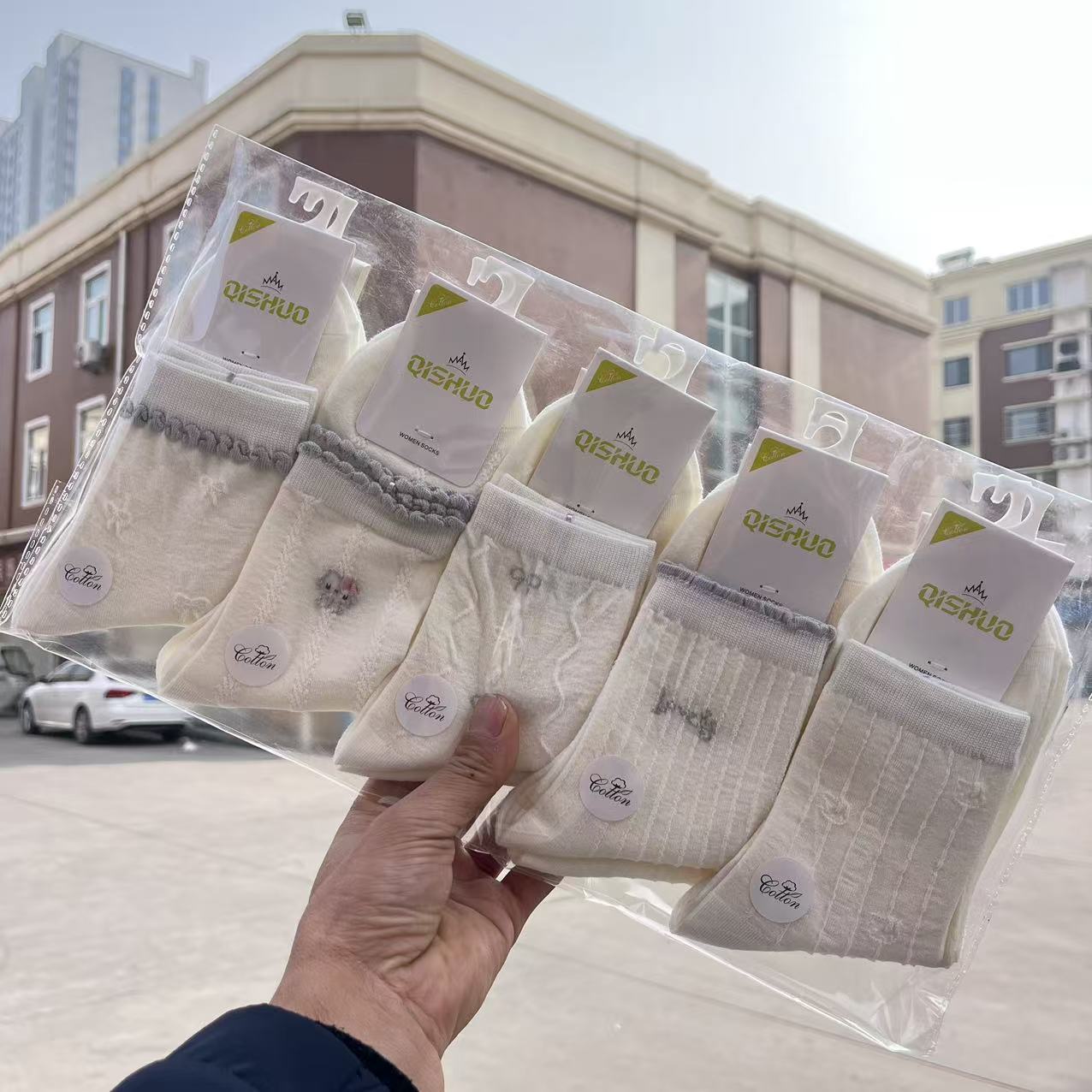 흰색 세트 작은 신선한 스타일 코튼 중간 허리 그물 양말 봄과 여름 여성 대학 스타일 스포츠 레저 메쉬 코튼 양말스토어 가기