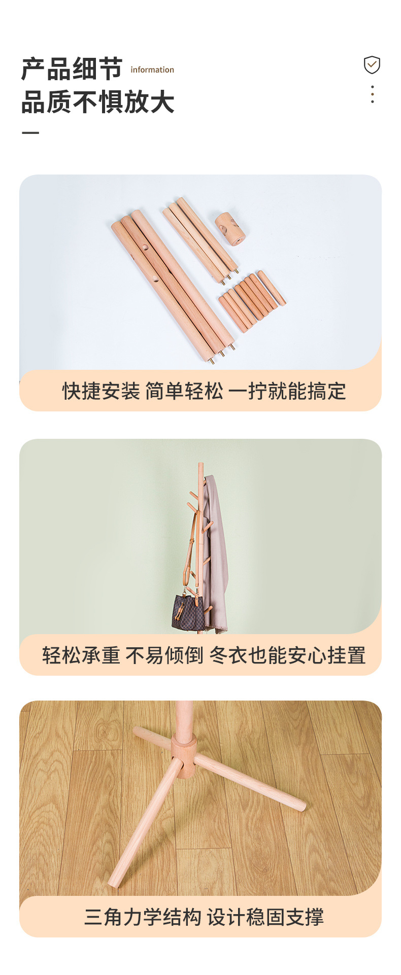 너도밤 나무 옷걸이 바닥 침실 코트 랙 너도밤 나무 옷걸이 거실 수직 간단한 가정용 옷 랙로드