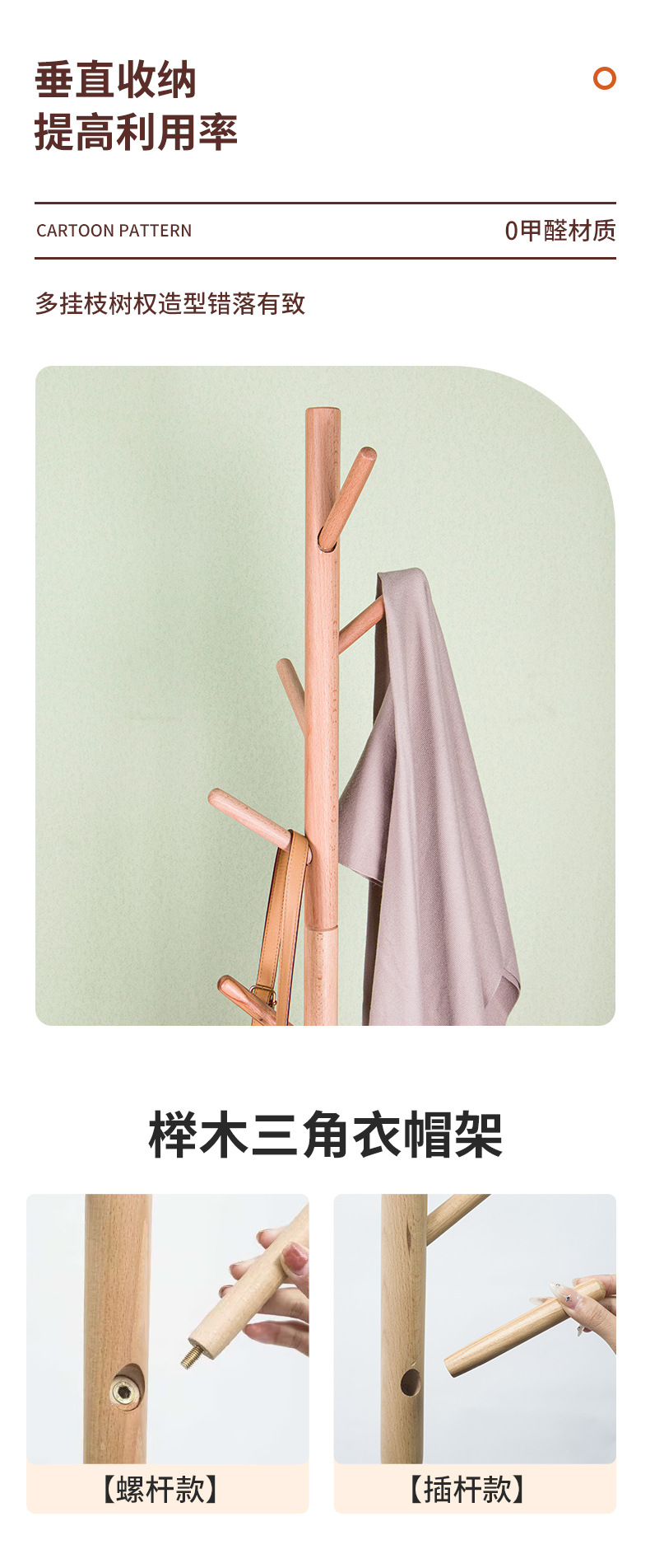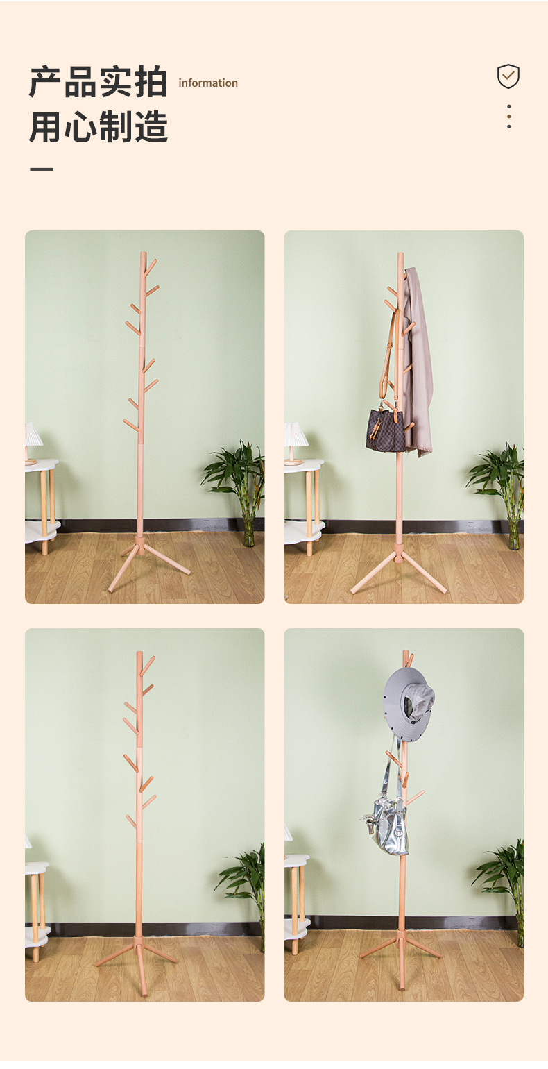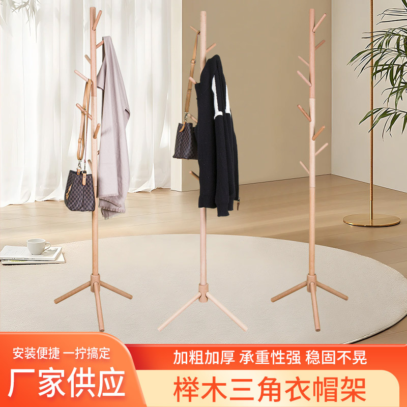 너도밤 나무 옷걸이 바닥 침실 코트 랙 너도밤 나무 옷걸이 거실 수직 간단한 가정용 옷 랙로드스토어 가기