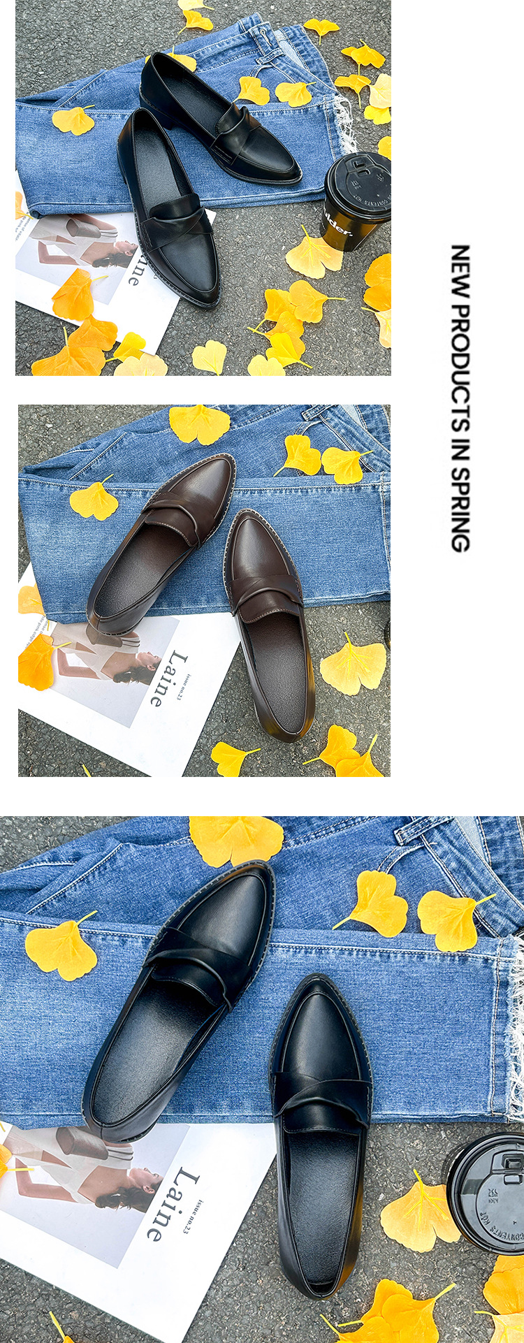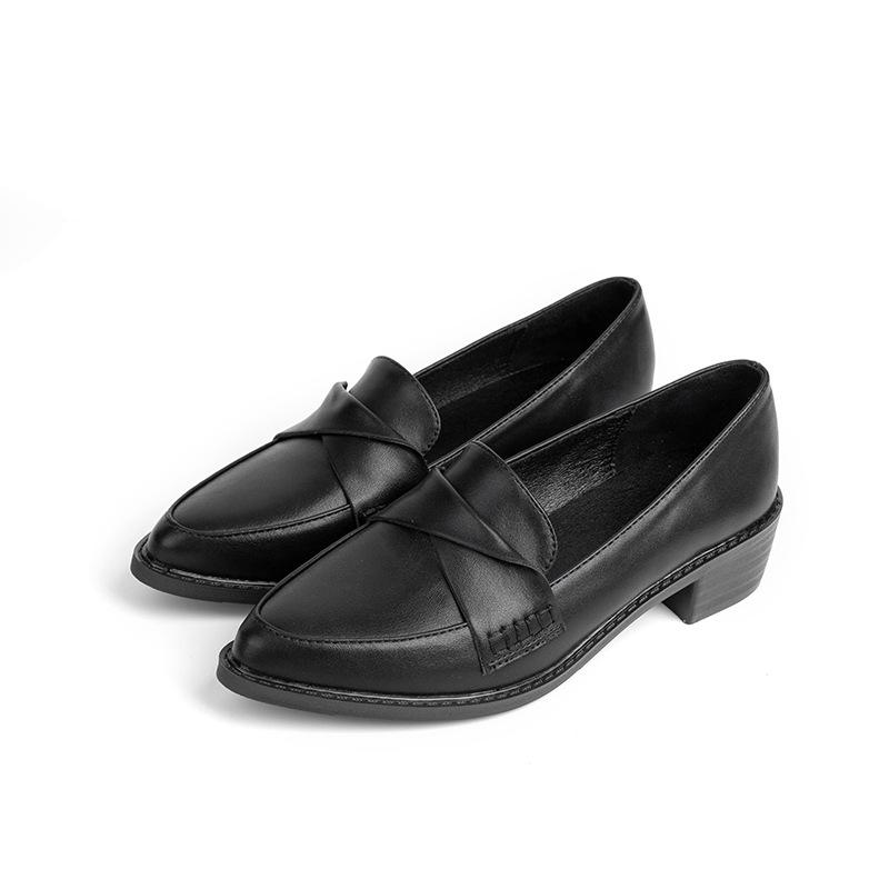 여성을위한 작은 가죽 신발 2024 새로운 간단한 올 매치 블랙 전문 부드러운 바닥 작업 신발 뾰족한 발가락 플러스 사이즈 로퍼 4143스토어 가기