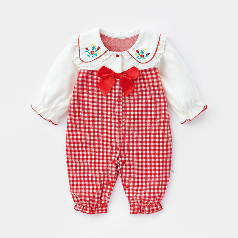신생아 하퍼 2024 봄 체크 무늬 소매 아기 긴 소매 하퍼 봄 가을 한국 스타일 등반 세트 2659