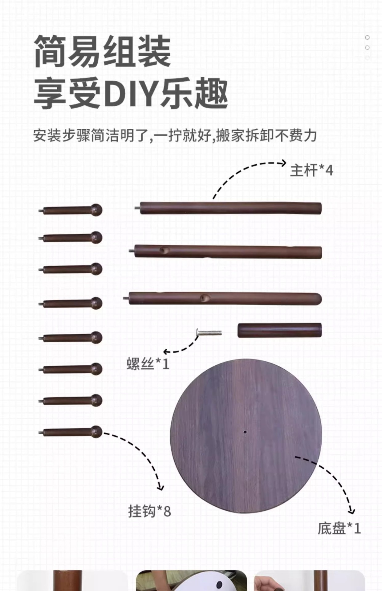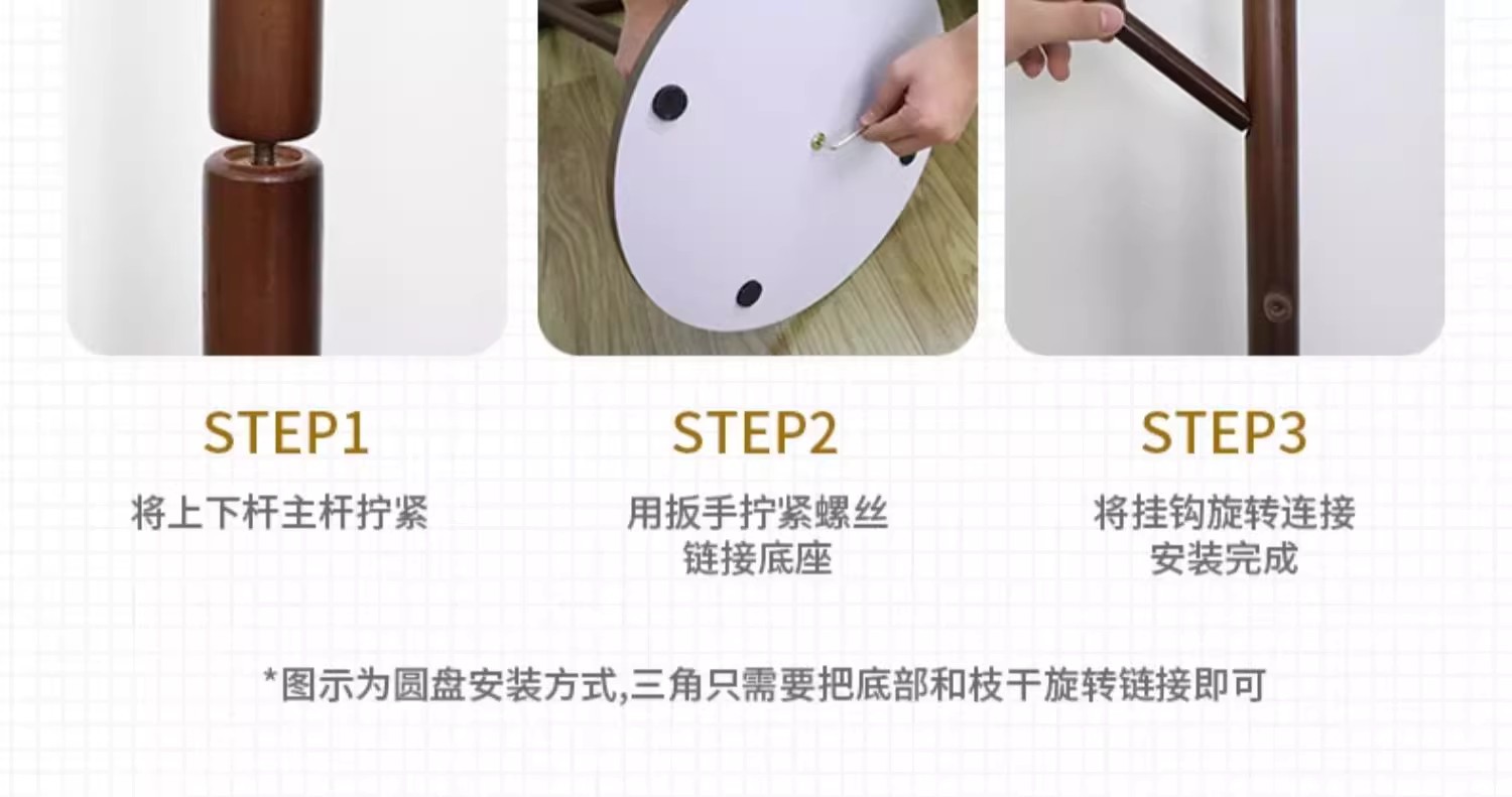 • CJ64B-solid 우드 행거 페인트 3 다리 8 훅 아이보리 화이트