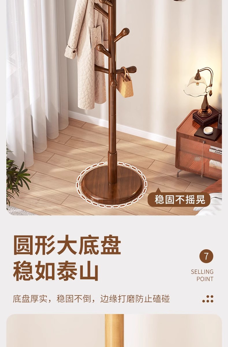 • CJ66R-solid 나무 옷걸이-페인트 디스크 8 후크 호두 색상-둥근 구슬-굵은