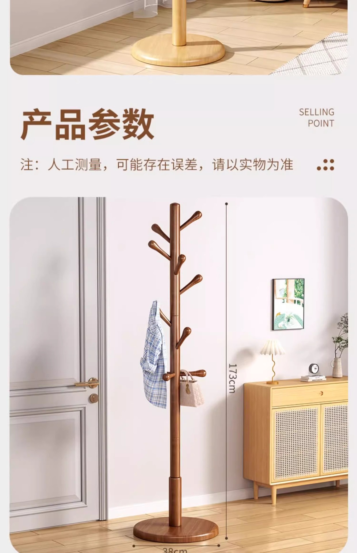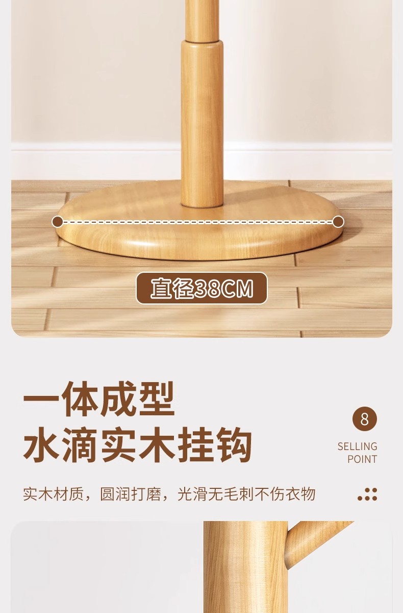 • CJ85Y-solid 나무 옷걸이-페인트 디스크 8 후크 나무 색상-원뿔-굵게