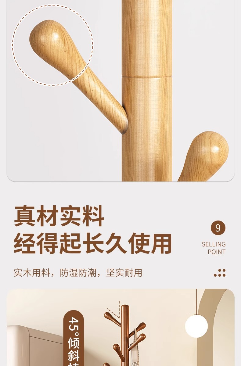 • CJ74Y-solid 나무 옷걸이 페인트 3 다리 8 후크 나무 색 둥근 구슬
