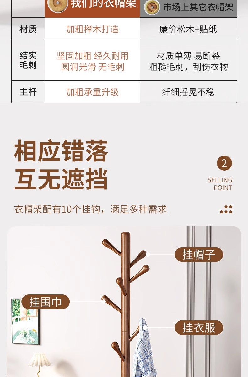 단단한 나무 코트 랙 바닥 침실 옷걸이 방 옷걸이 옷 홈 싱글로드 병렬 바 간단한 교수형 가방 랙 도매