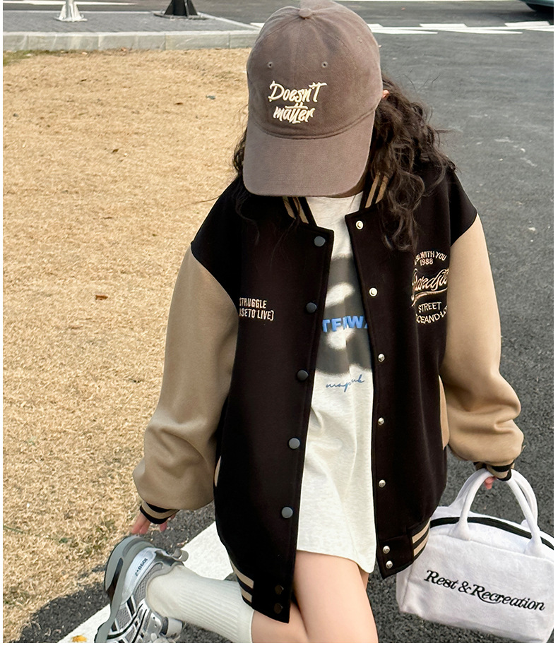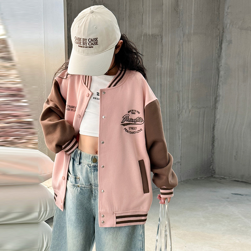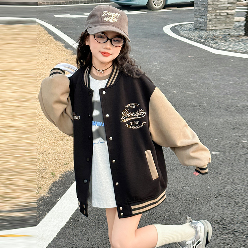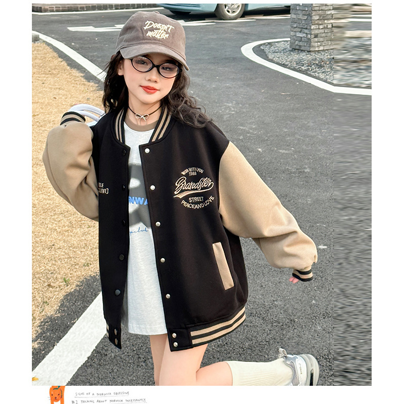 여자 야구 유니폼 봄 2025 새로운 스타일 아동 자켓 봄과 가을 어린 소녀 색상 일치 스포츠 자켓 탑스토어 가기