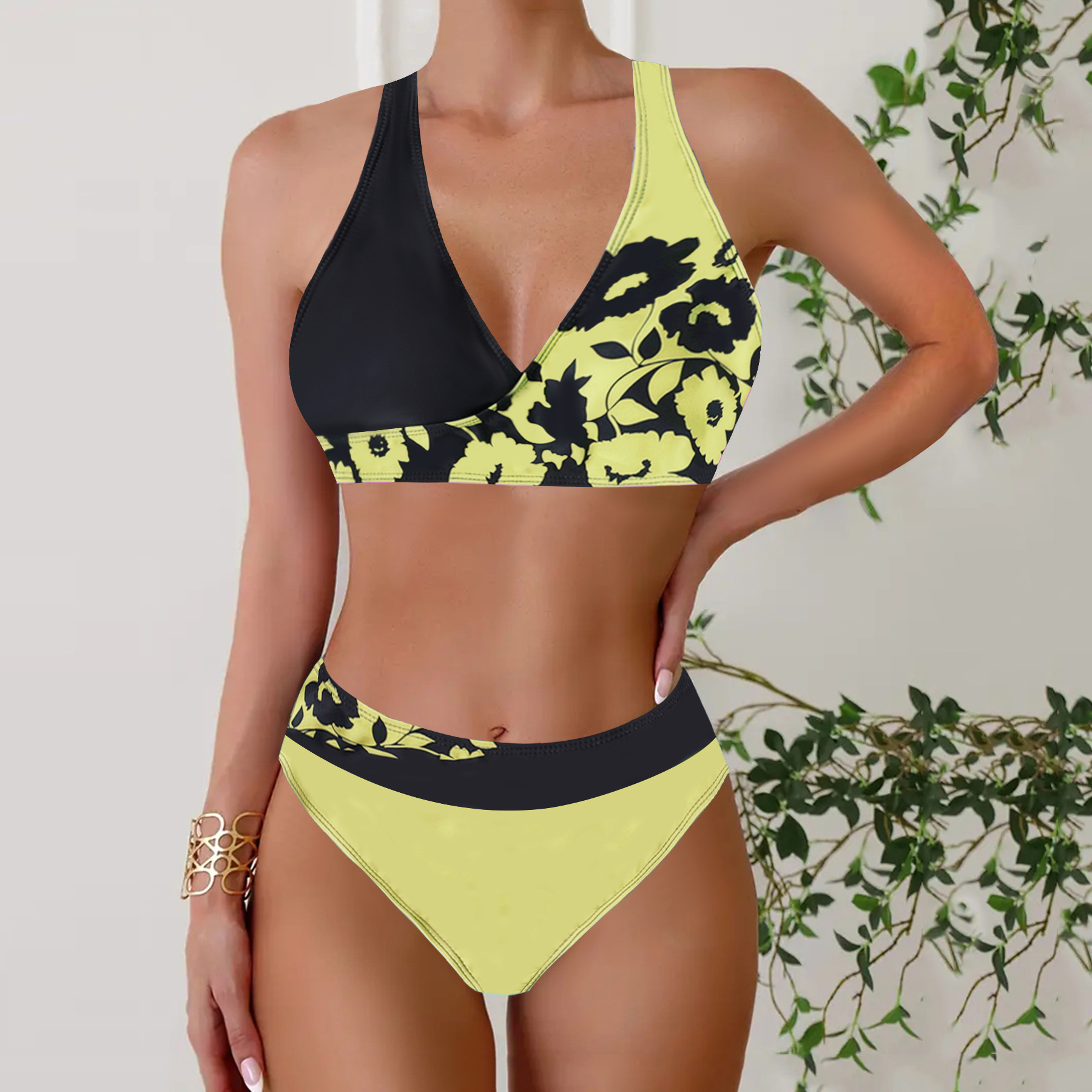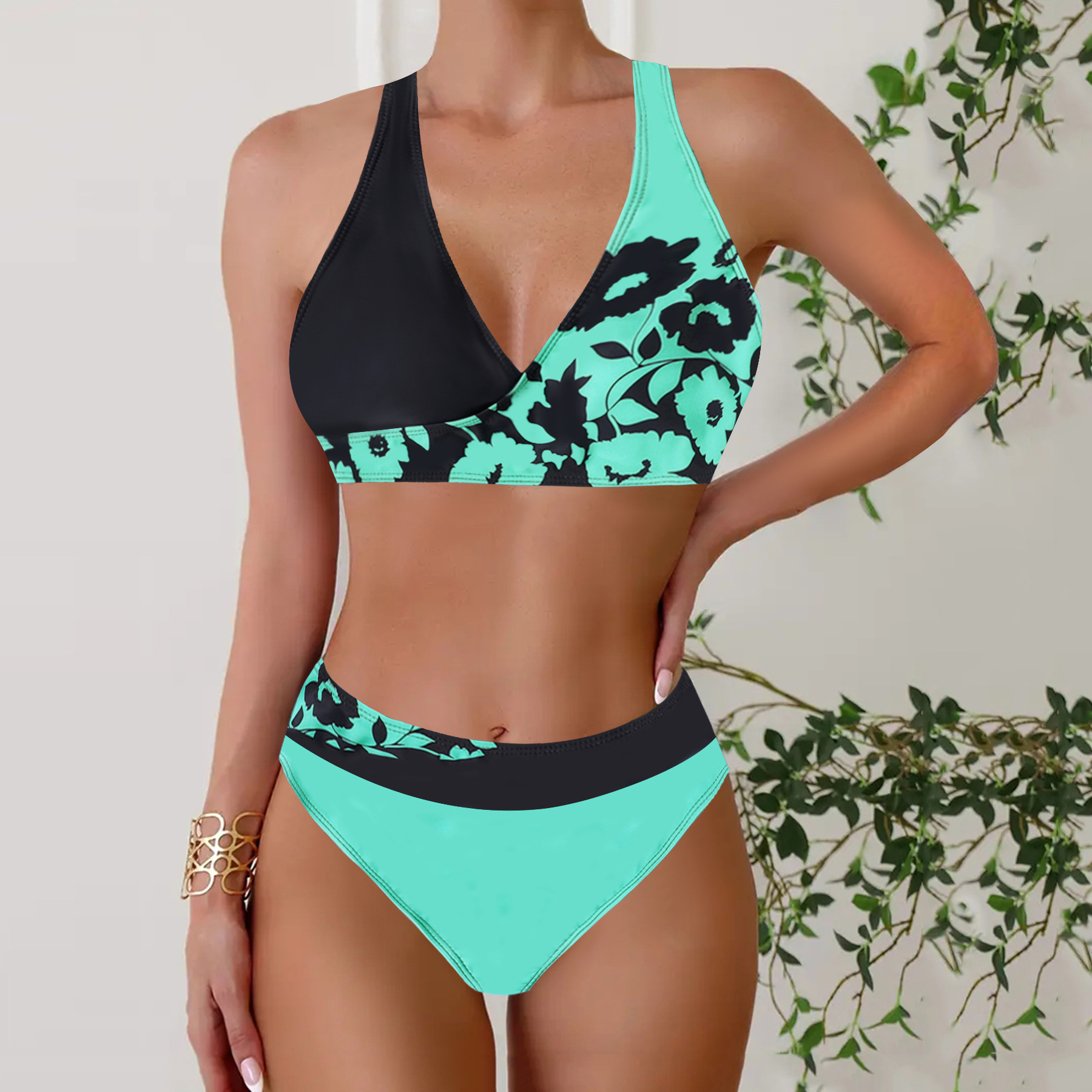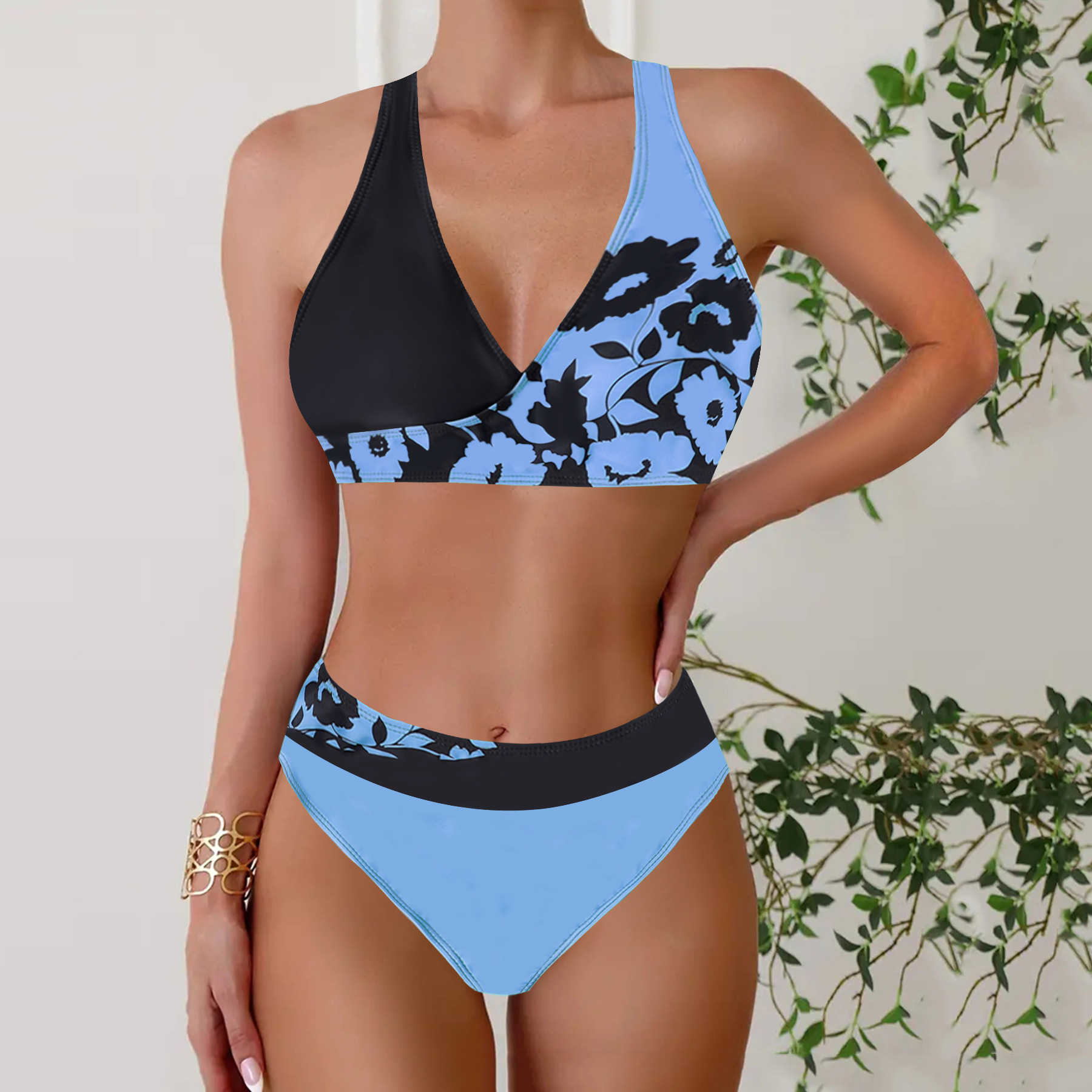 2024 새로운 유럽 및 미국 수영복 여성 국경 분할 대형 삼각형 여성 목 넥타이 업 비키니 인쇄 수영복