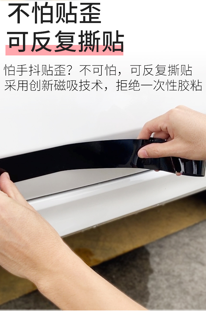 자동차 자기 흡입 도어 충돌 방지 밝은 스트립 흑백 주차장 안티 스크래치 사이드 스커트 충돌 보이지 않는 장식 보호 스트립