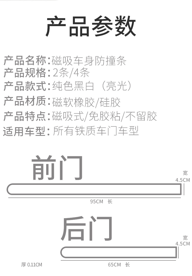 • [순수한 밝은 흰색 자기 차체 충돌 방지 스트립 - 4개 팩] 전면 및 후면 도어