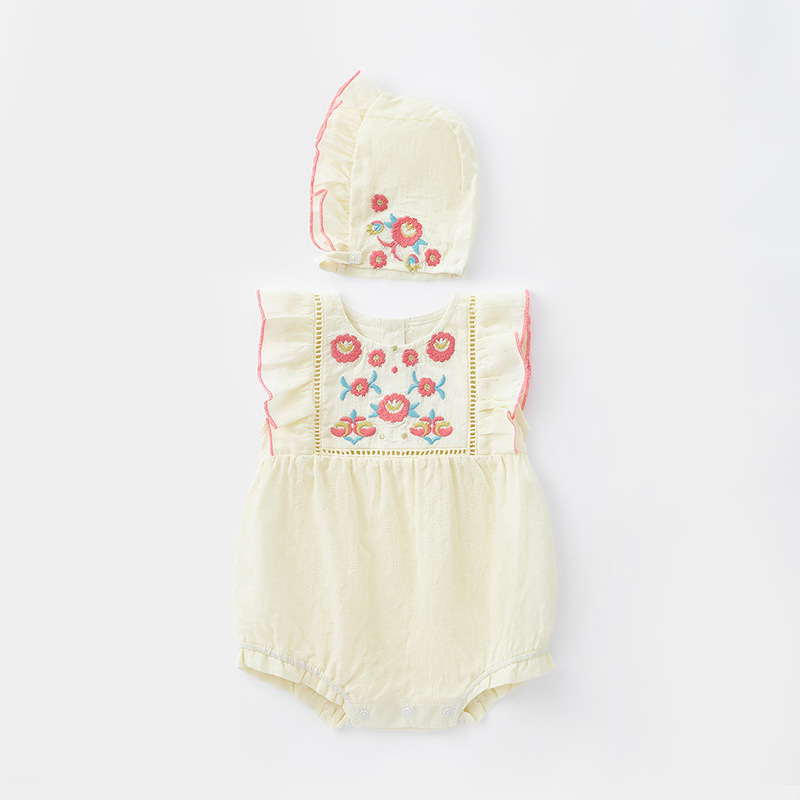 아기의 여름 방귀로 포장 된 2025 점프 수트 아기의 자수 삼각형 등반 세트 신생아 소녀 점프 수트 2260