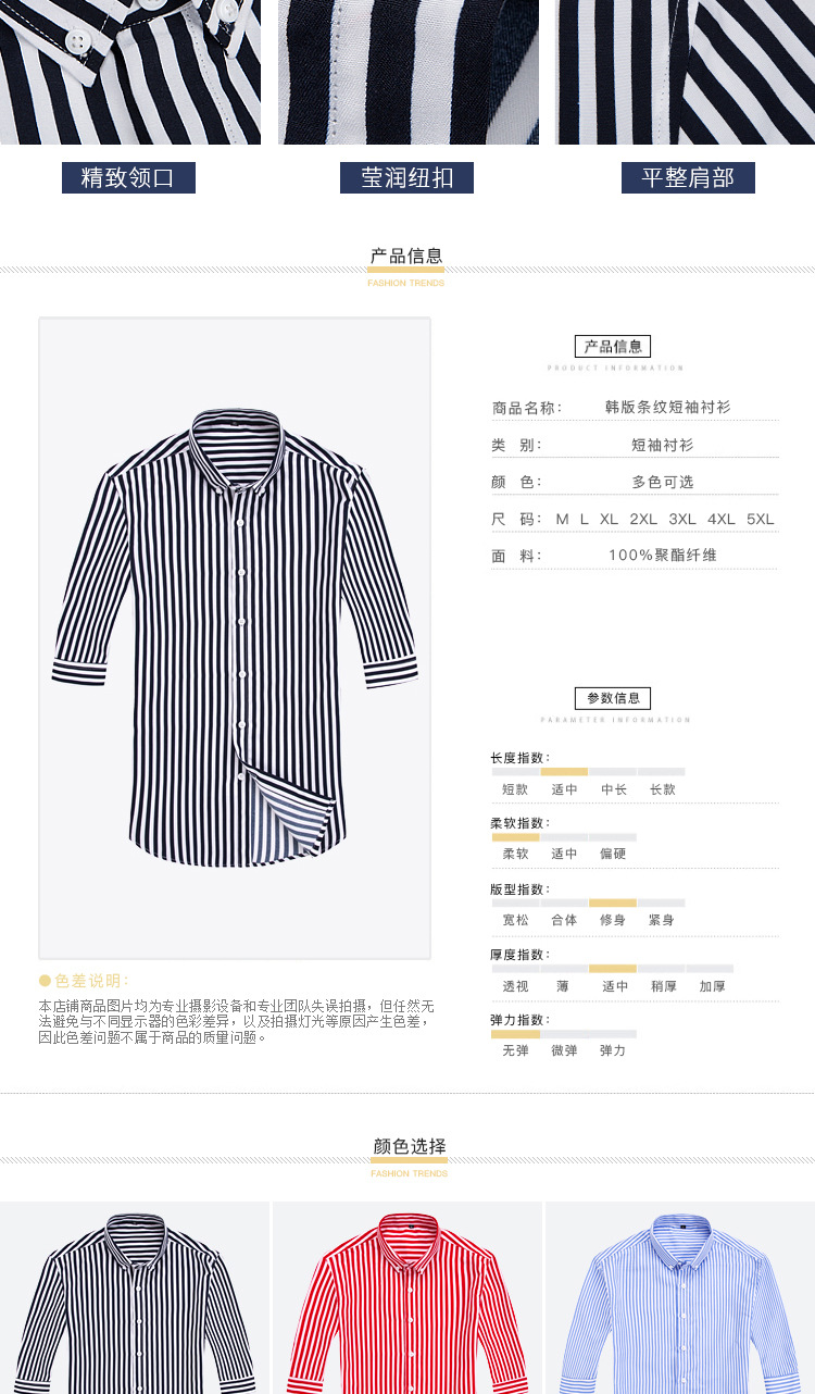 스트라이프 셔츠 여름 반팔 3/4 소매 전문 비즈니스 공식 착용 한국 스타일 유행 올 매치 패션 브랜드 셔츠스토어 가기