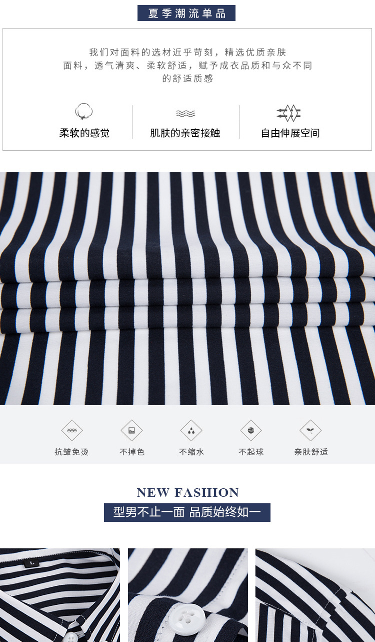 스트라이프 셔츠 여름 반팔 3/4 소매 전문 비즈니스 공식 착용 한국 스타일 유행 올 매치 패션 브랜드 셔츠