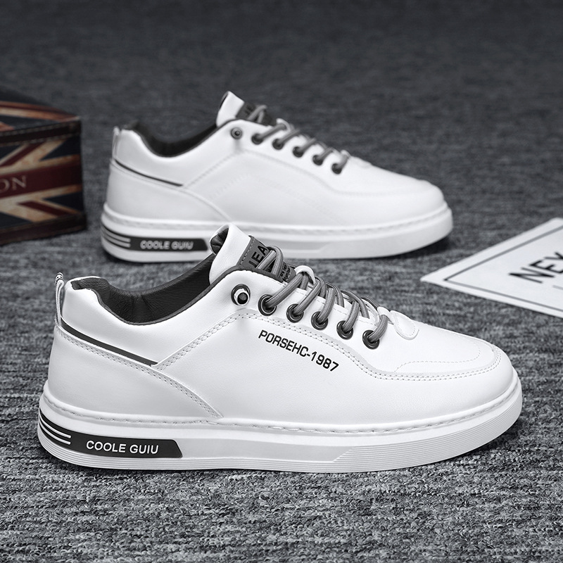 슬립 온 남성 신발 2024 새로운 봄 트렌디 한 통기성 보드 신발 남성 캐주얼 가죽 신발 올 매치 화이트 세련된 신발