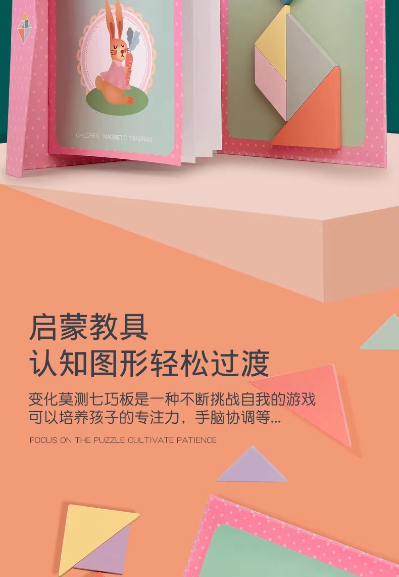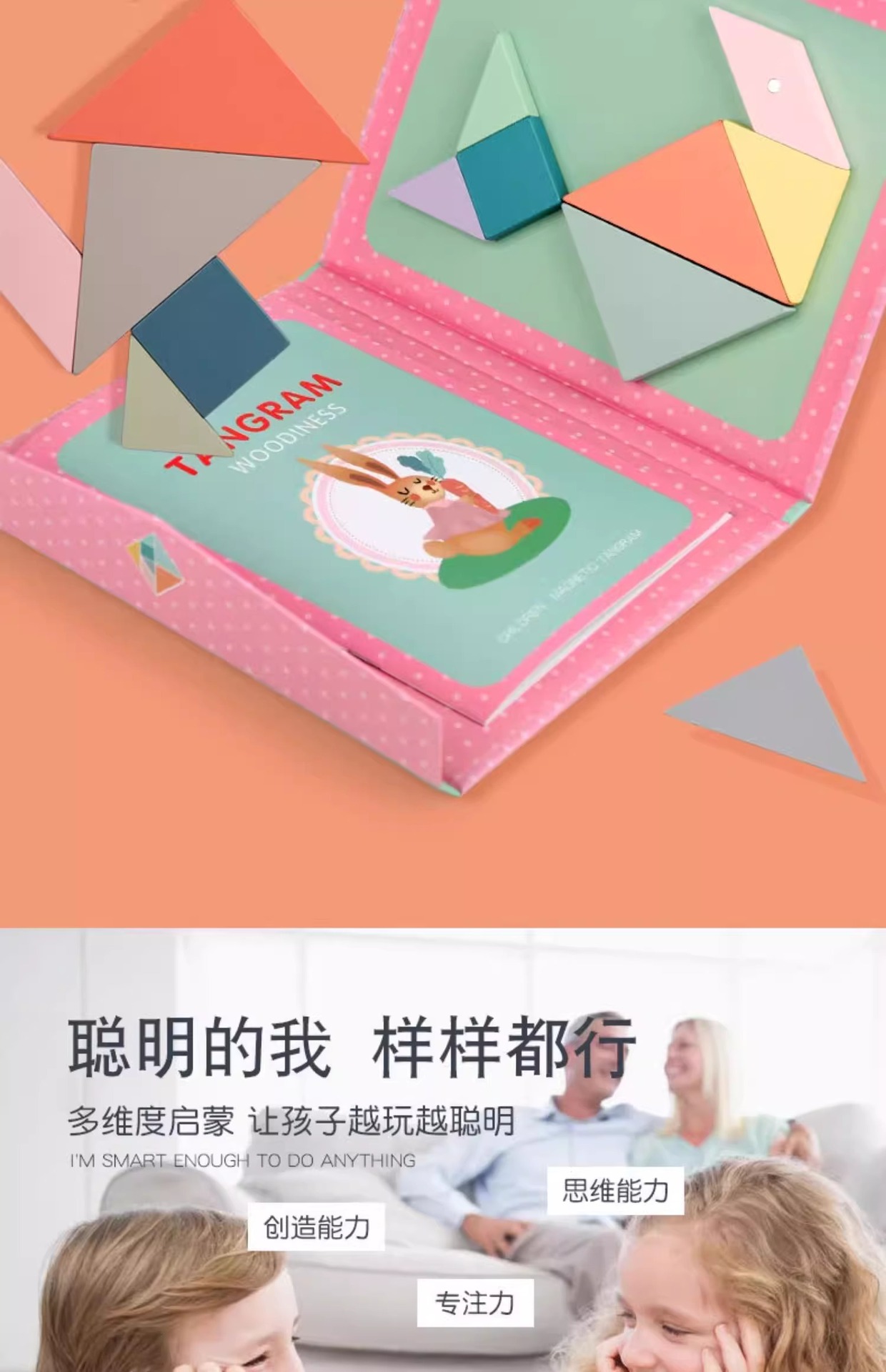 磁性七巧板智力拼图一年级数学教具小学生专用儿童幼儿园益智玩具