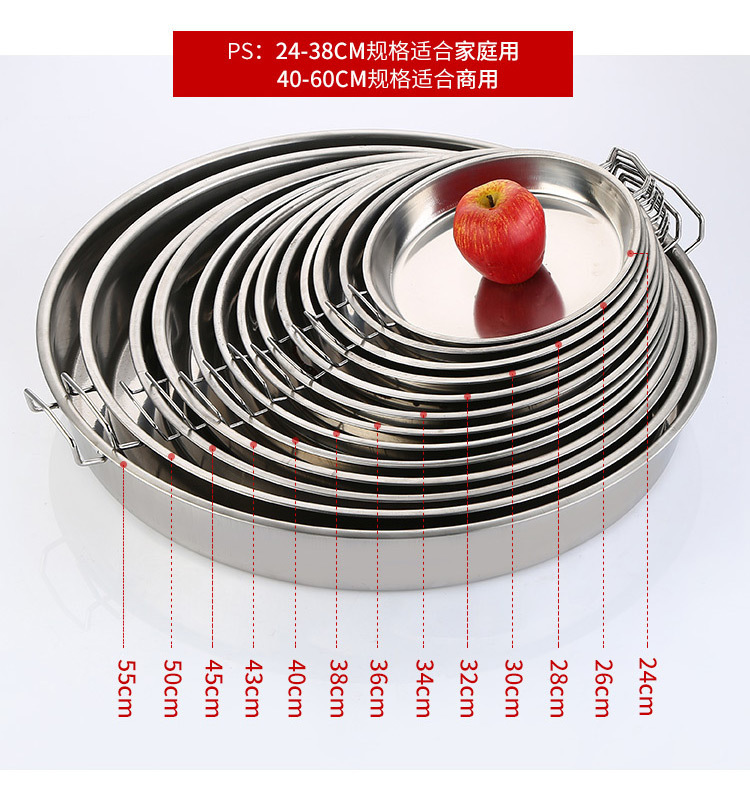 깊어진 스테인레스 스틸 디스크 쿨 가죽 플레이트 대형 디스크 트레이 쌀 플레이트 플랫 하단 플레이트 가정용 쿨 가죽 공 플레이트