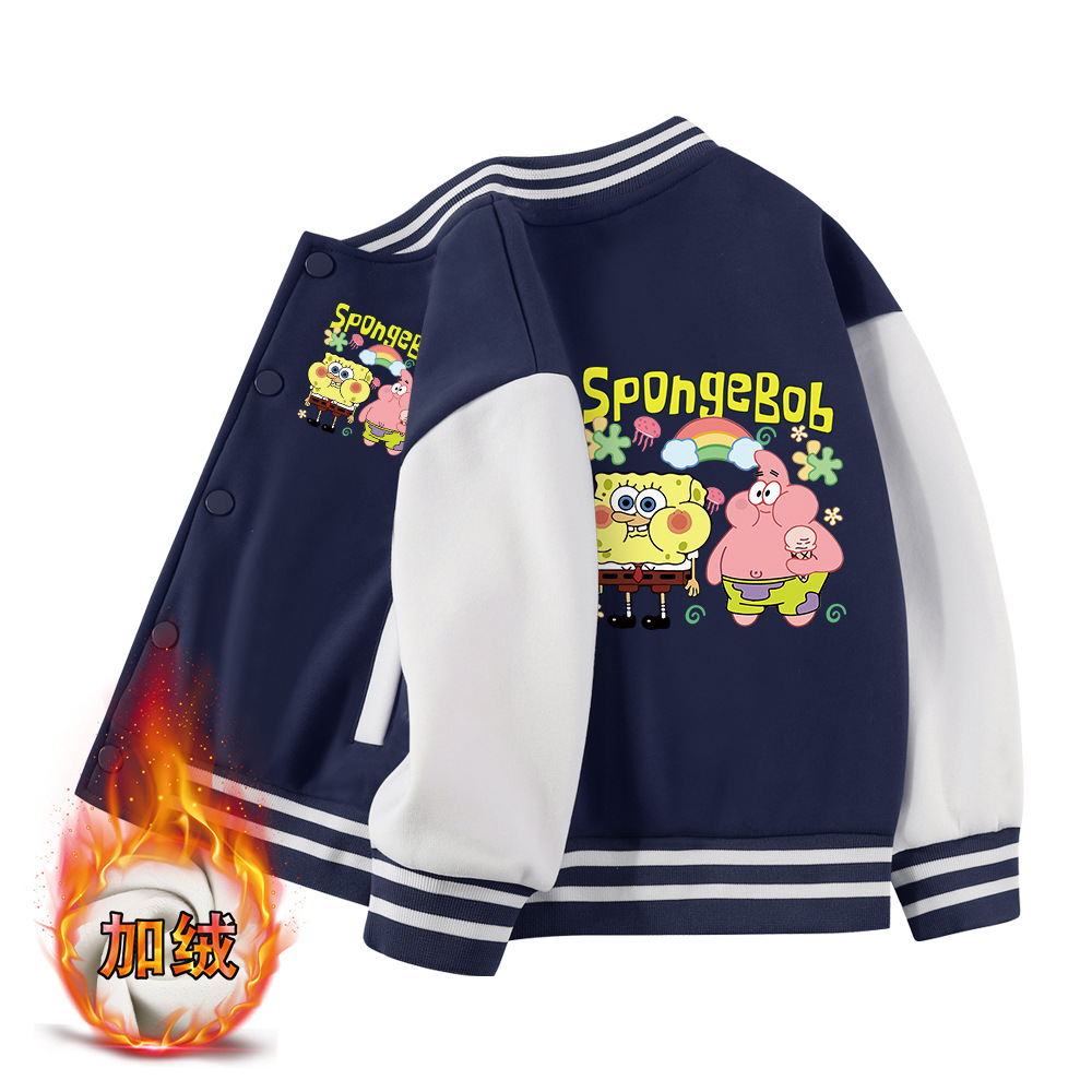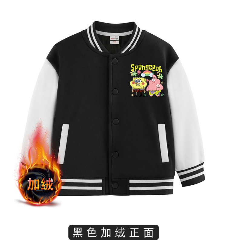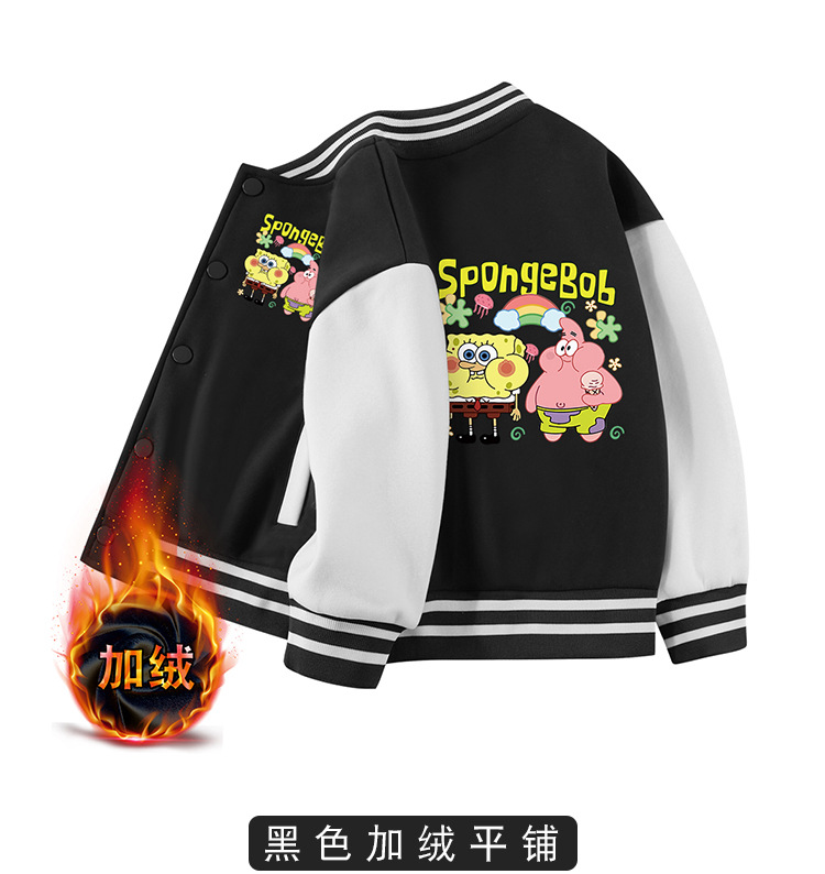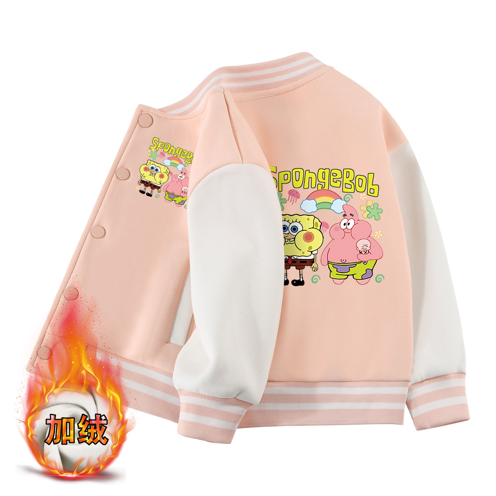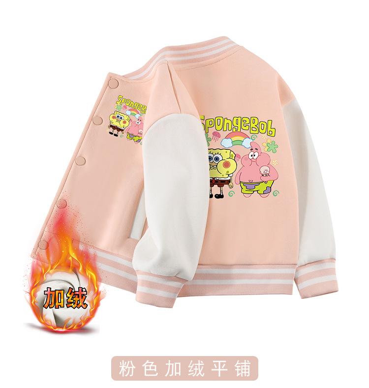 어린이 야구 세트 코트 2025 새로운 소년과 소녀 가을 겨울 기모 두꺼운 재킷 스폰지 밥 옷