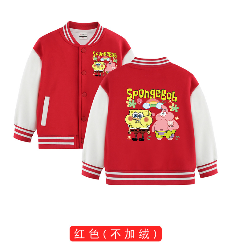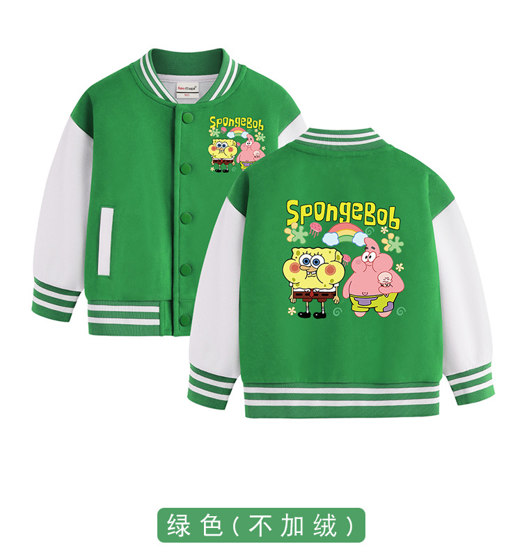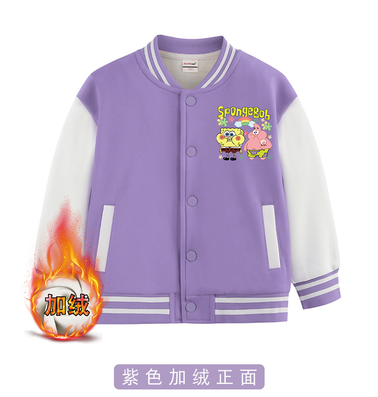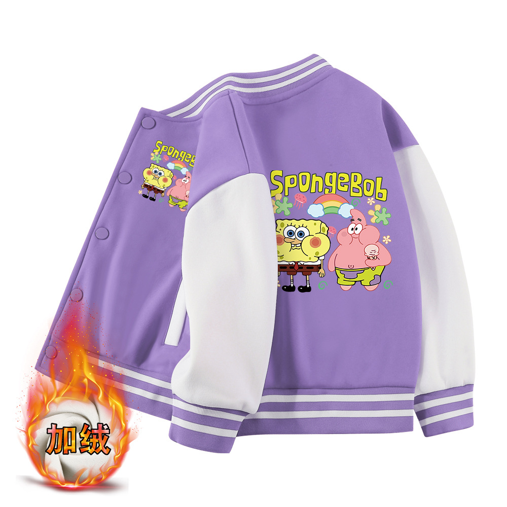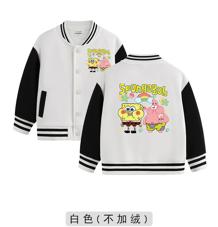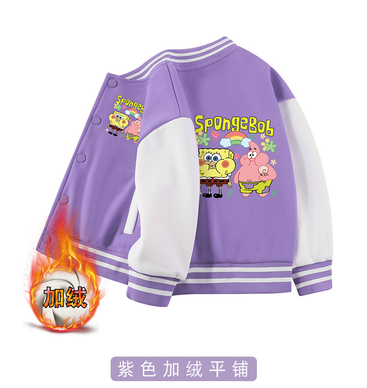 어린이 야구 세트 코트 2025 새로운 소년과 소녀 가을 겨울 기모 두꺼운 재킷 스폰지 밥 옷