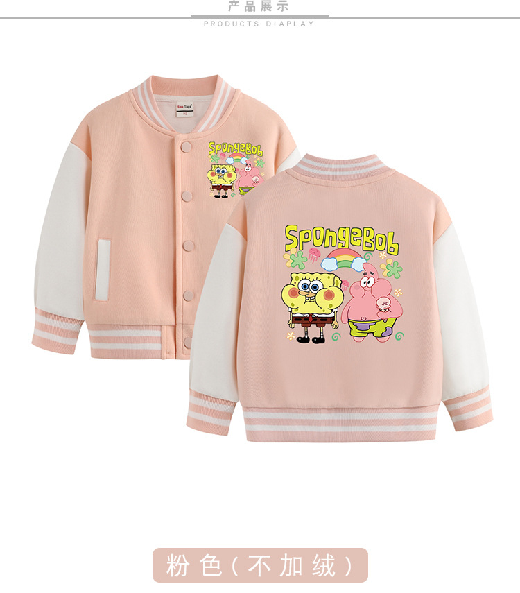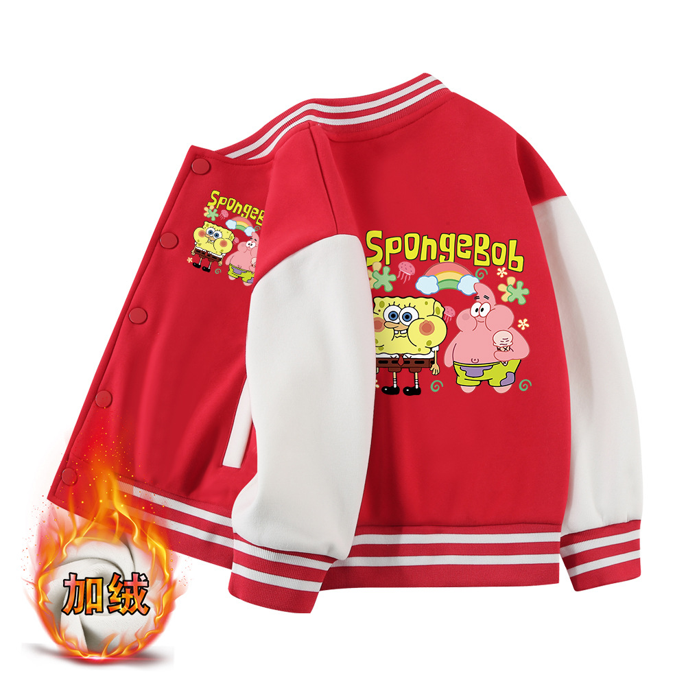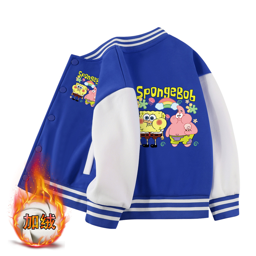 어린이 야구 세트 코트 2025 새로운 소년과 소녀 가을 겨울 기모 두꺼운 재킷 스폰지 밥 옷스토어 가기