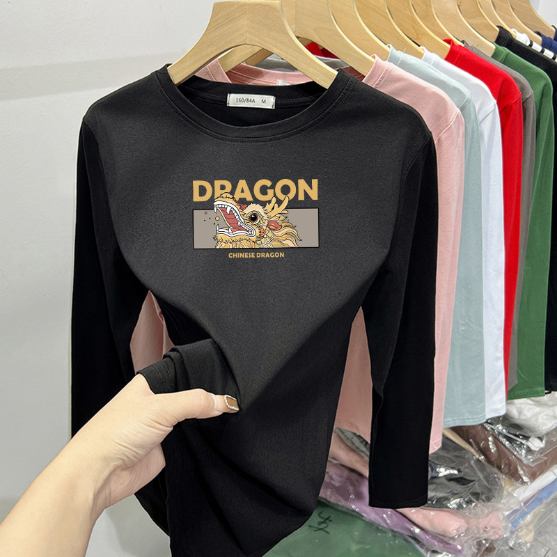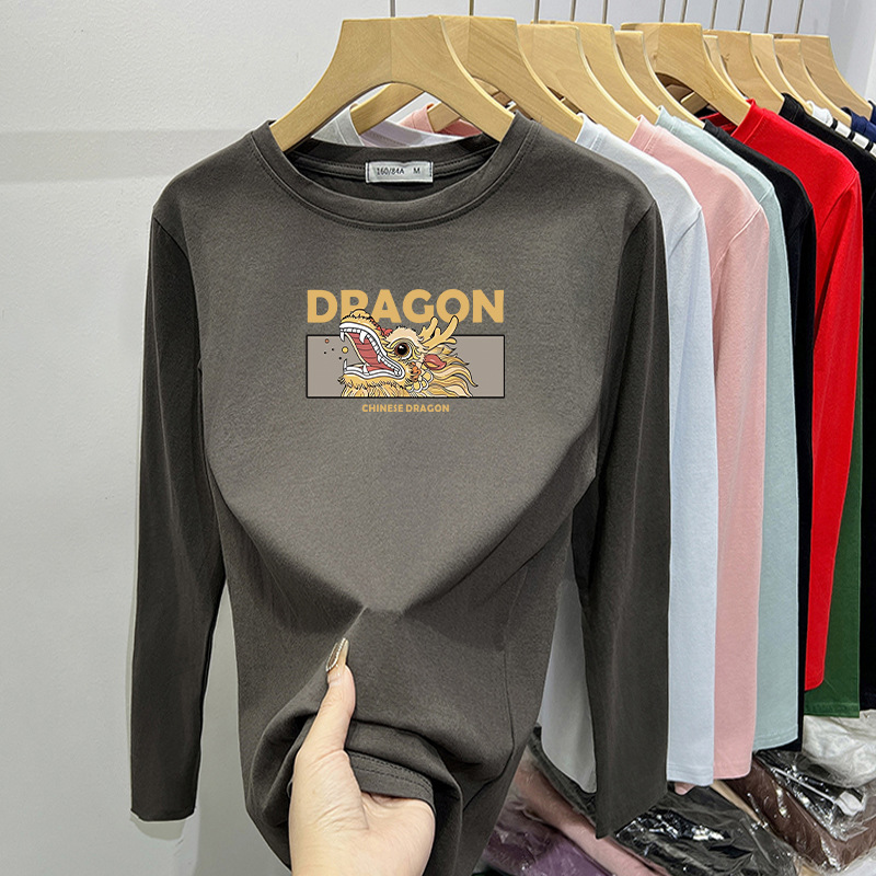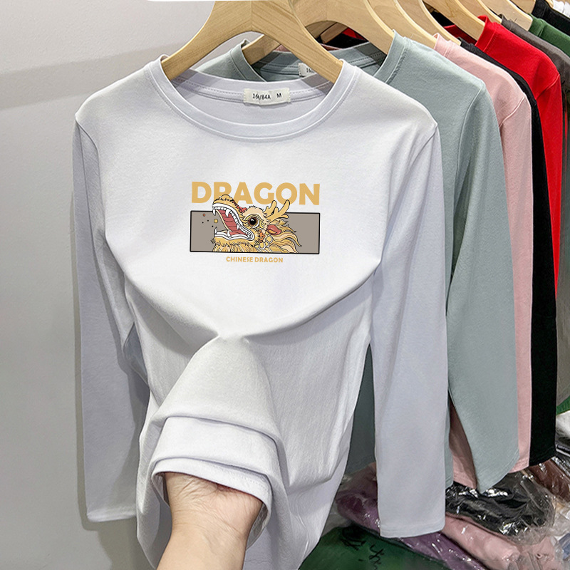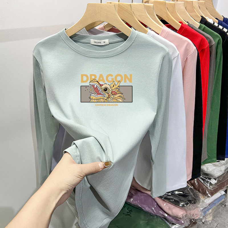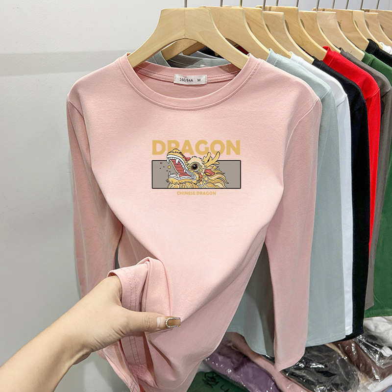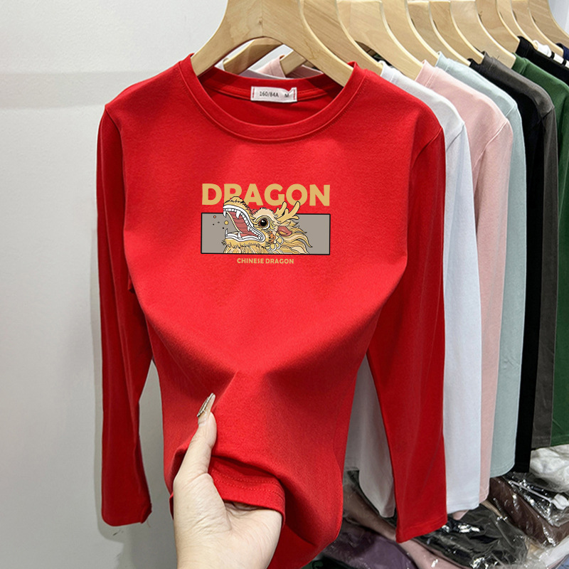 2024 새로운 긴팔 티셔츠 여성의 붉은 서양식 연령 감소 출생 년 최고 디자인 감각 봄과 가을 밑바닥 셔츠 패션