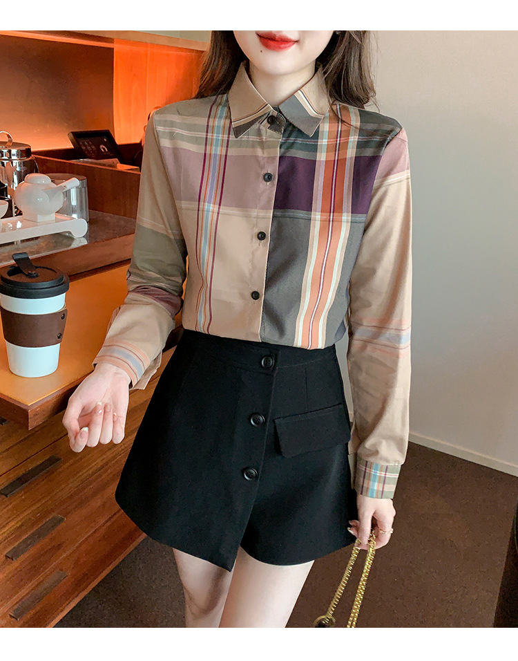 가을과 겨울 2023 새로운 여성면 격자 무늬 셔츠 여성용 긴팔 패션 나이를 줄이는 기모 두꺼운 최고 서양 스타일