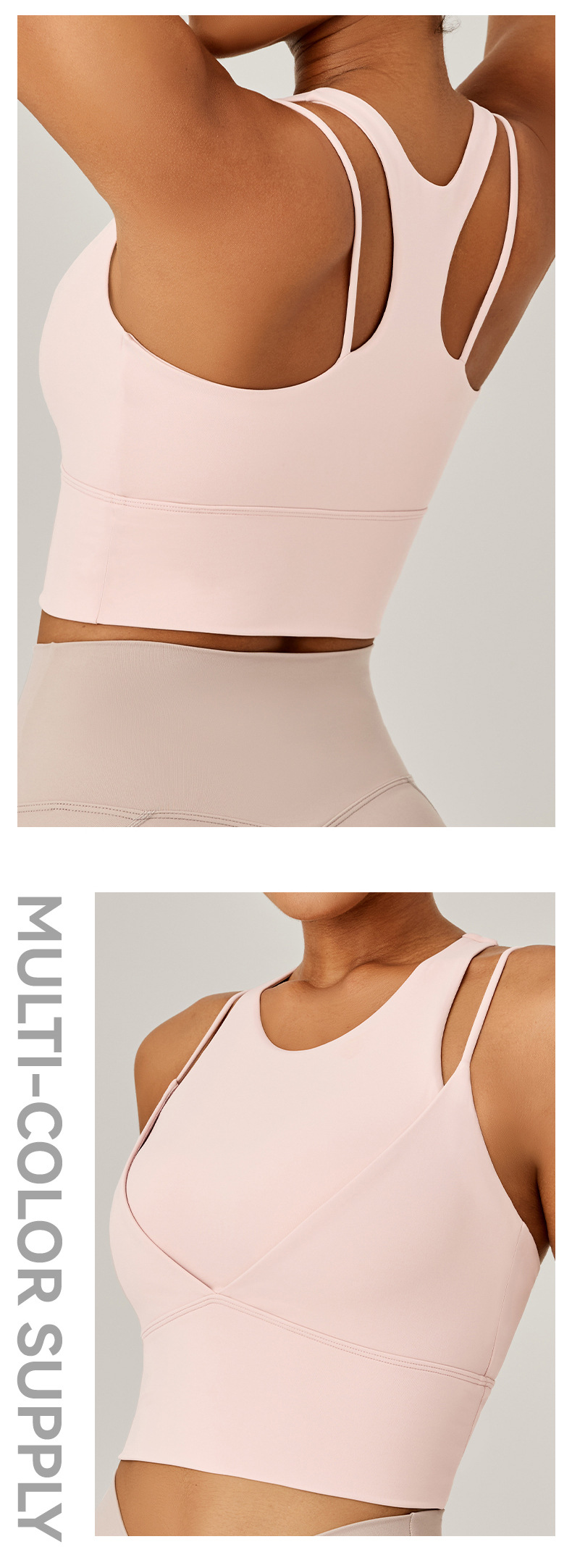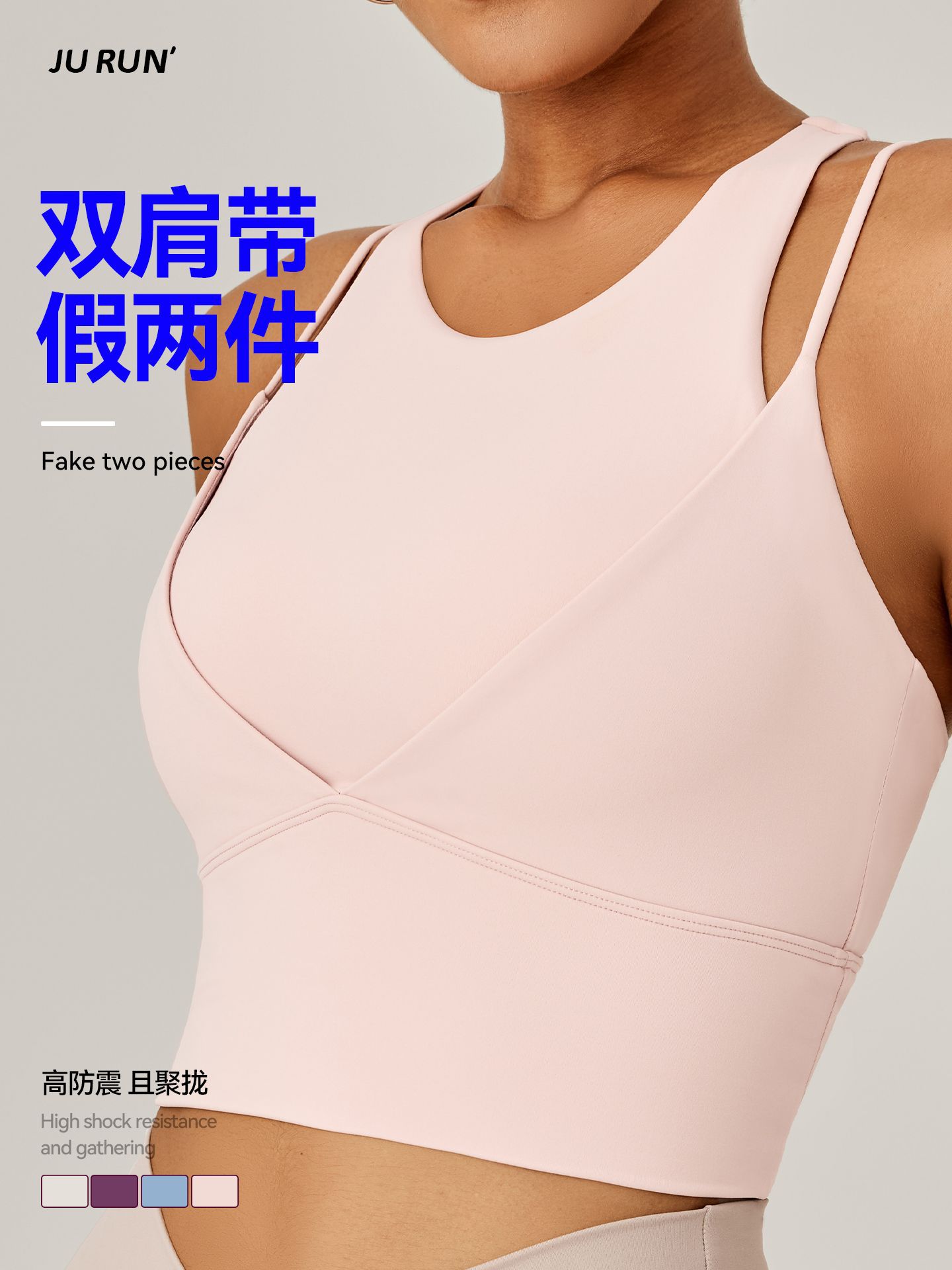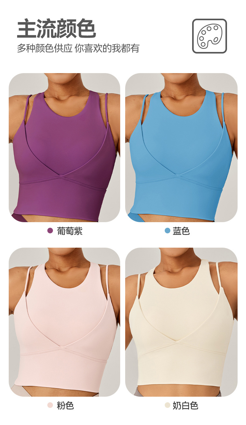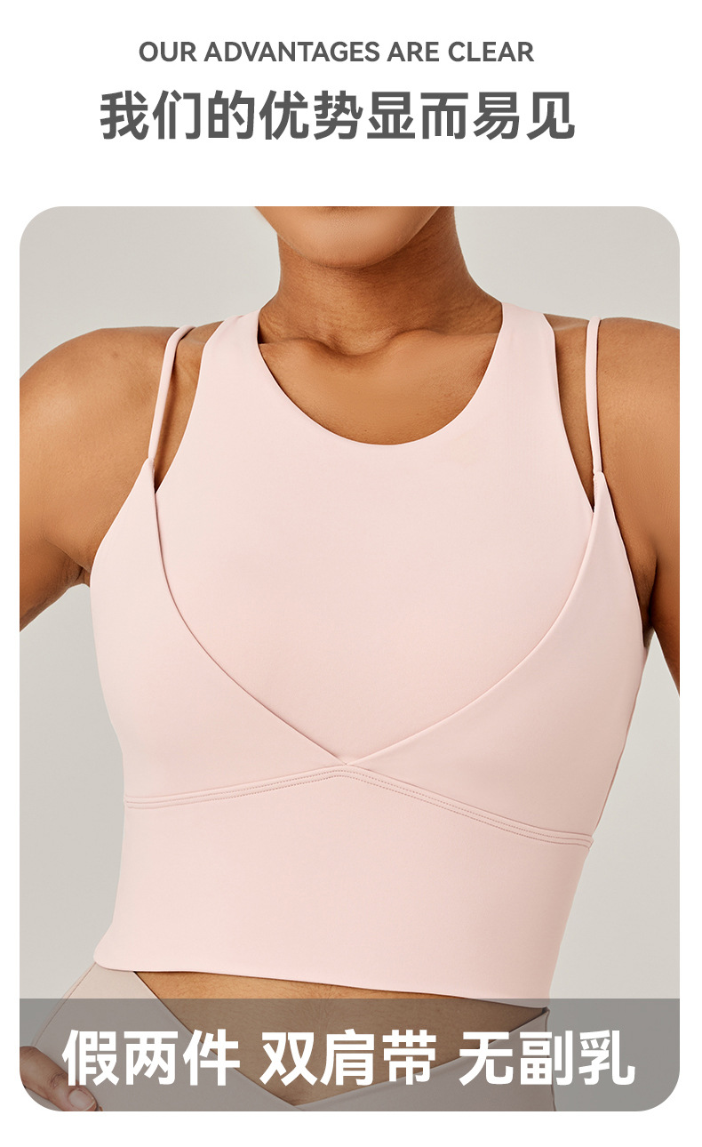 새로운 가짜 투피스 스포츠 속옷 여성용 어깨 끈 충격 방지 푸시 업 아름다운 등 피트니스 브래지어 달리기 스포츠 탑