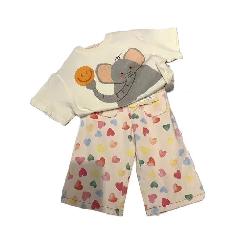 소녀 반팔 세트 2024 봄과 여름 어린이 유행 서양식 스포츠 레저 투피스 세트 아기 그물 빨간 옷스토어 가기