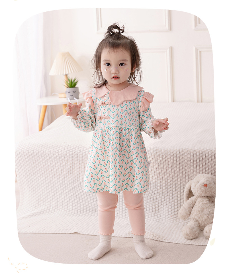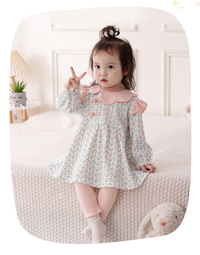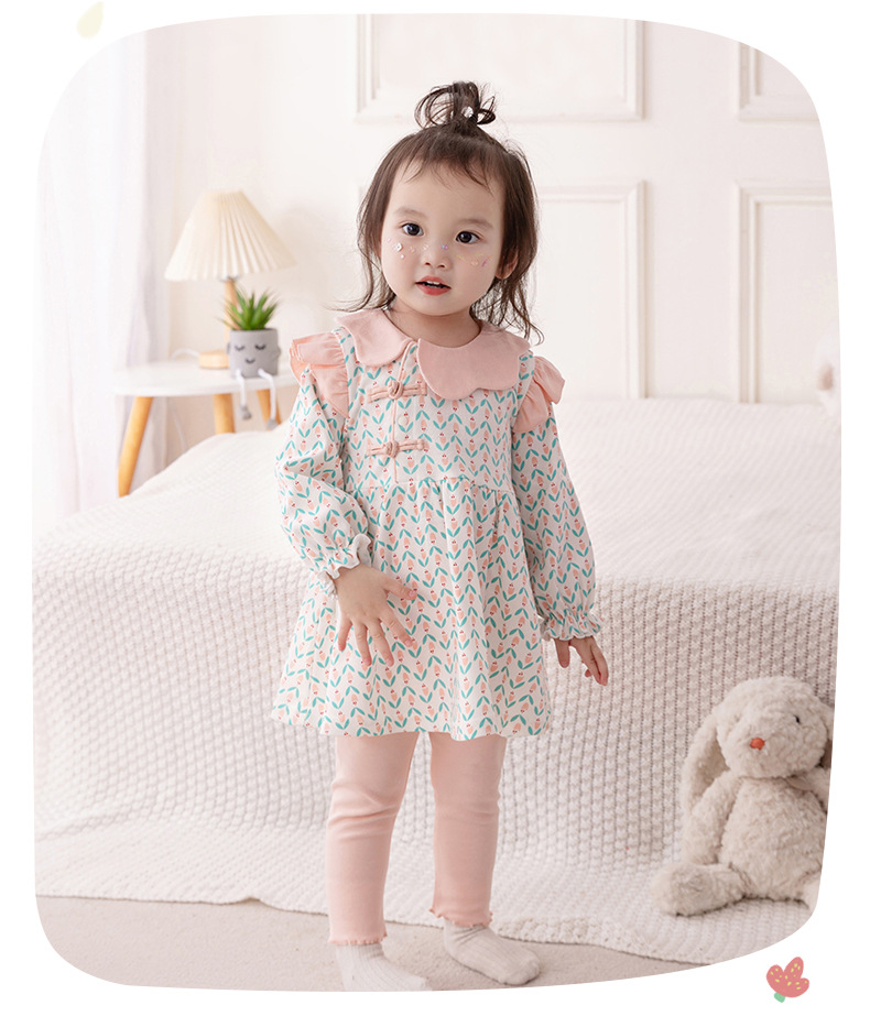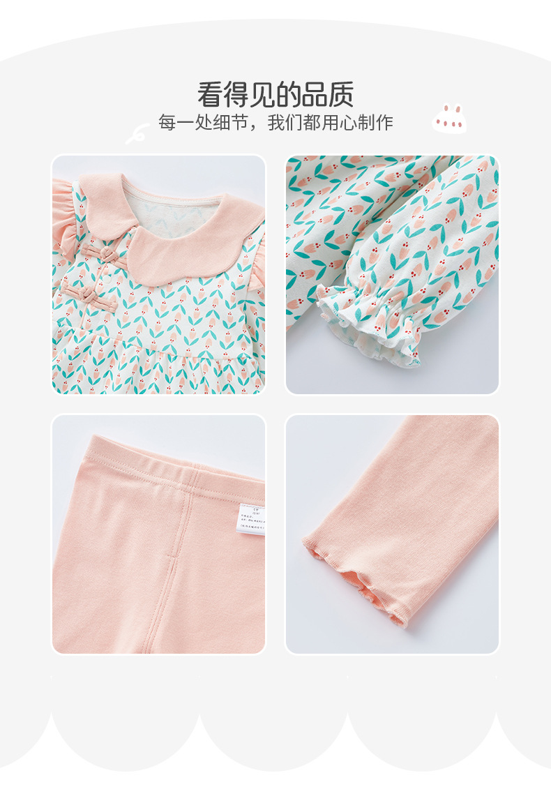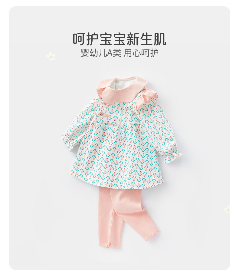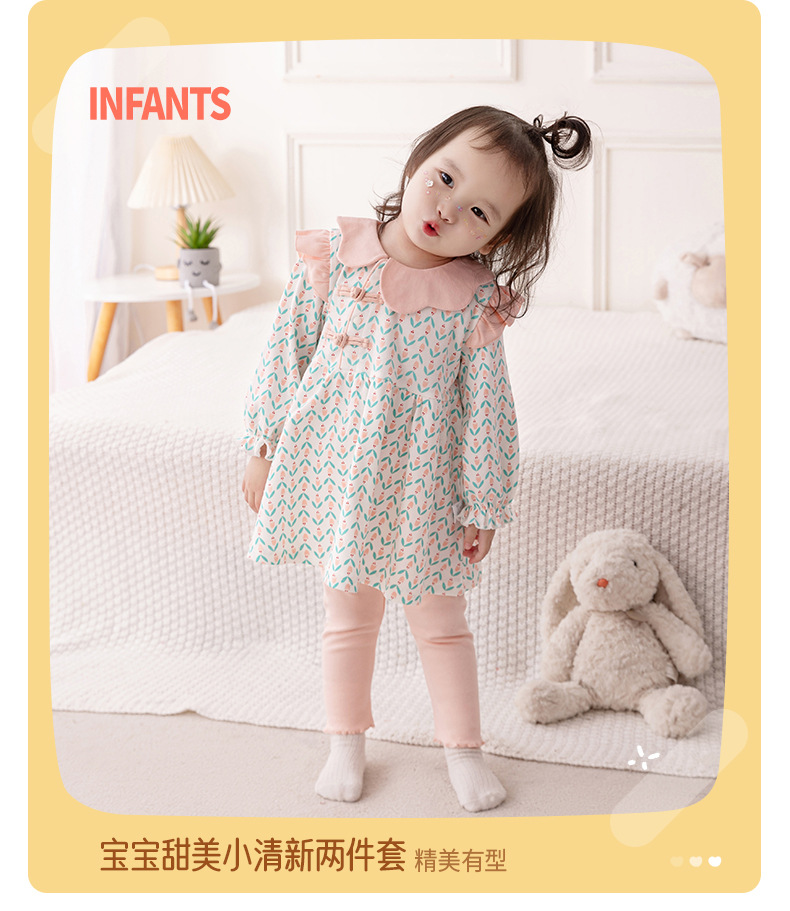 아기의 긴 소매 세트 2024 봄 소녀 아기 중국 스타일 투피스 세트 꽃 봄과 가을 아동복 바지 3533스토어 가기